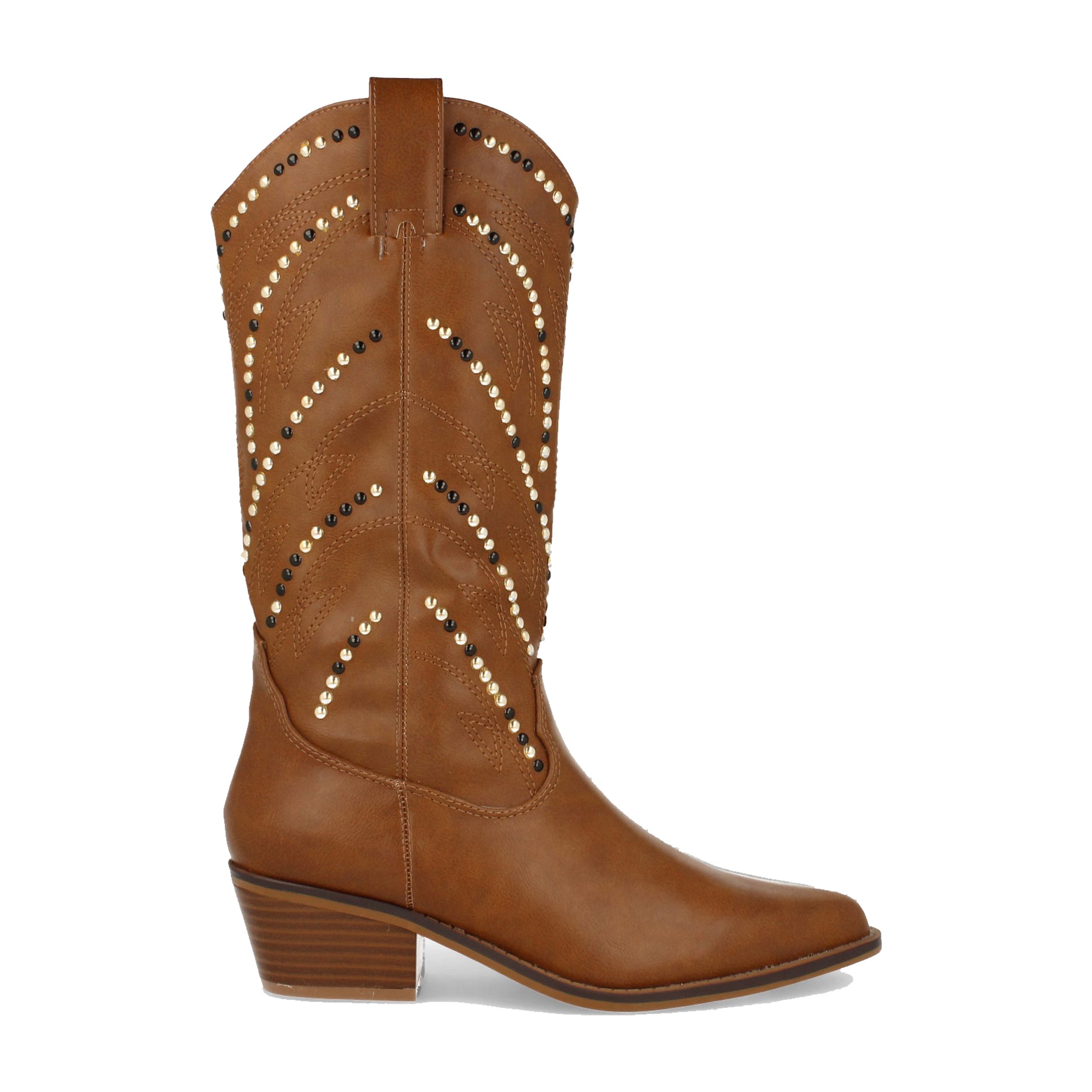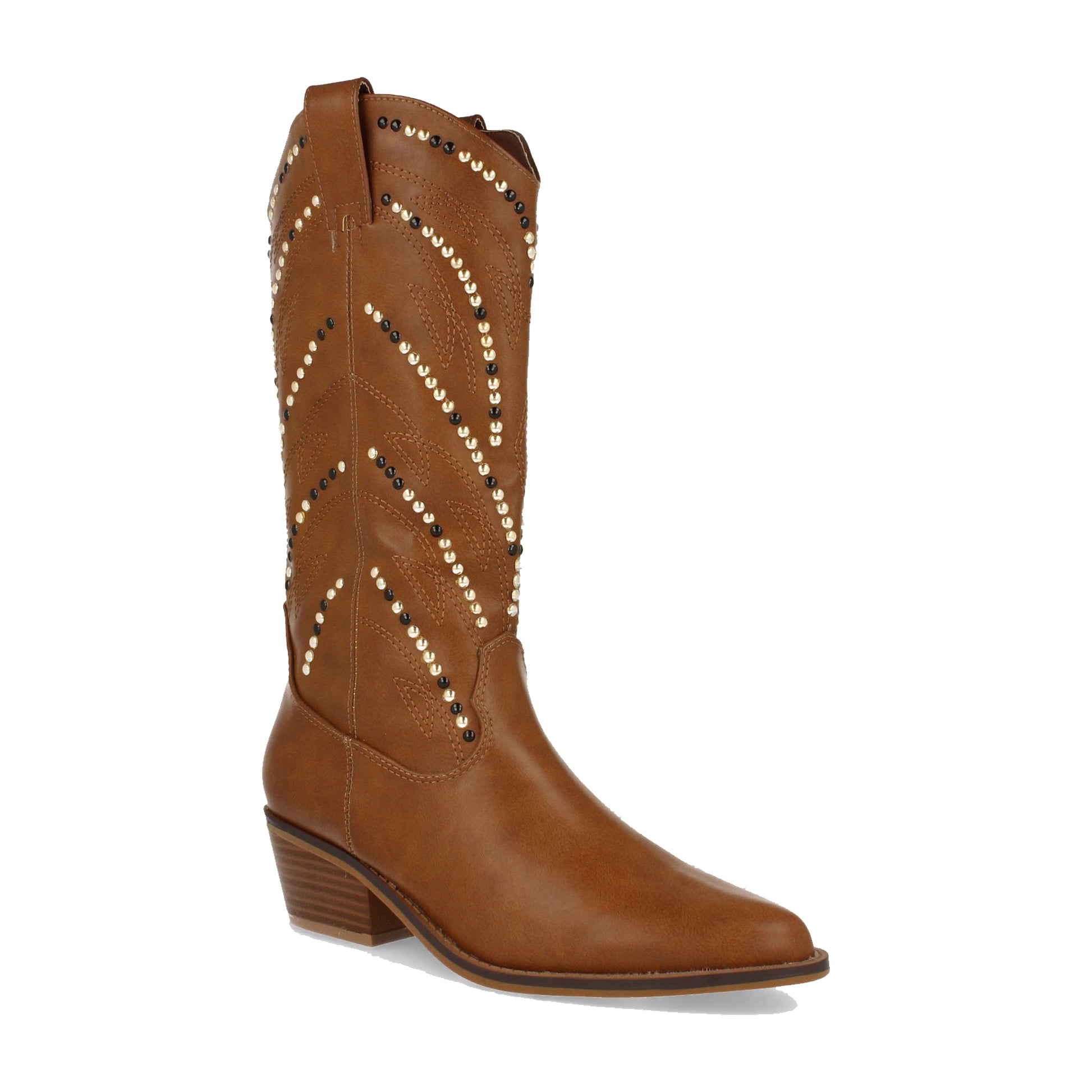 Bota de Mujer con Tacón Cubano Detalles de Tachuelas en la Caña y Cierre de Cremallera Otoño Invierno 2021