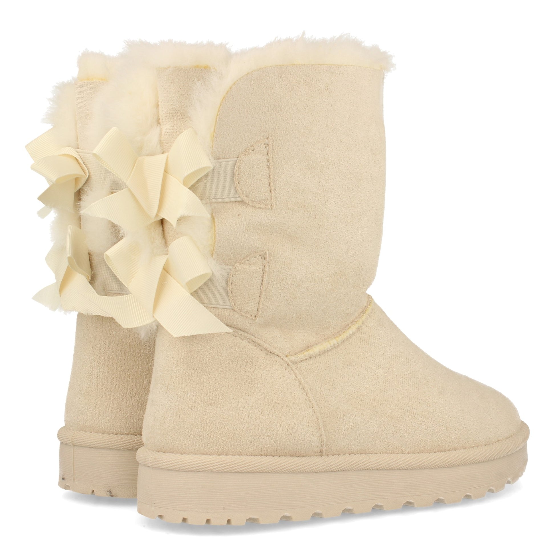 Botín Plano para Mujer Estilo Australiano Forrado de Pelo de Punta Redonda y con Lazos en el Contrafuerte como Detalle Otoño Invierno 2020