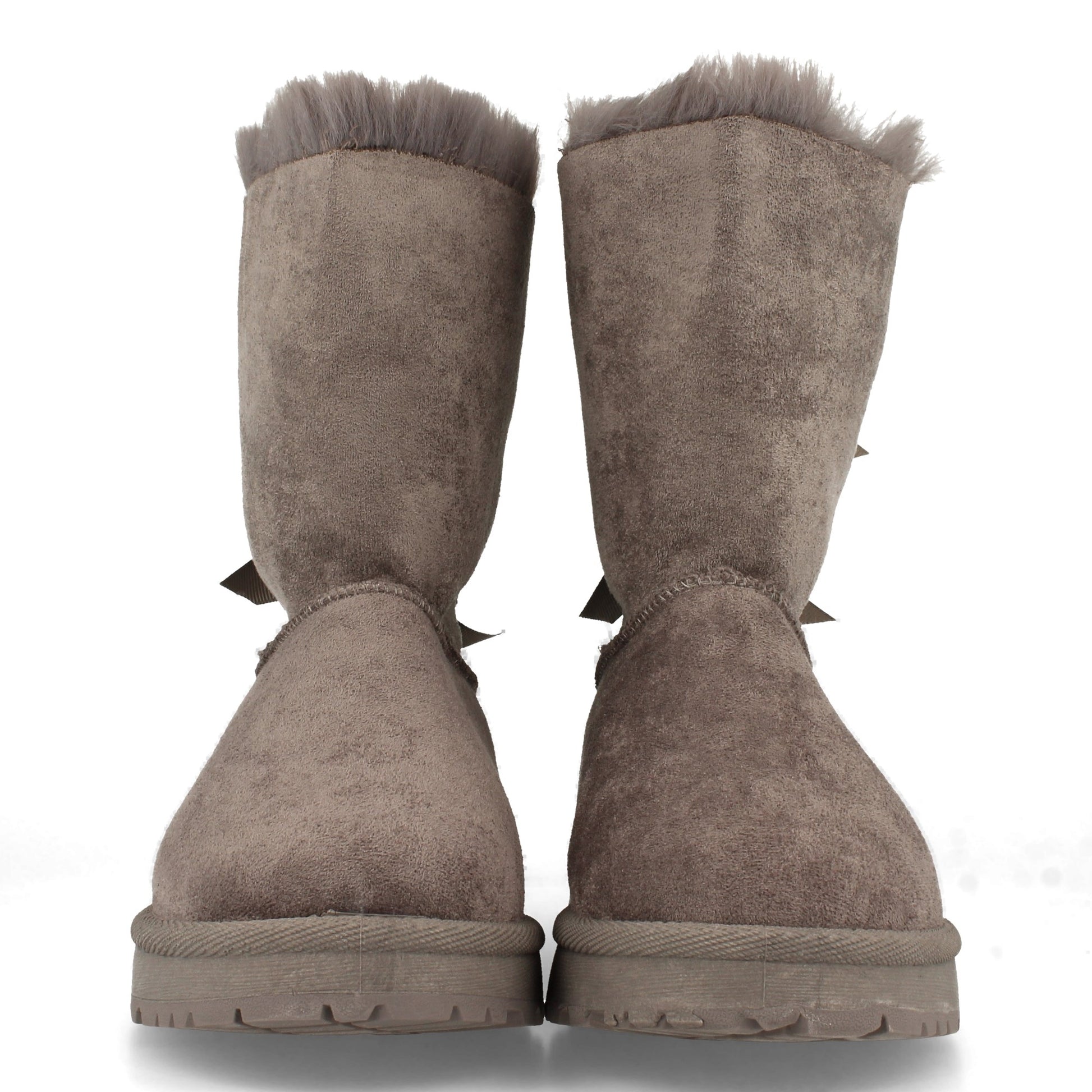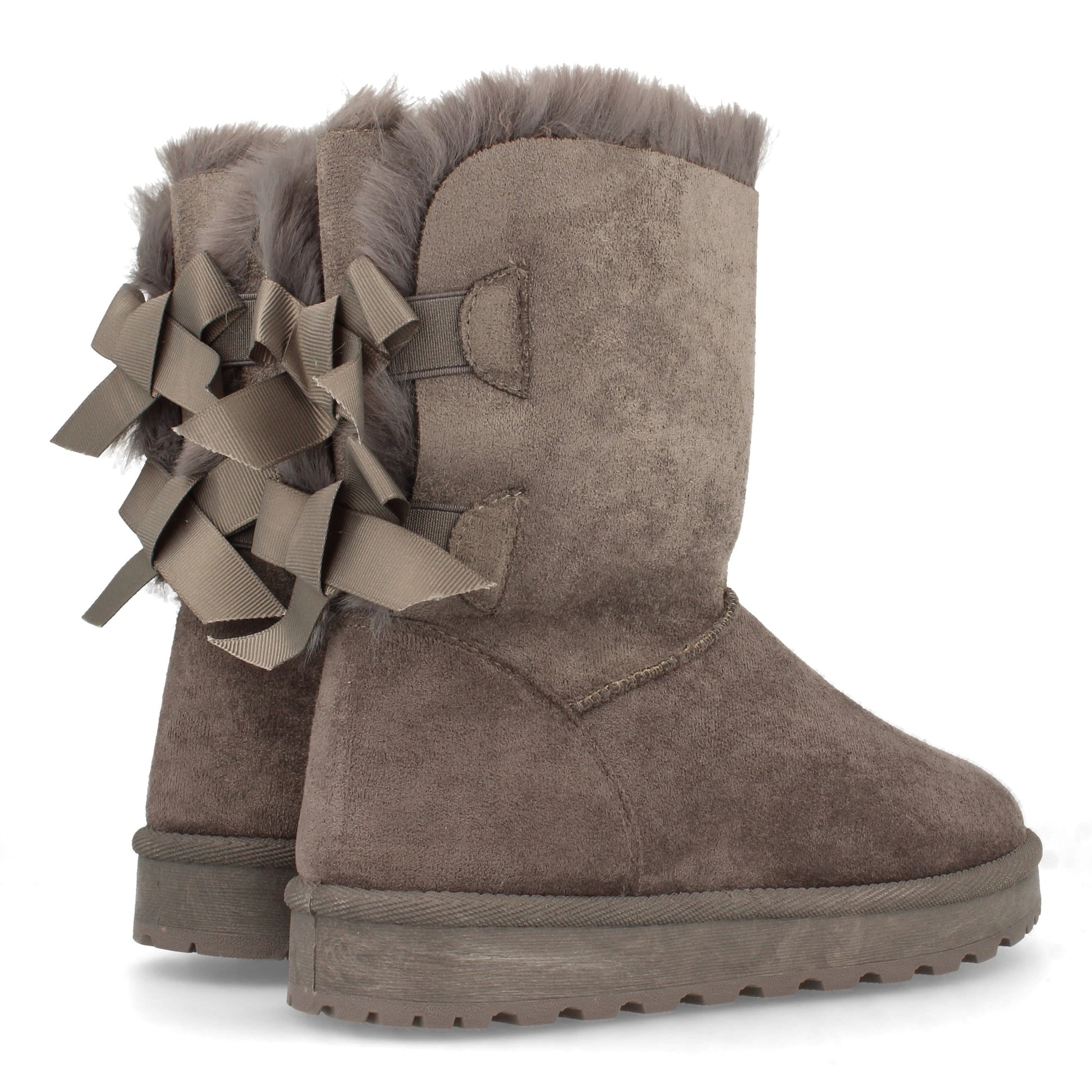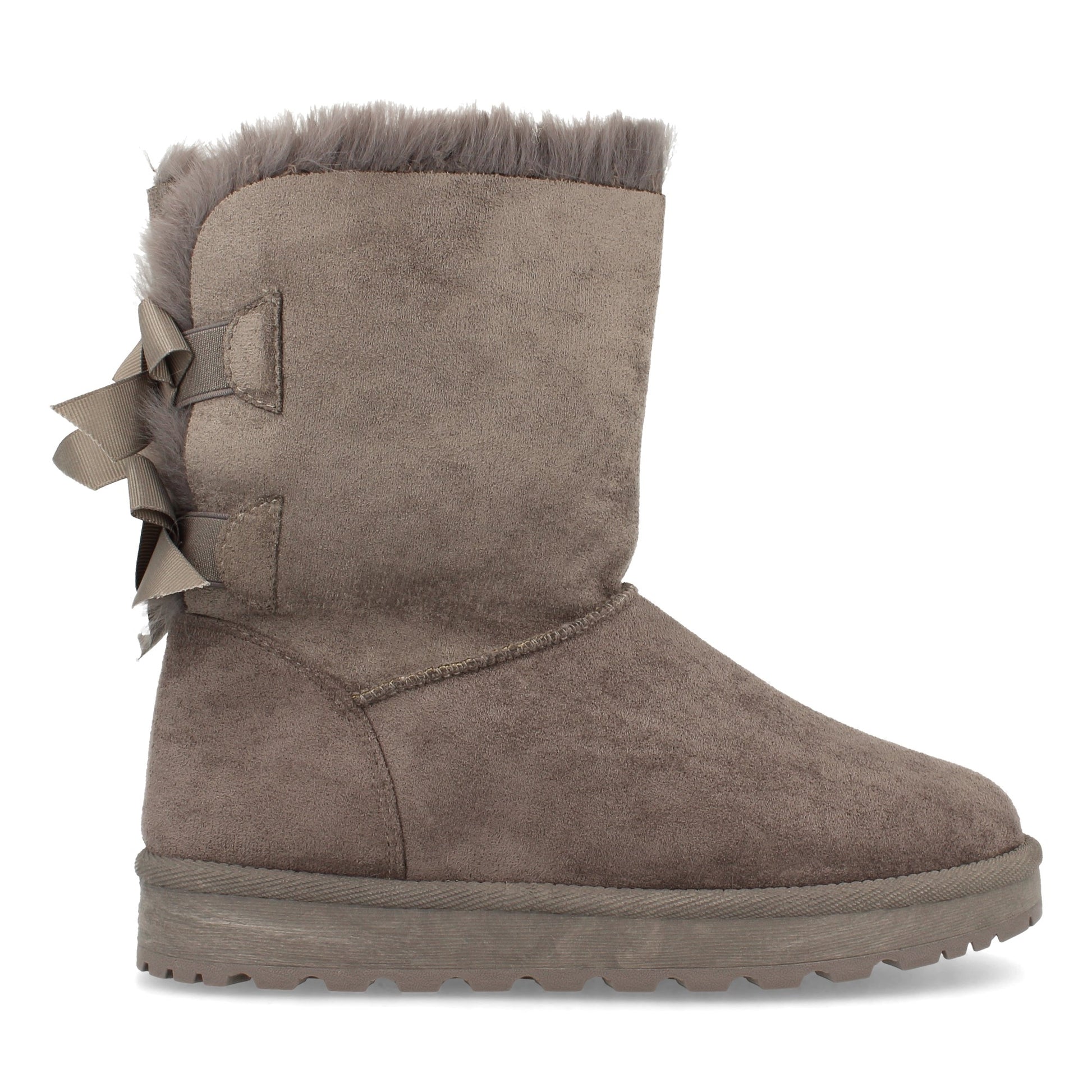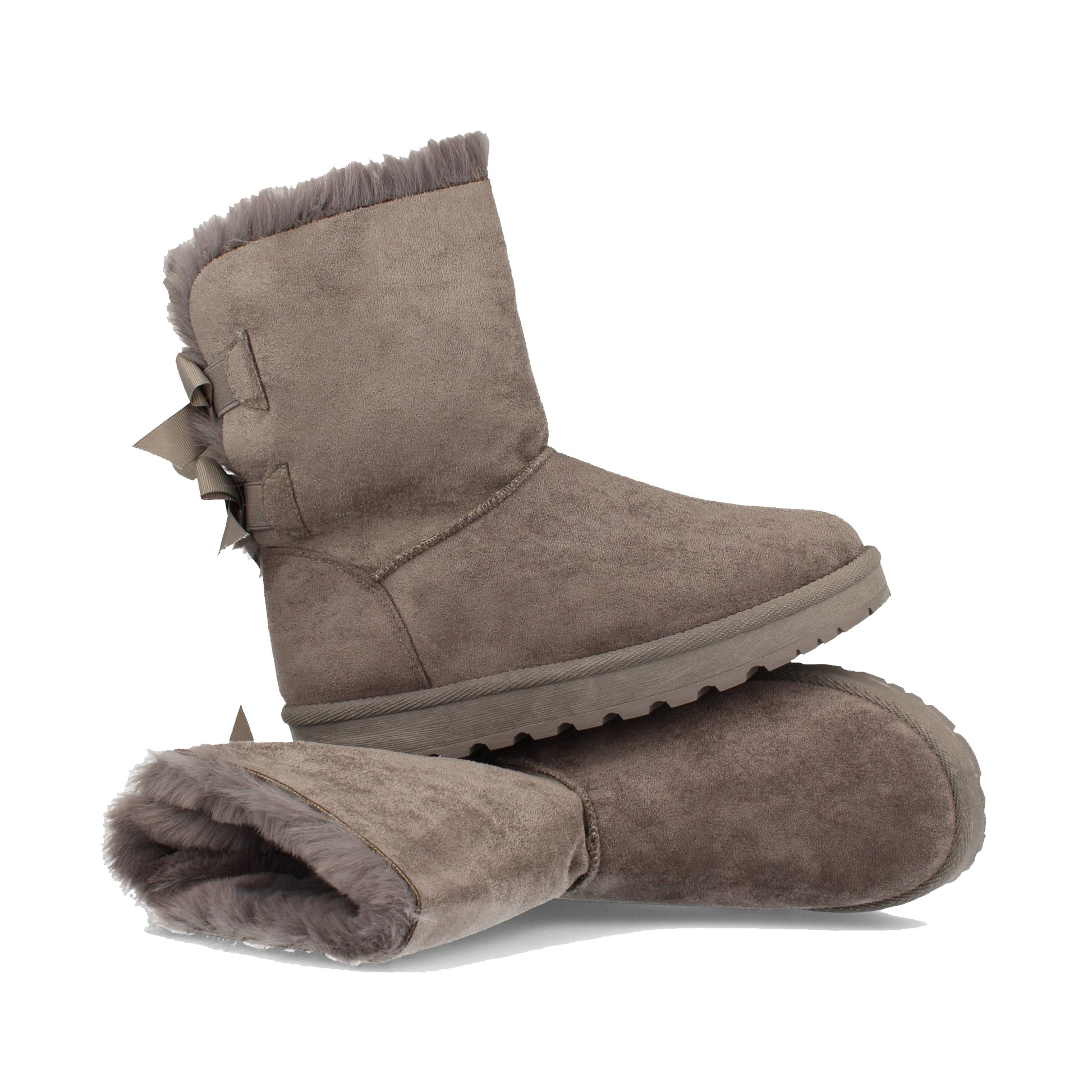 Botín Plano para Mujer Estilo Australiano Forrado de Pelo de Punta Redonda y con Lazos en el Contrafuerte como Detalle Otoño Invierno 2020