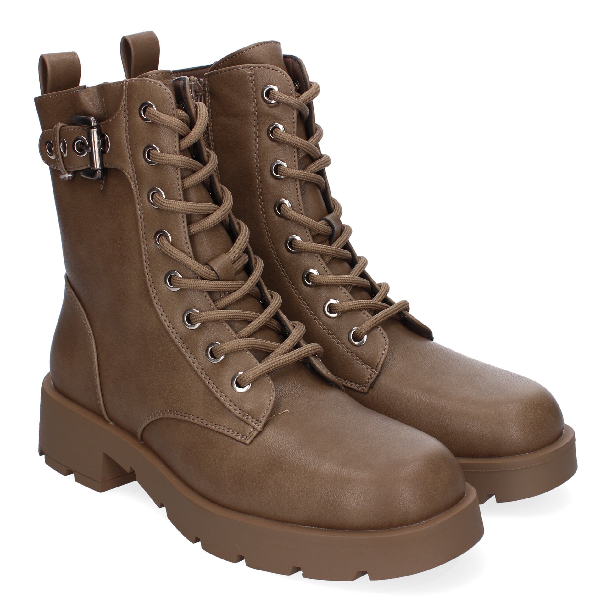 Botines de Tacón para Mujer Comodos y Elegantes Detalle de Hebilla con Suela Dentada Punta Redonda Cierre de Cordones y Cremallera Lateral Ideales para Otoño-Invierno.