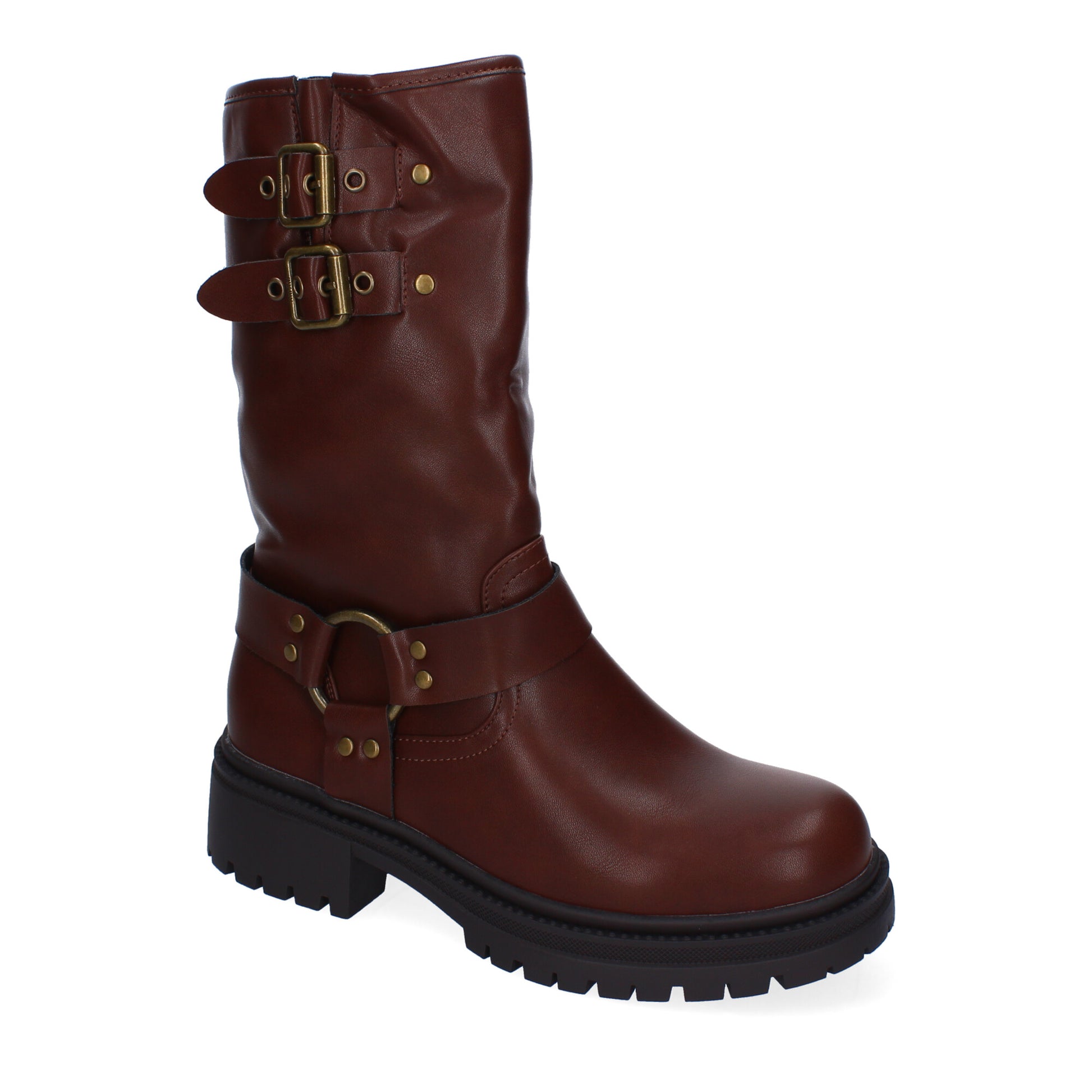 Botas de Tacón para Mujer Estilo Motero Comodos y Elegantes Detalles de Hebillas Metálicas Ideales para Otoño-Invierno.