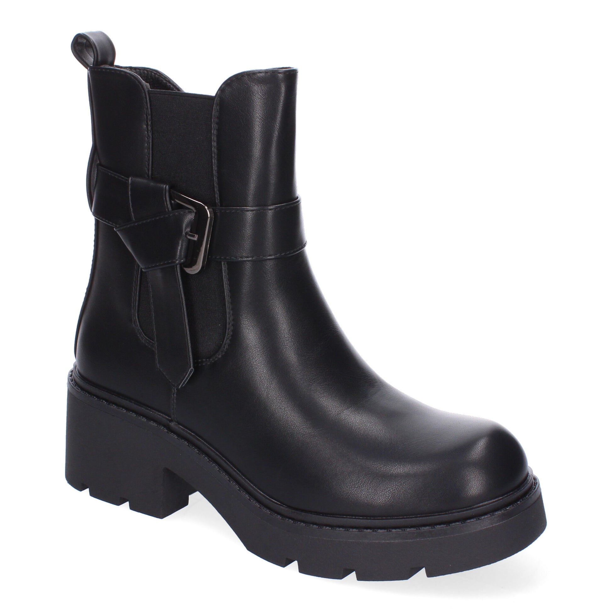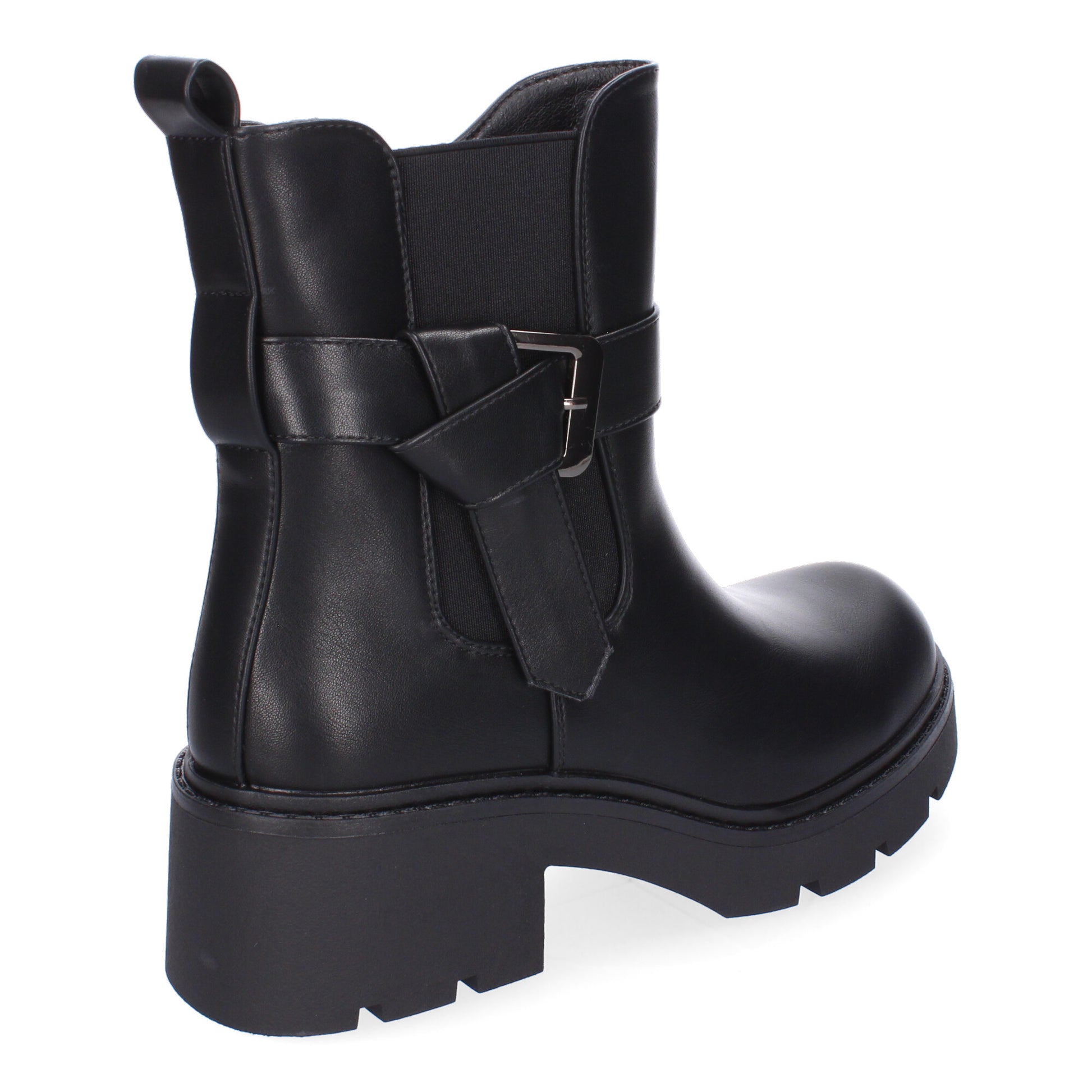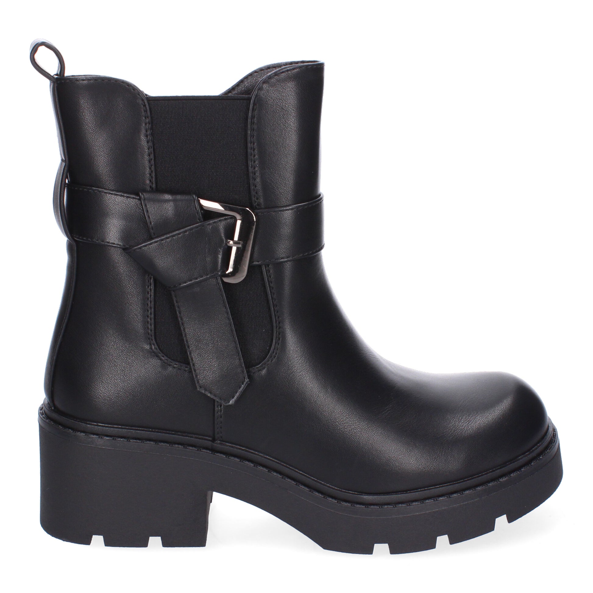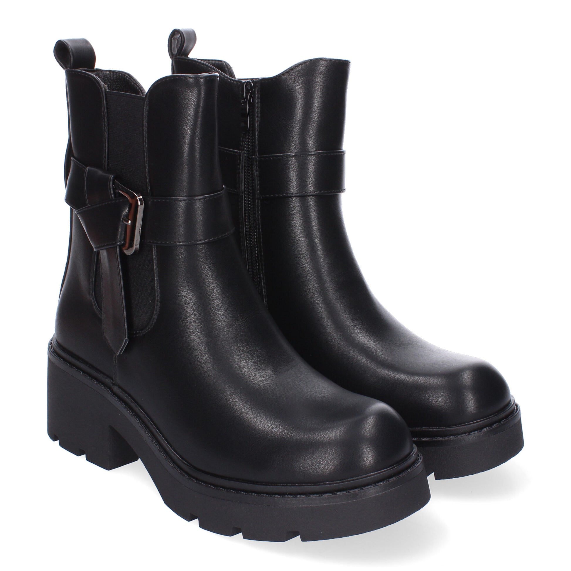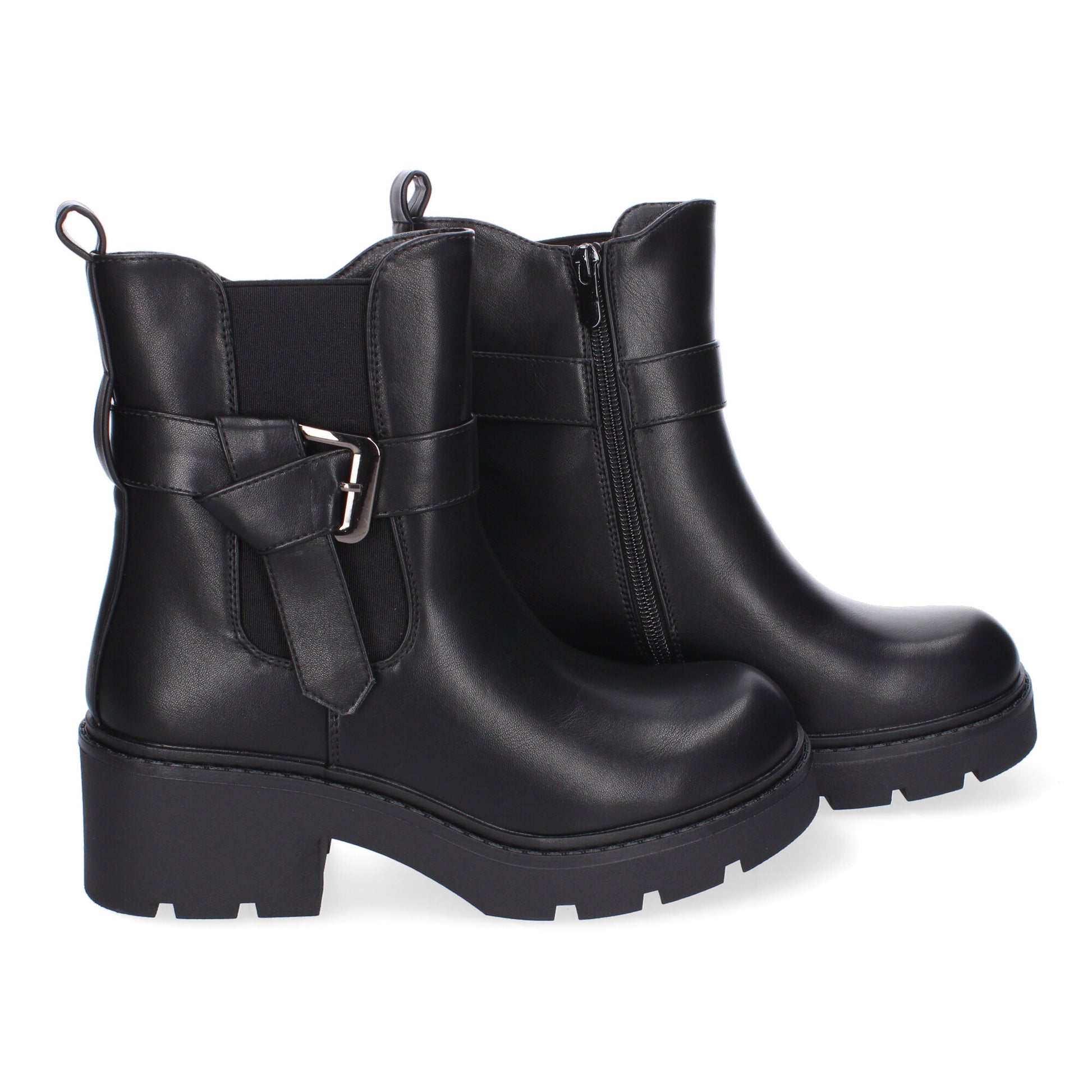 Botines de Tacón para Mujer Comodos y Elegantes Material Elástico Detalle de Hebilla con Suela Dentada Punta Redonda Cremallera Lateral Ideales para Otoño-Invierno.