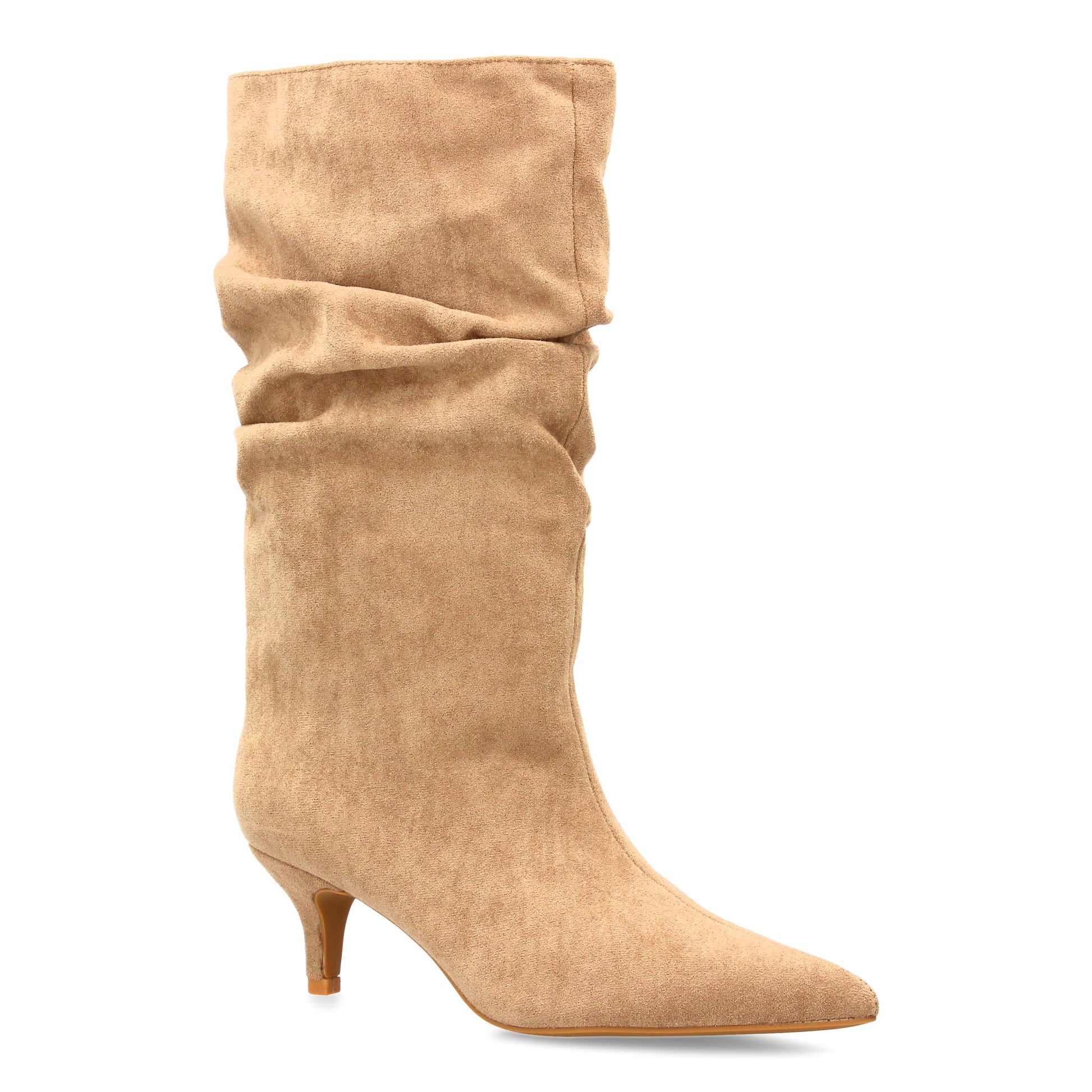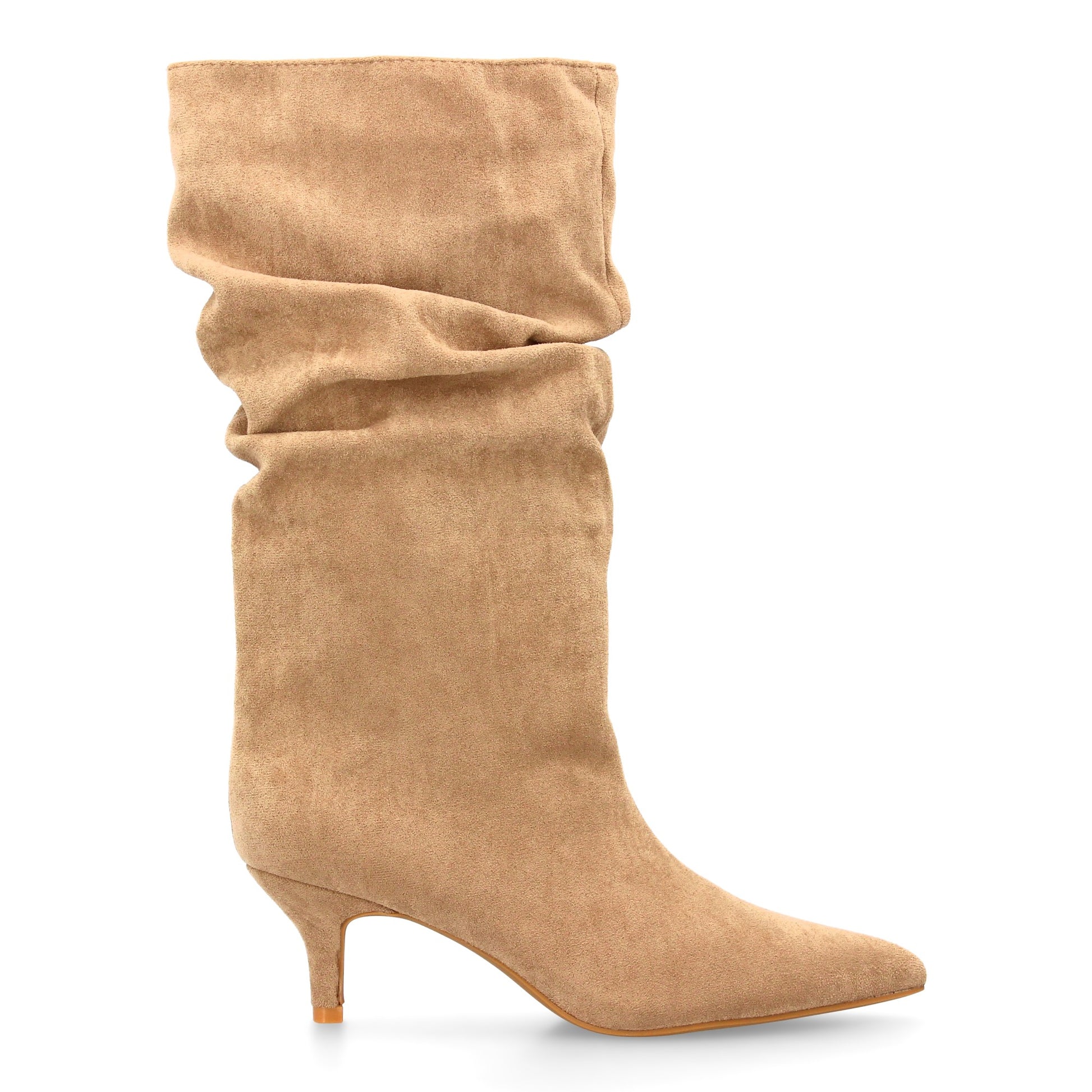 Bota de caña alta efecto arrugado tacón fino. Cierre de cremallera estampado liso ideal para mujer temporada otoño invierno.
