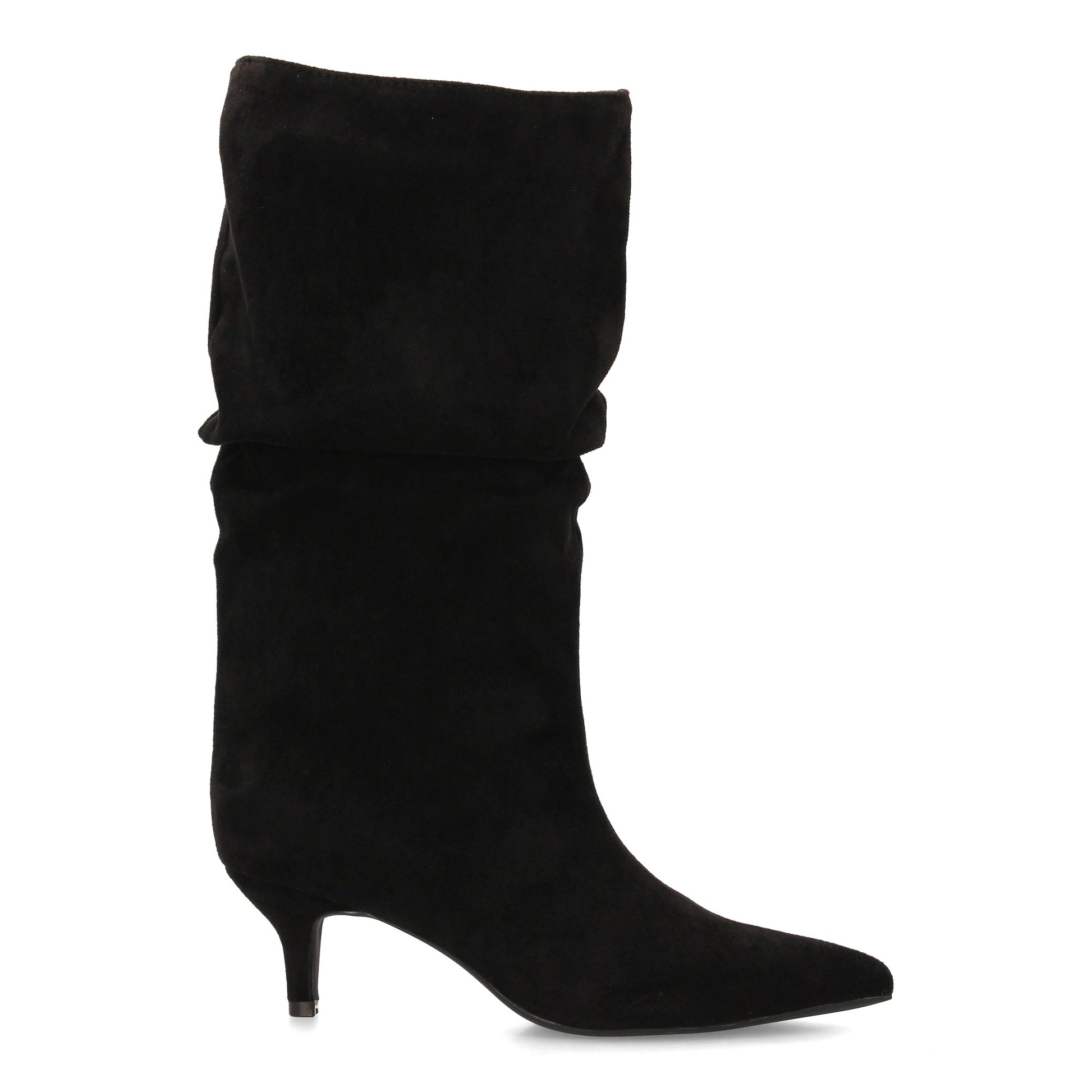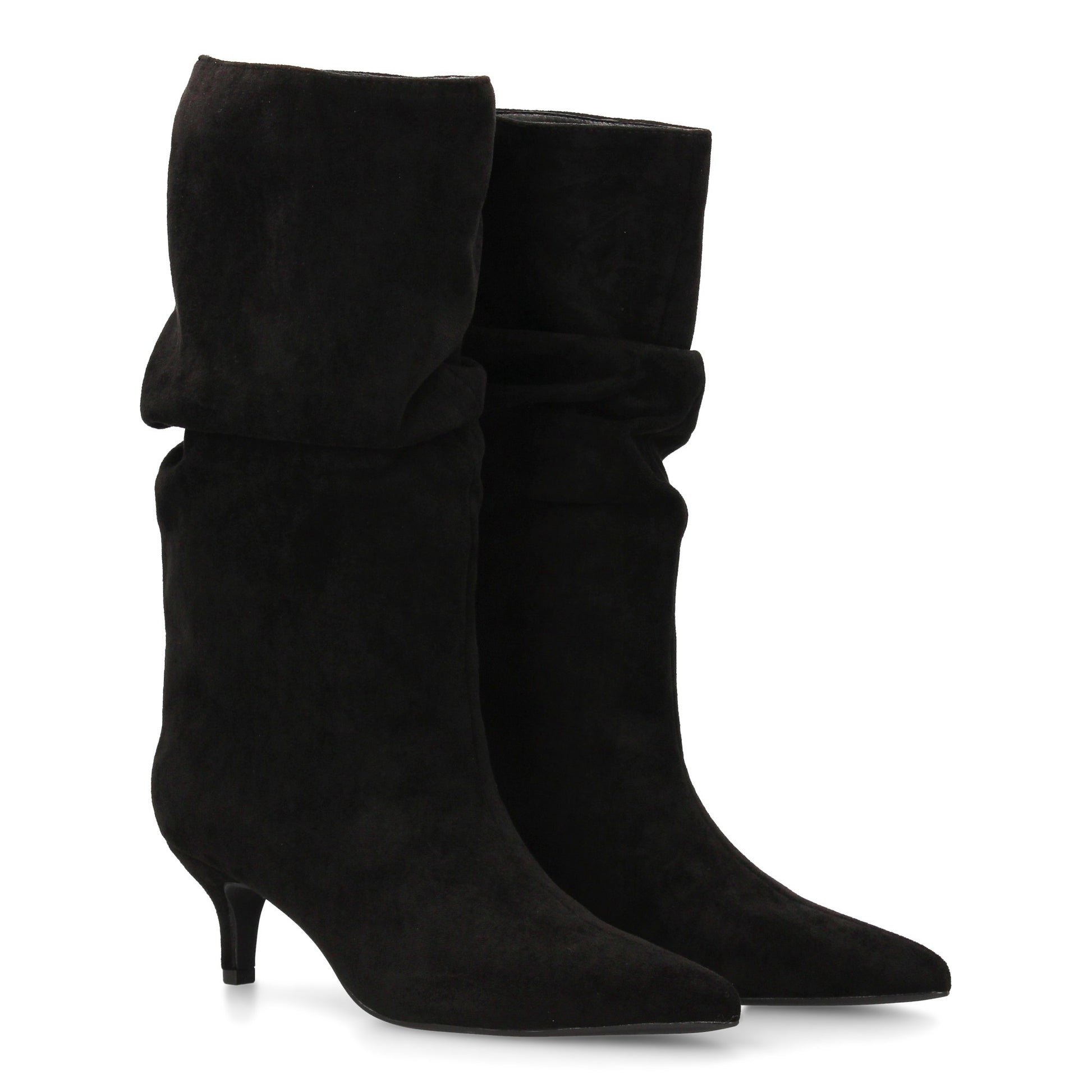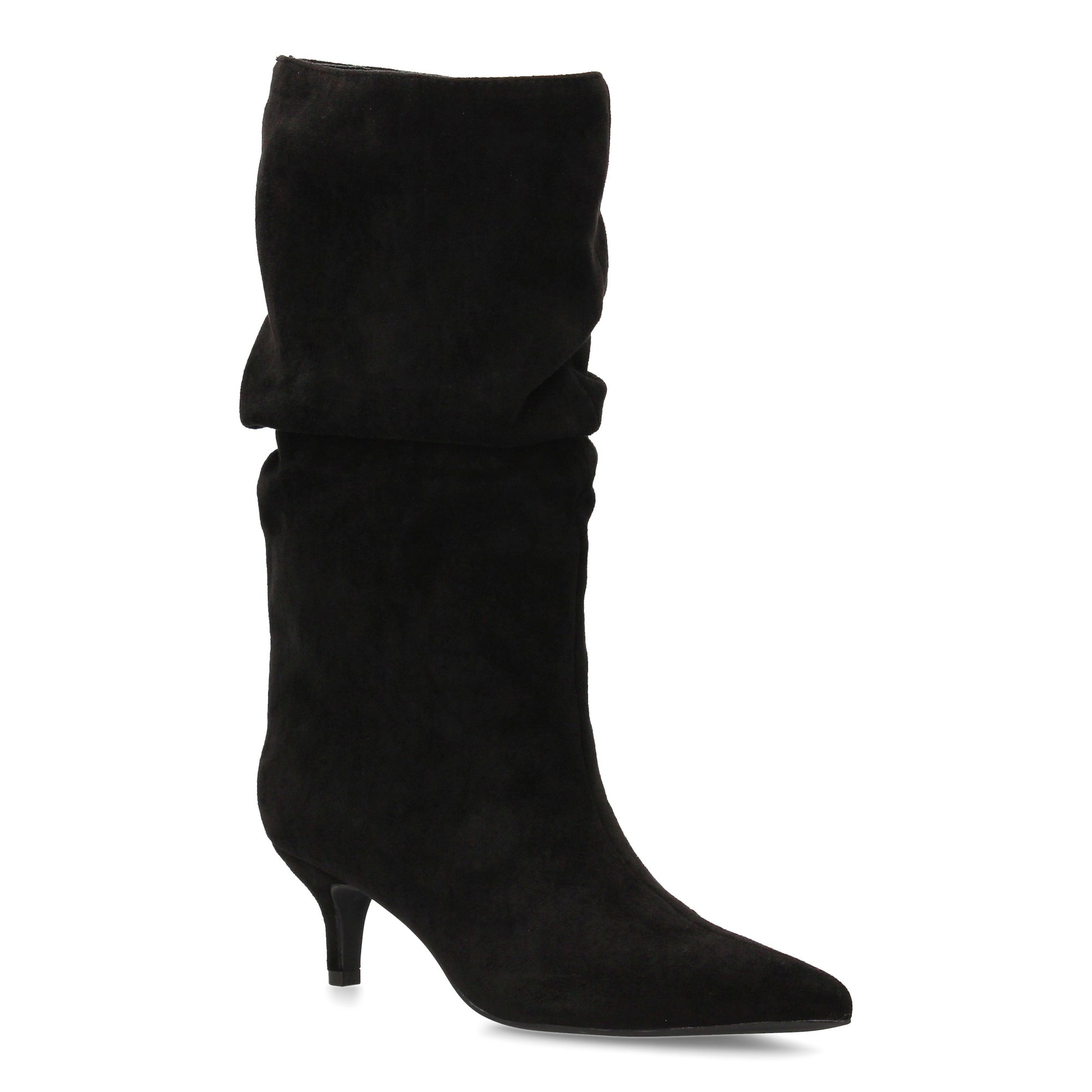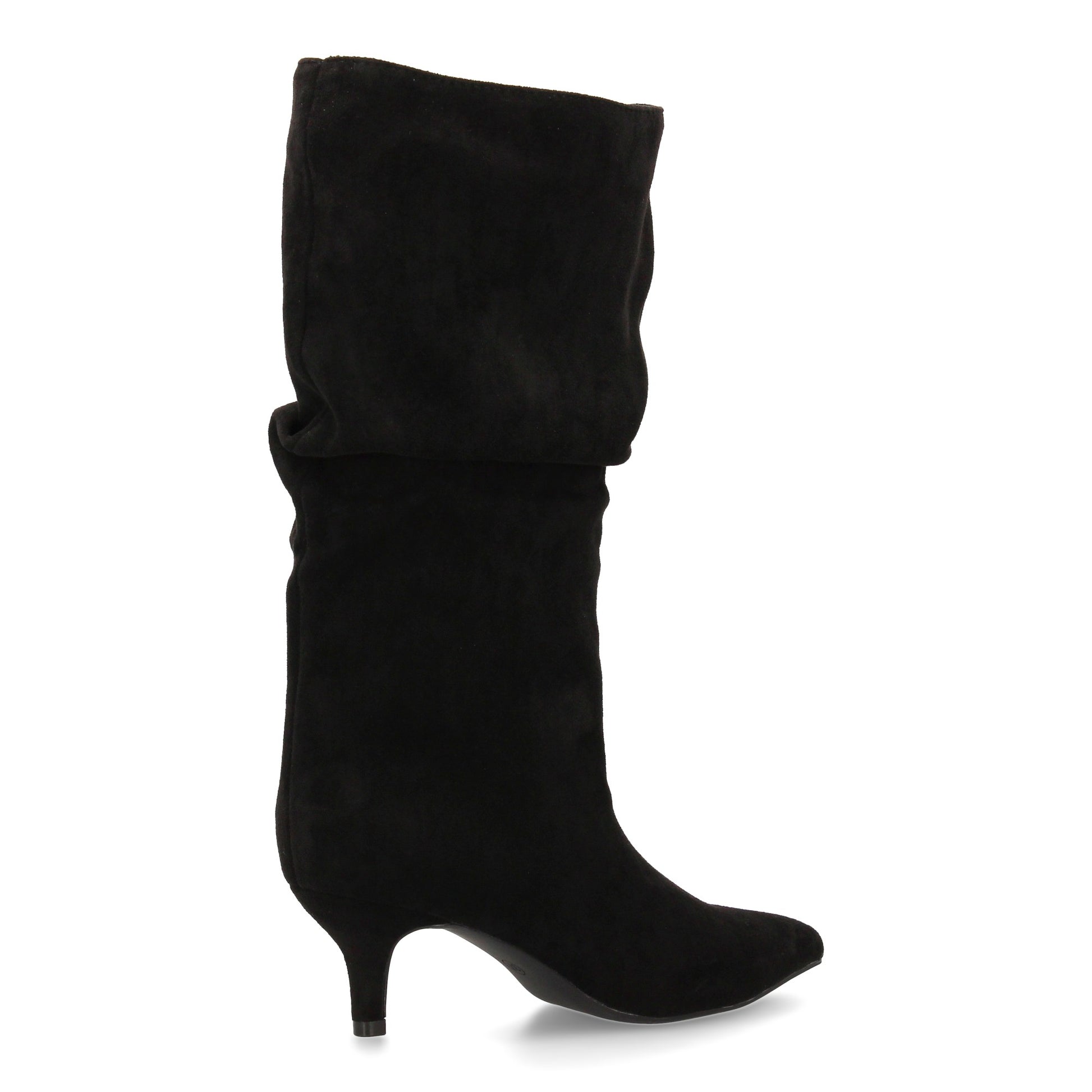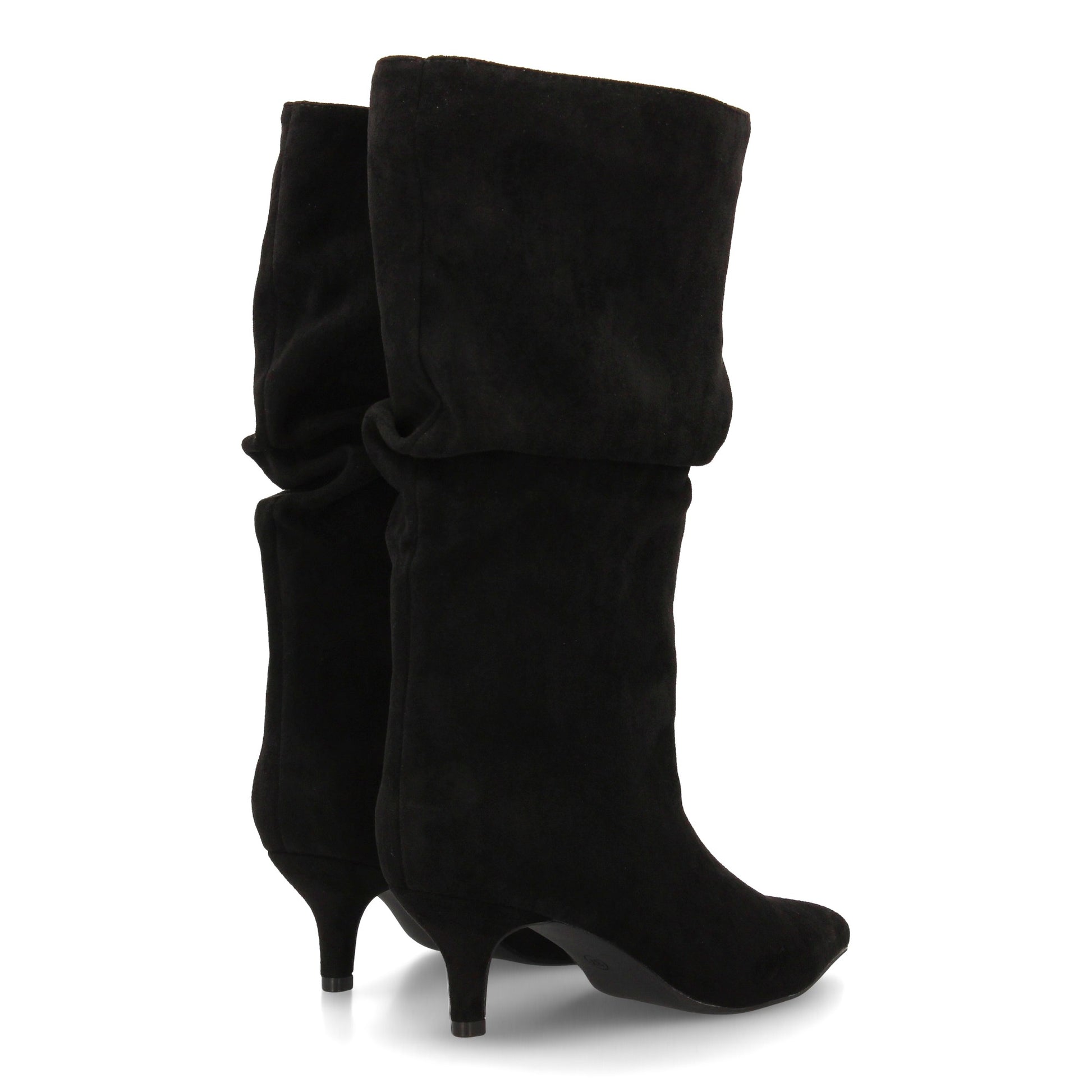 Bota de caña alta efecto arrugado tacón fino. Cierre de cremallera estampado liso ideal para mujer temporada otoño invierno.