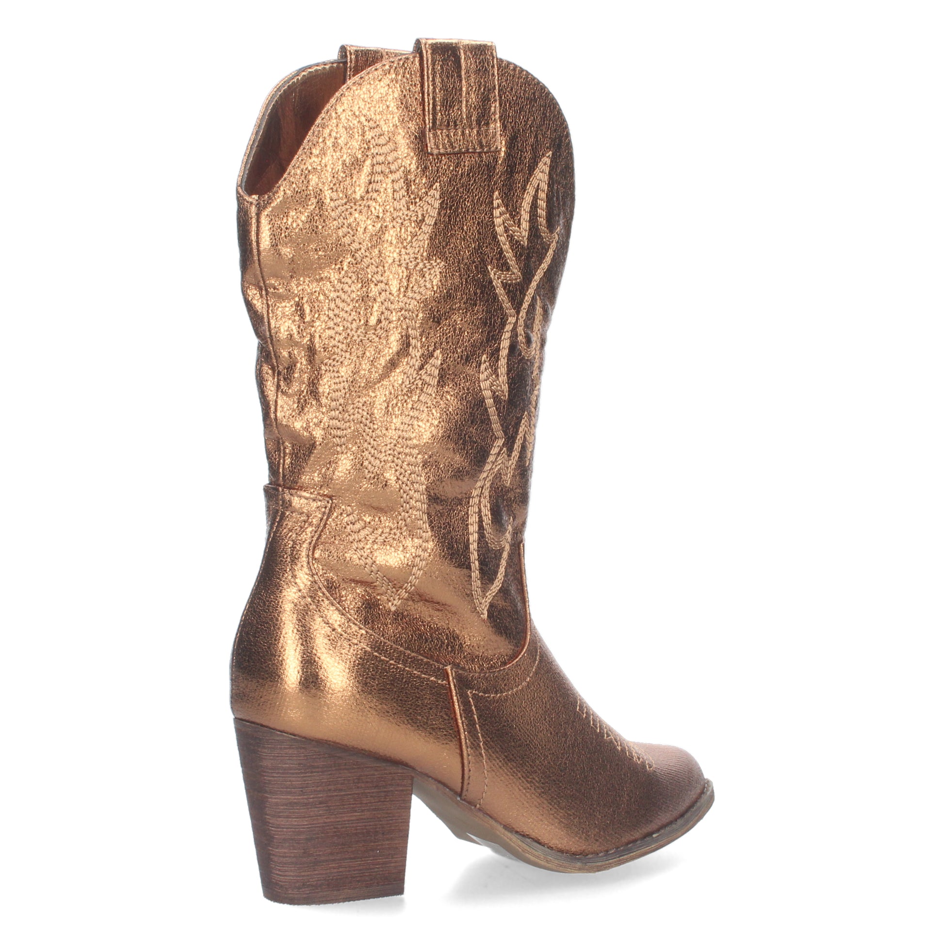 Botín Campero con Tacón Cómodo con Bordado en Caña y Empeine y Cierre de Cremallera.