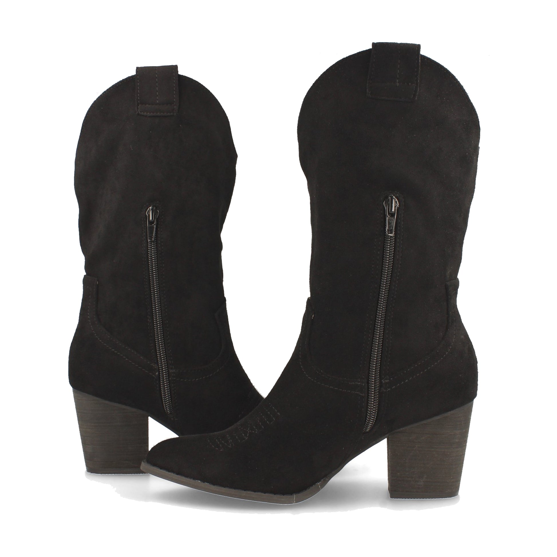 Botín Campero con Tacón Cómodo con Bordado en Caña y Empeine y Cierre de Cremallera.