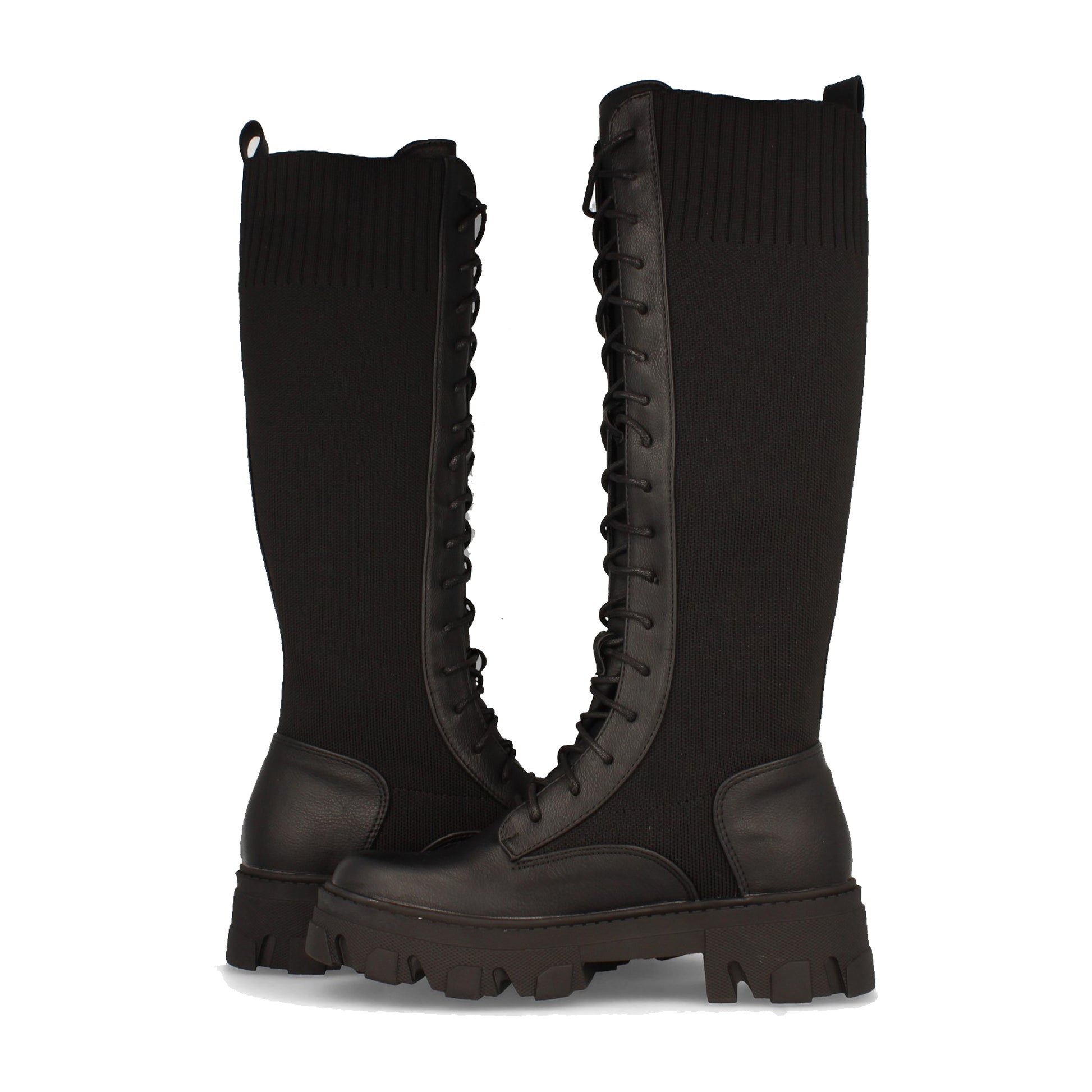 Bota de Plataforma para Mujer con Elástico en el Gemelo y Cierre de Cordones Otoño Invierno 2021