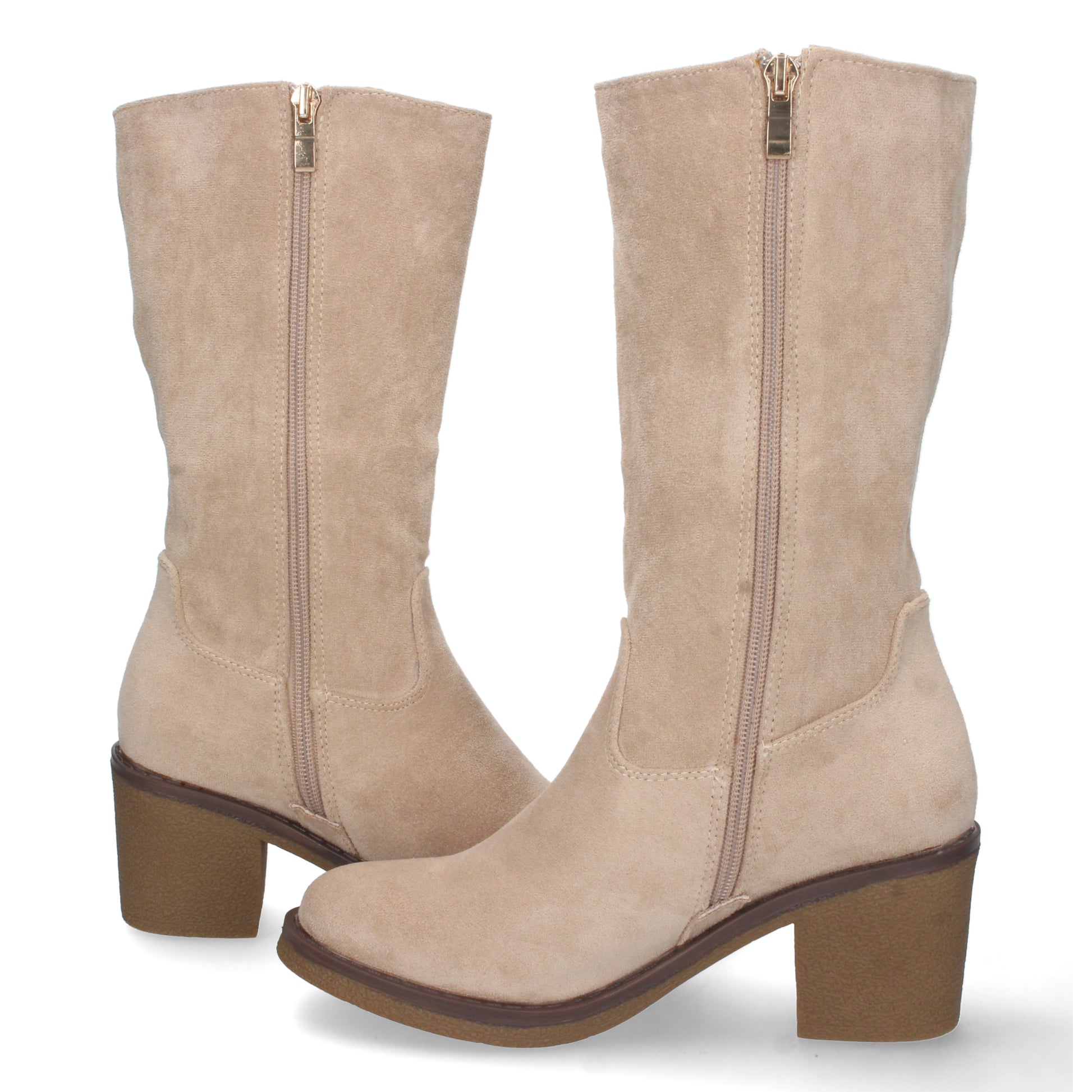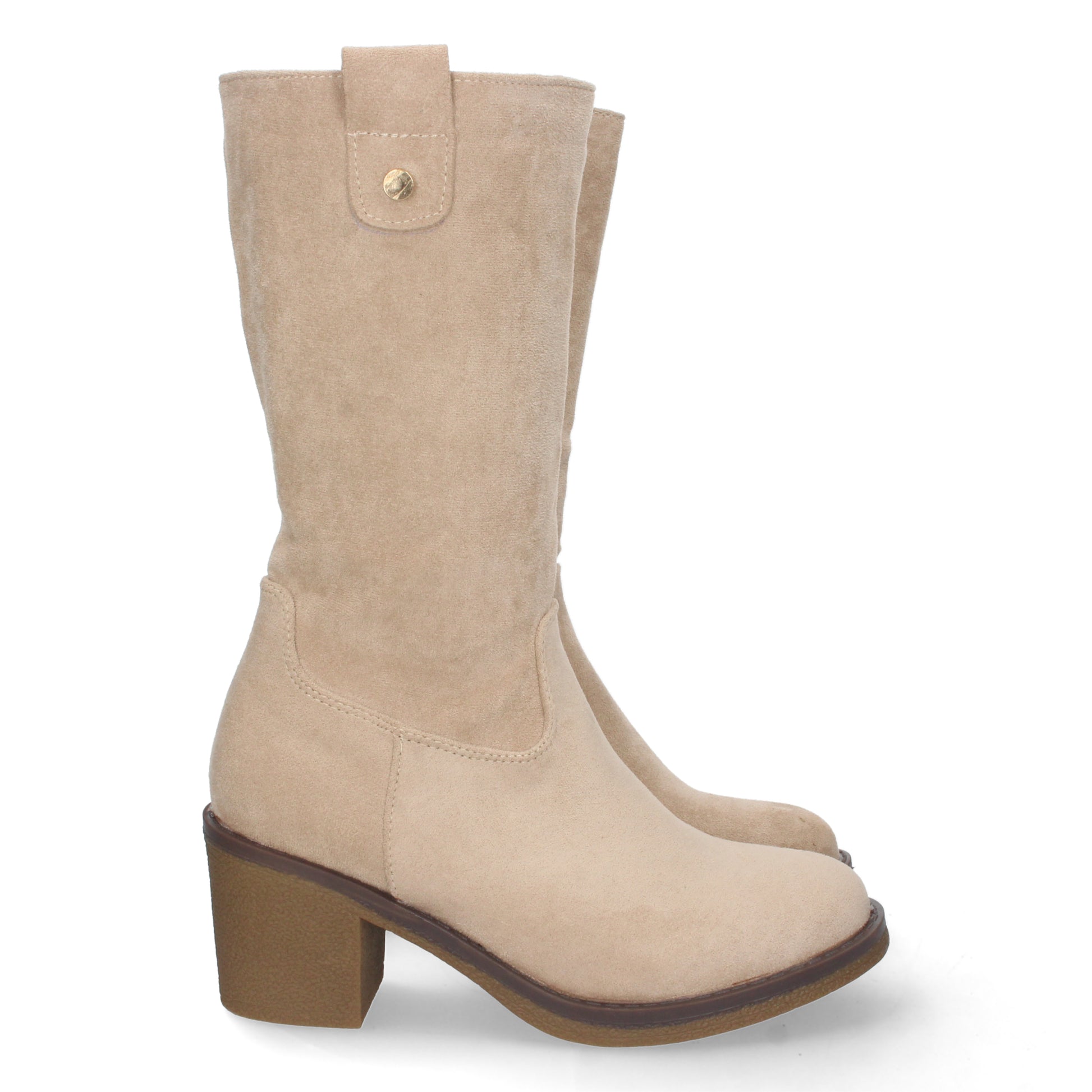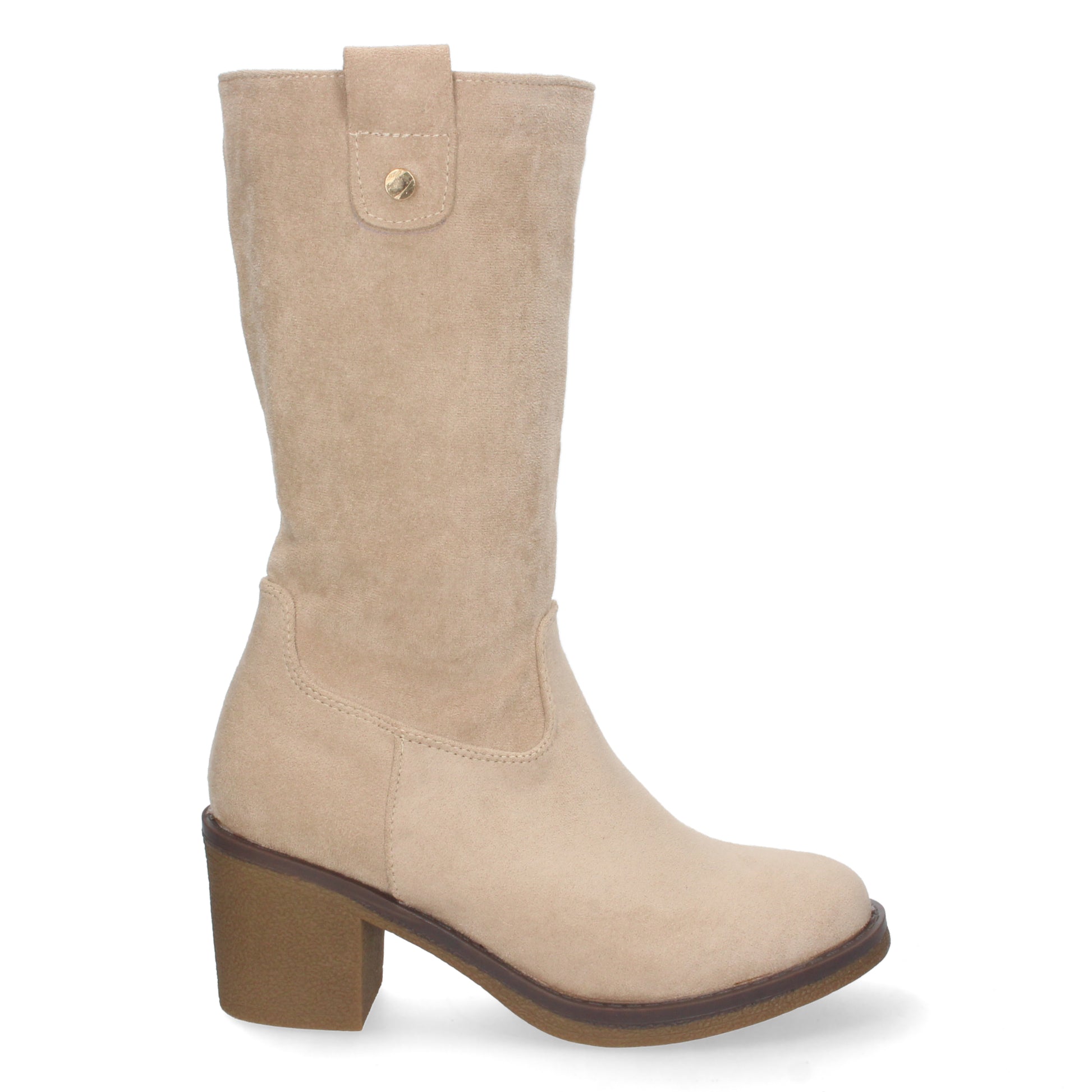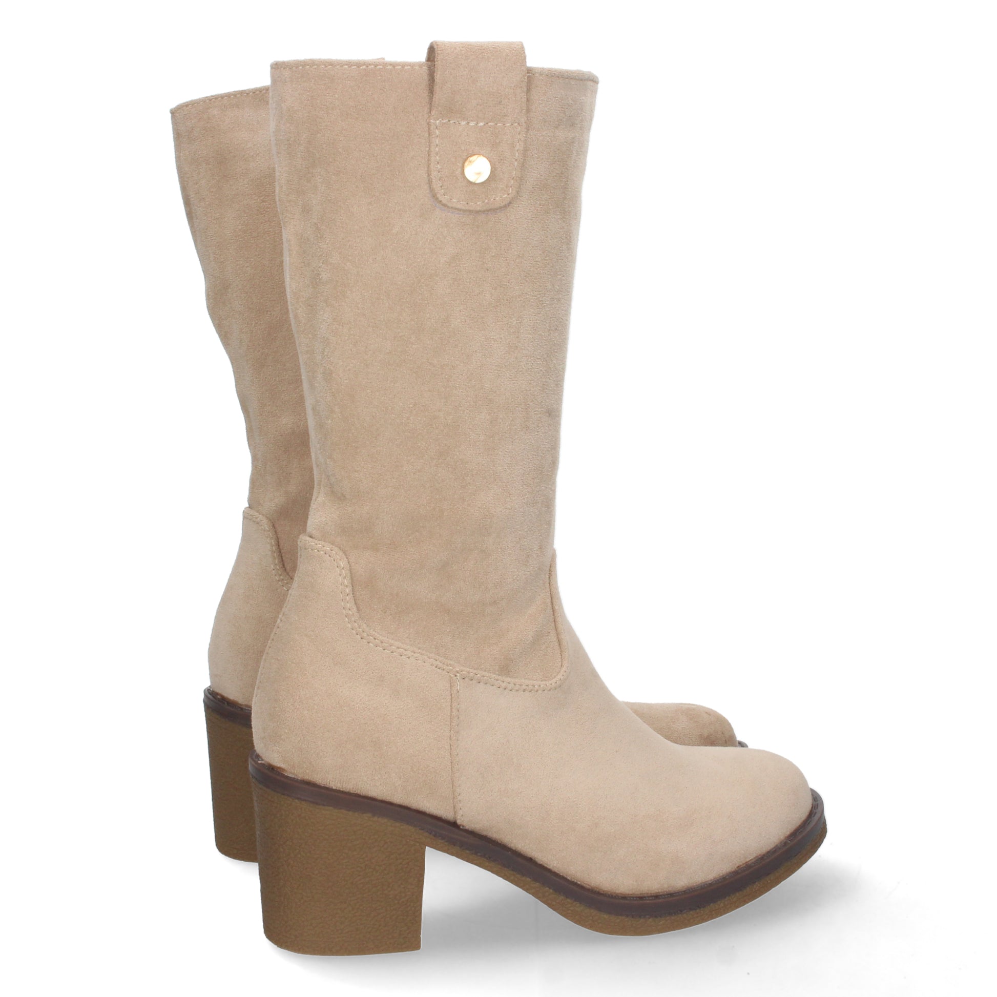 Bota de Tacón para Mujer Comoda con Estampado Liso Tachuela en Caña y Cierre de Cremallera Otoño Invierno 2022