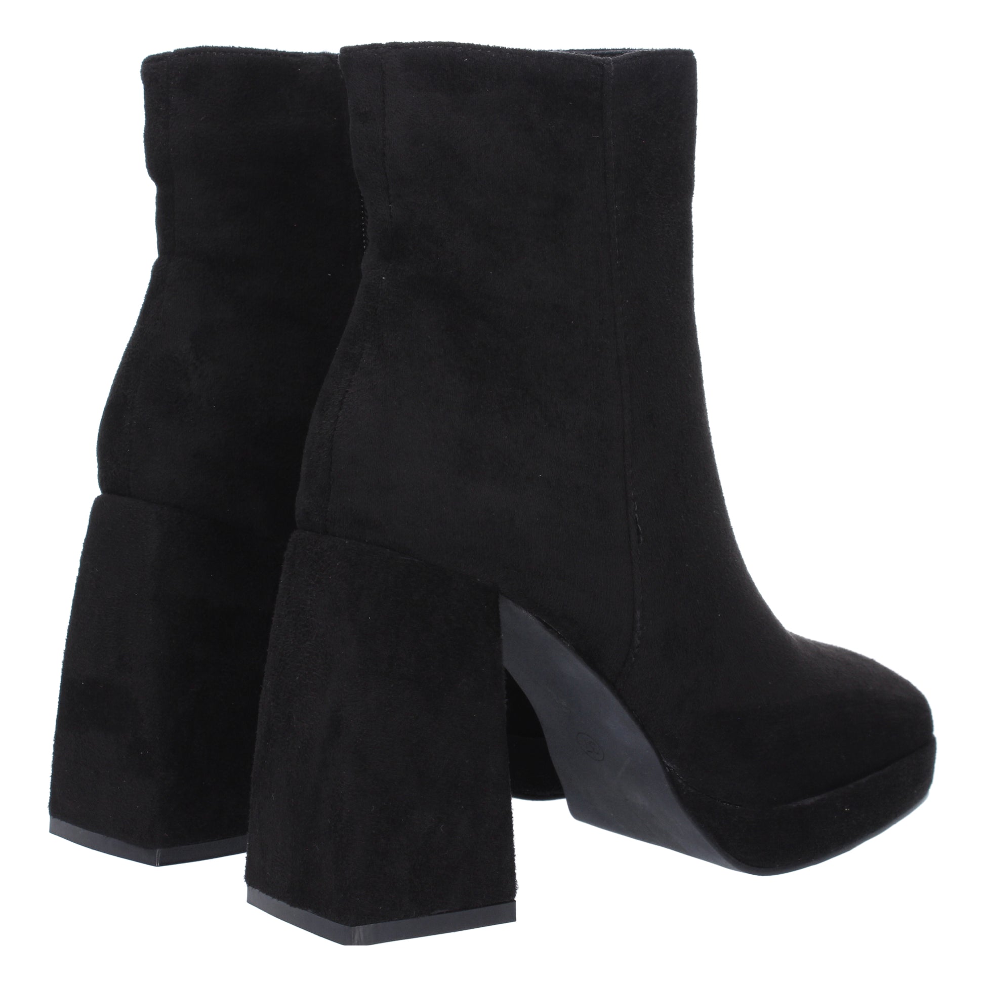 Botín de mujer con tacón asimetrico estampado liso con efecto aterciopelado y cierre de cemallera temporada Otoño Invierno.