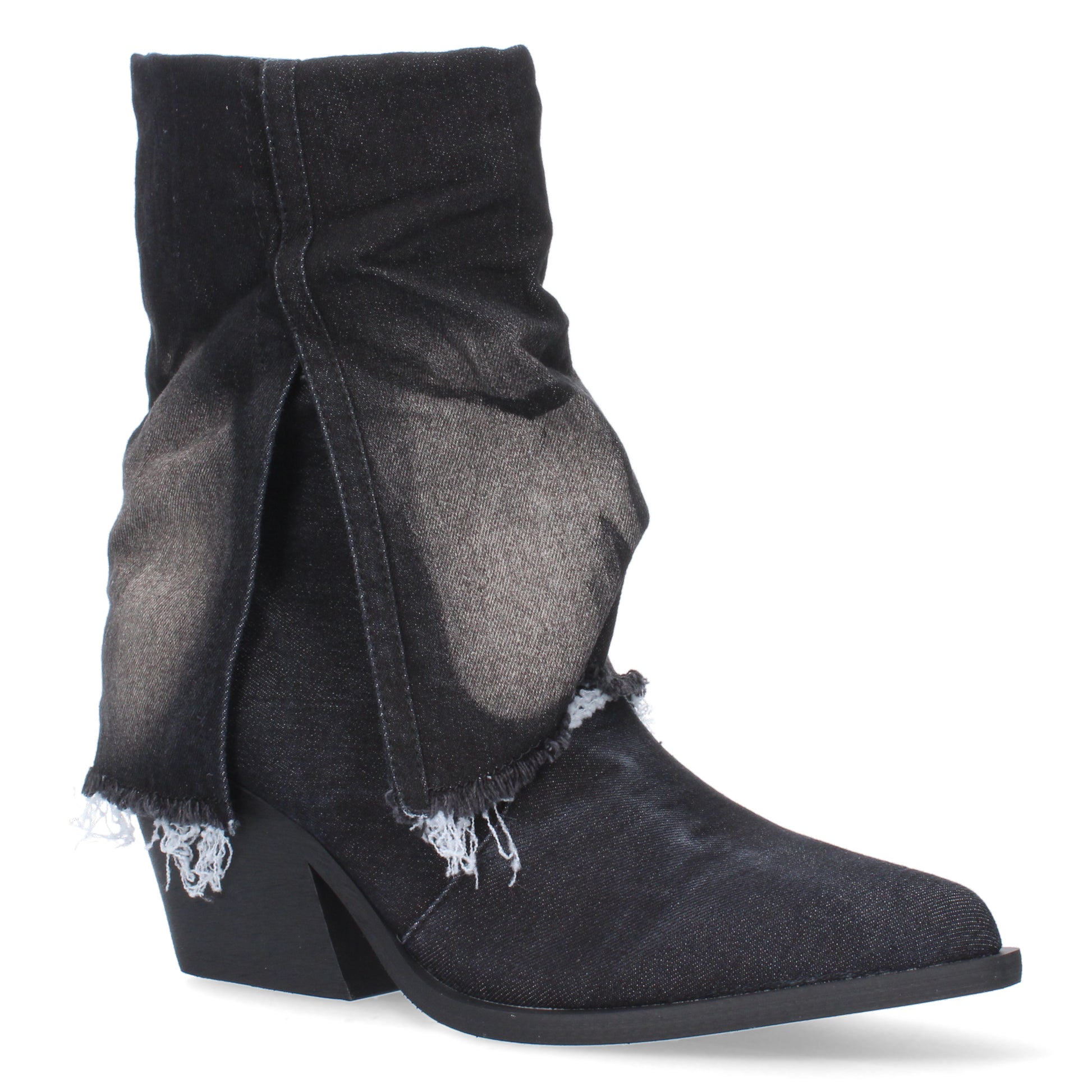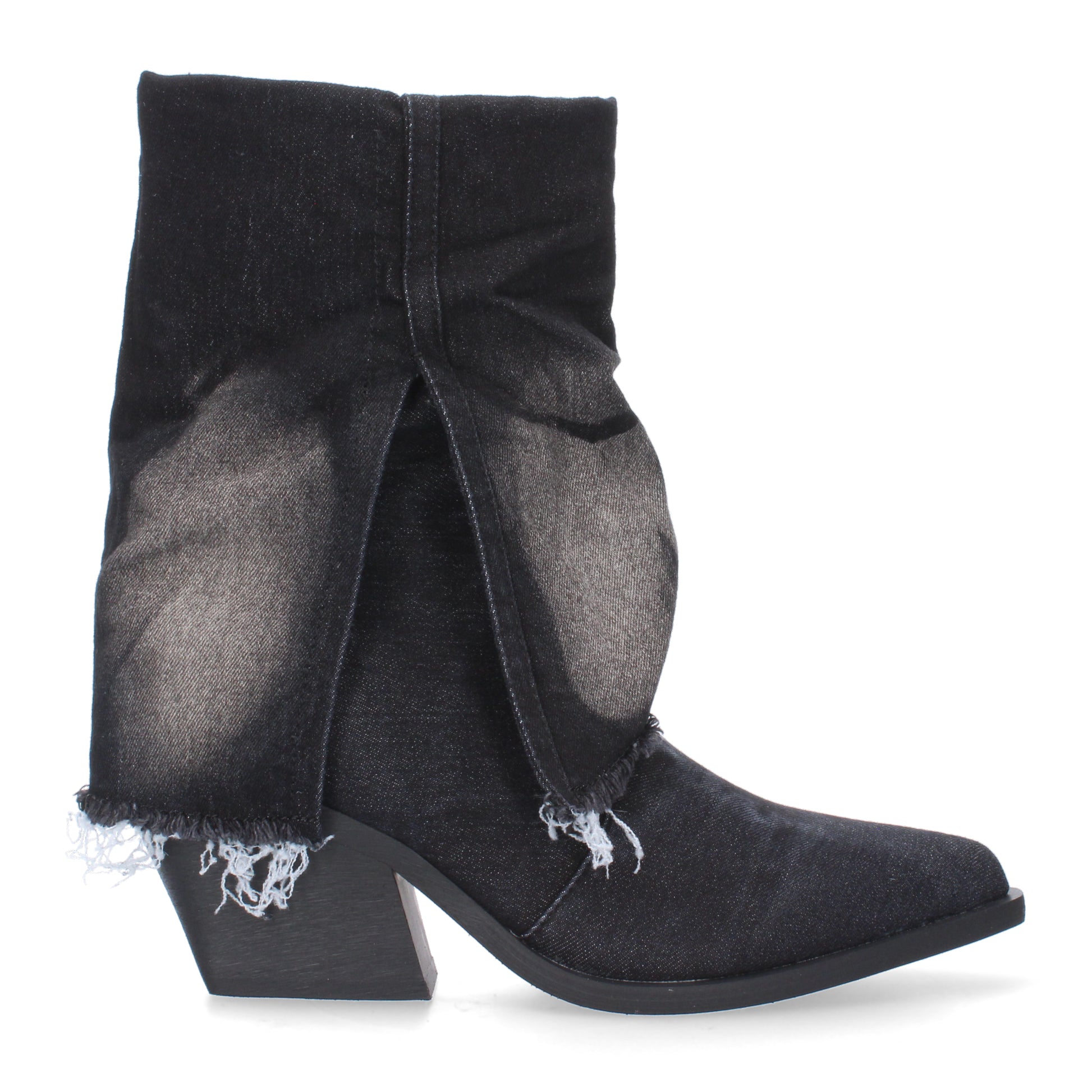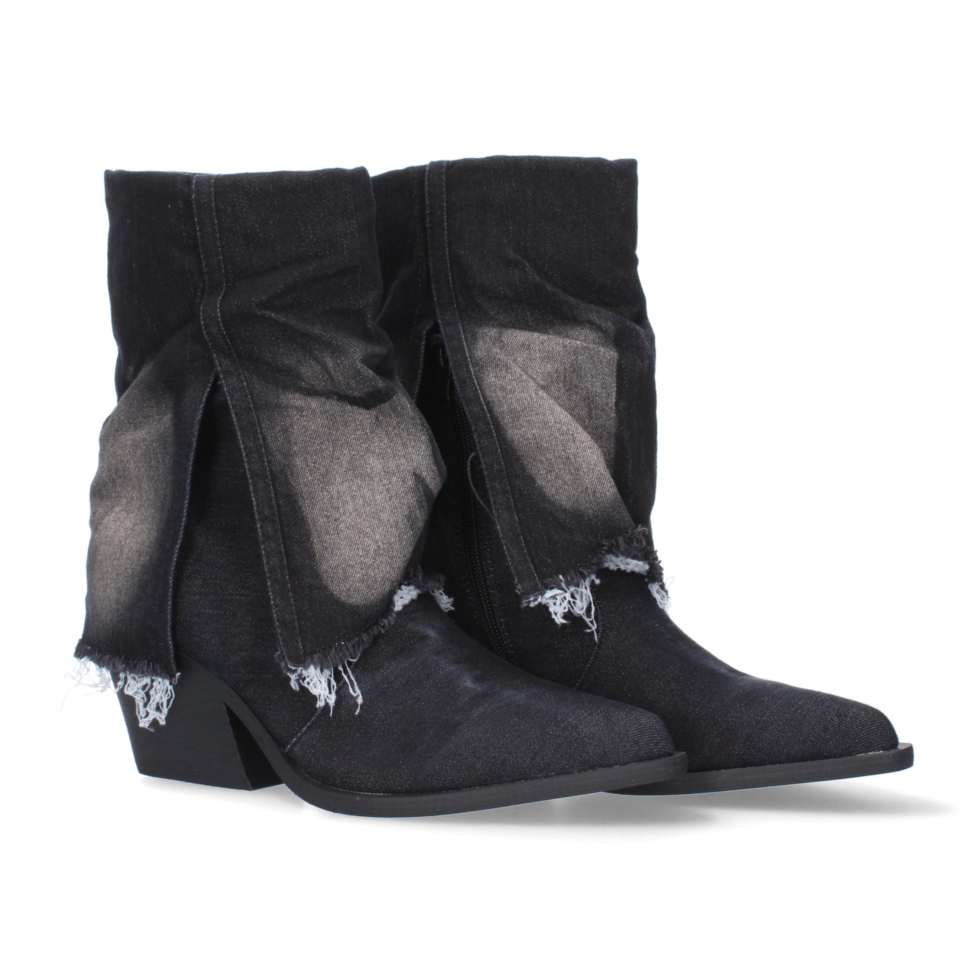 Botín de tacón para mujer cierre de cremallera forrada de tela vaquera.