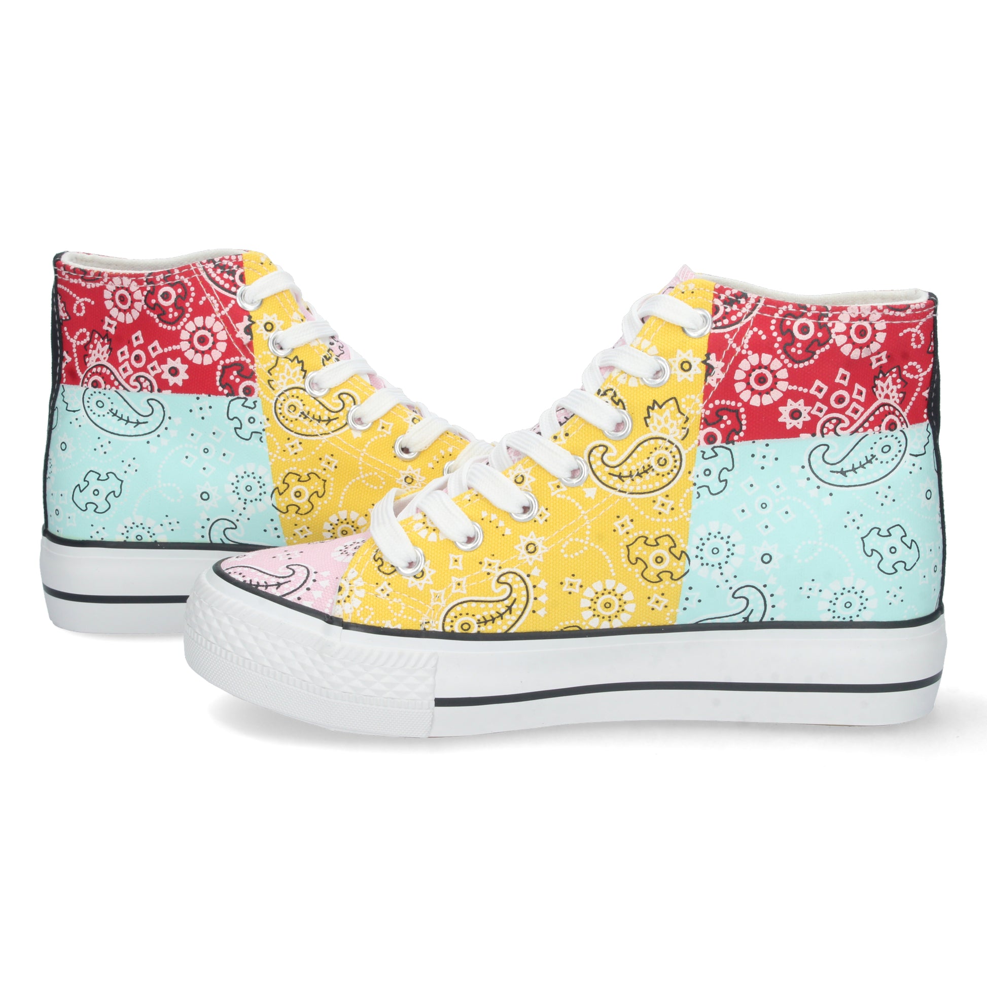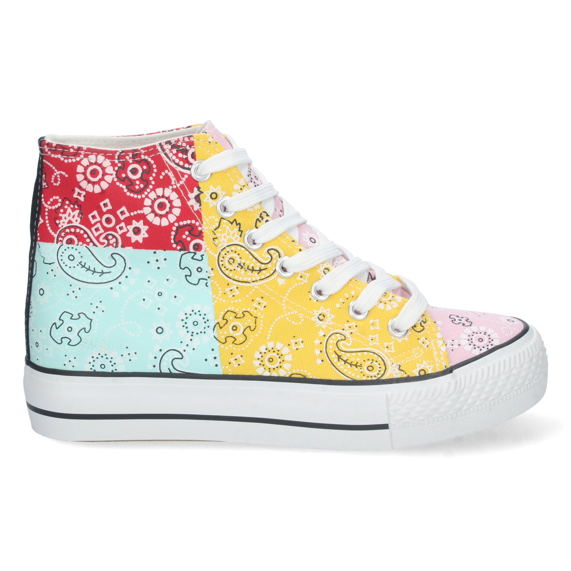 Zapatilla Abotinada para Mujer Comoda Estilo Bamba con Estampado de Colores y Cierre de Cordones Primavera Verano 2023