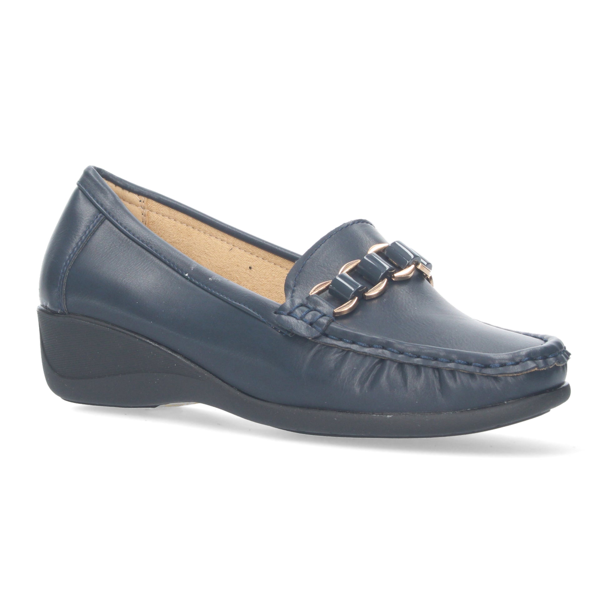 Mocasin de cuña para mujer comodos con detalle metalico en la pala.