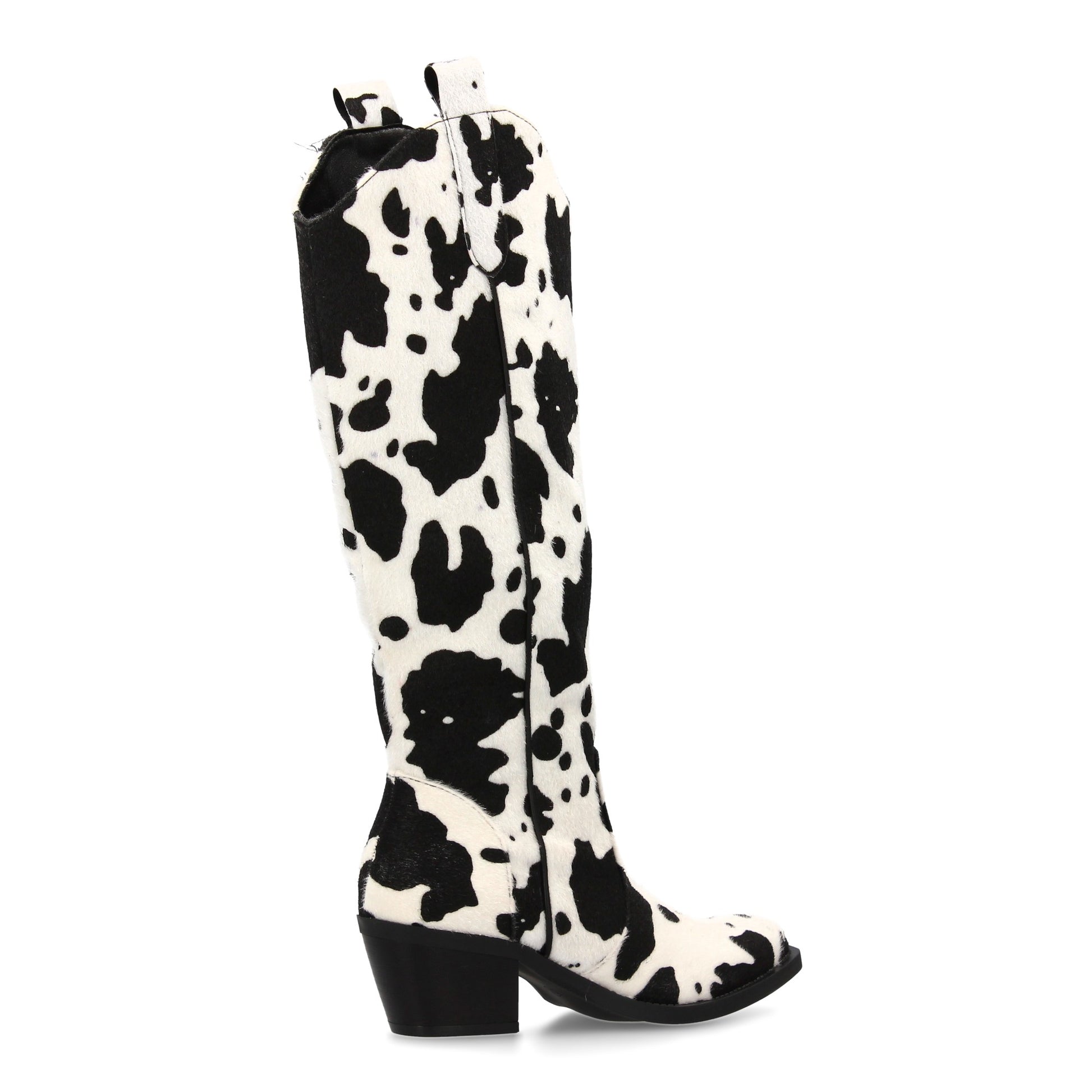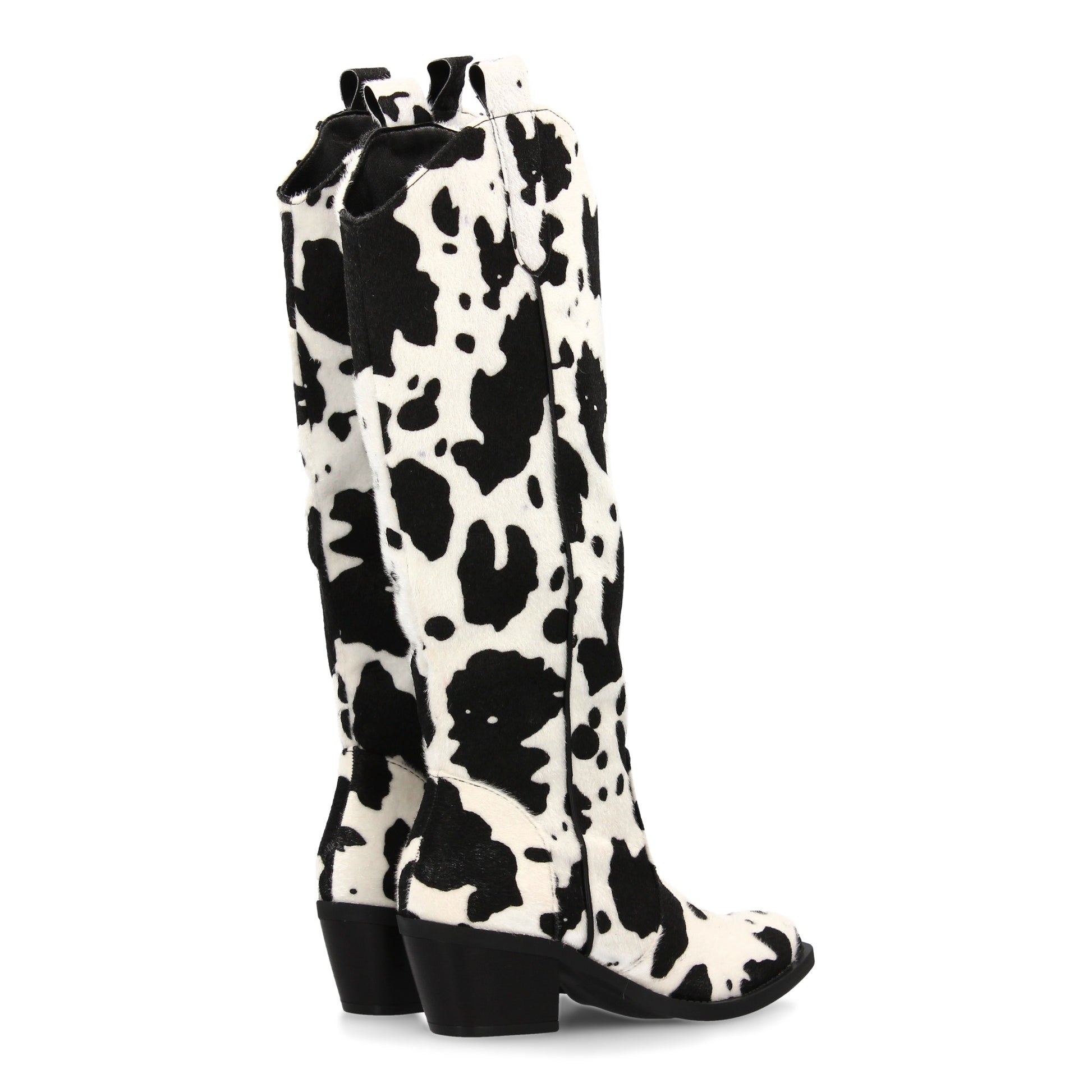 Botas altas estilo cowboy con estampado animal. Punta fina y tacón comodo estilo moderno y diseño original. Ideal para la temporada otoño invierno.