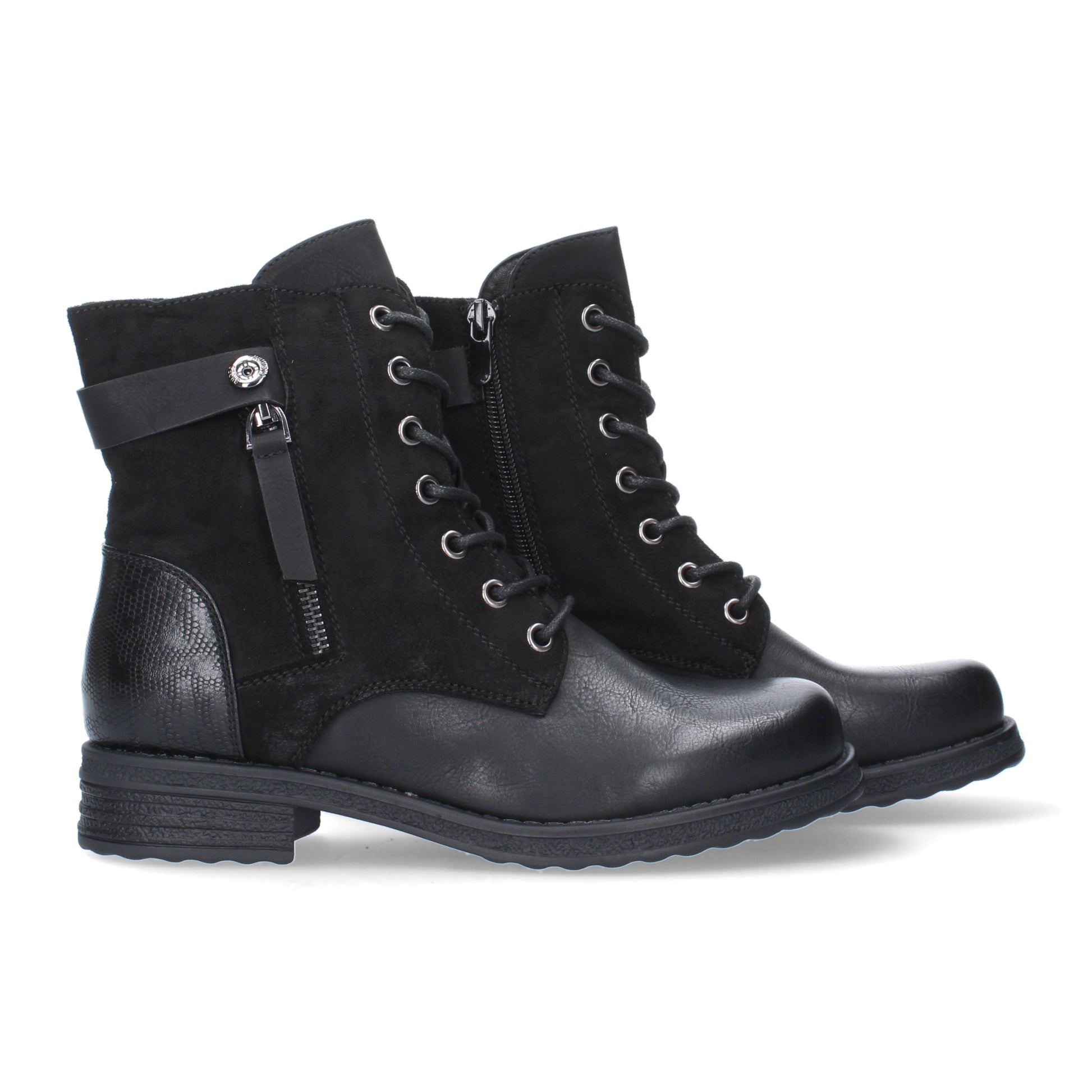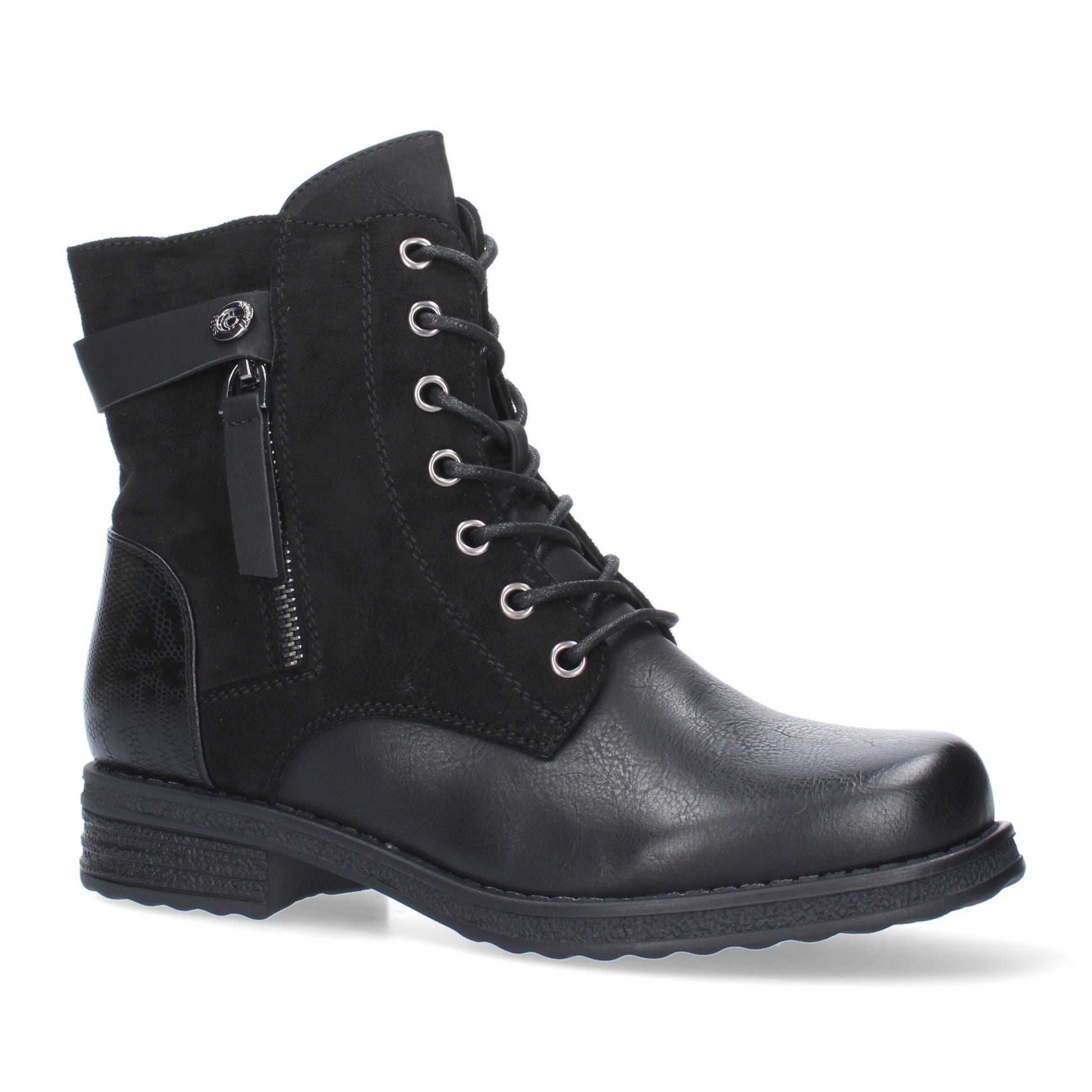 Botín de tacón para mujer cierre de cremallera y de cordones adorno de cremallera en la cuña.