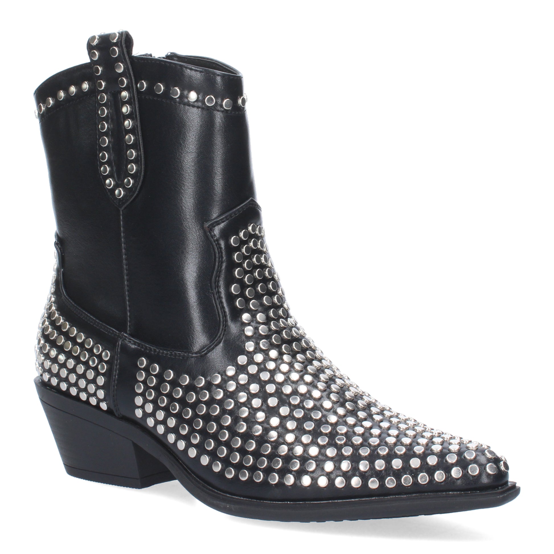 Botin de Mujer con Tacon de Punta Fina Adornado con Tachuelas Metalicas Otoño Invierno 2023