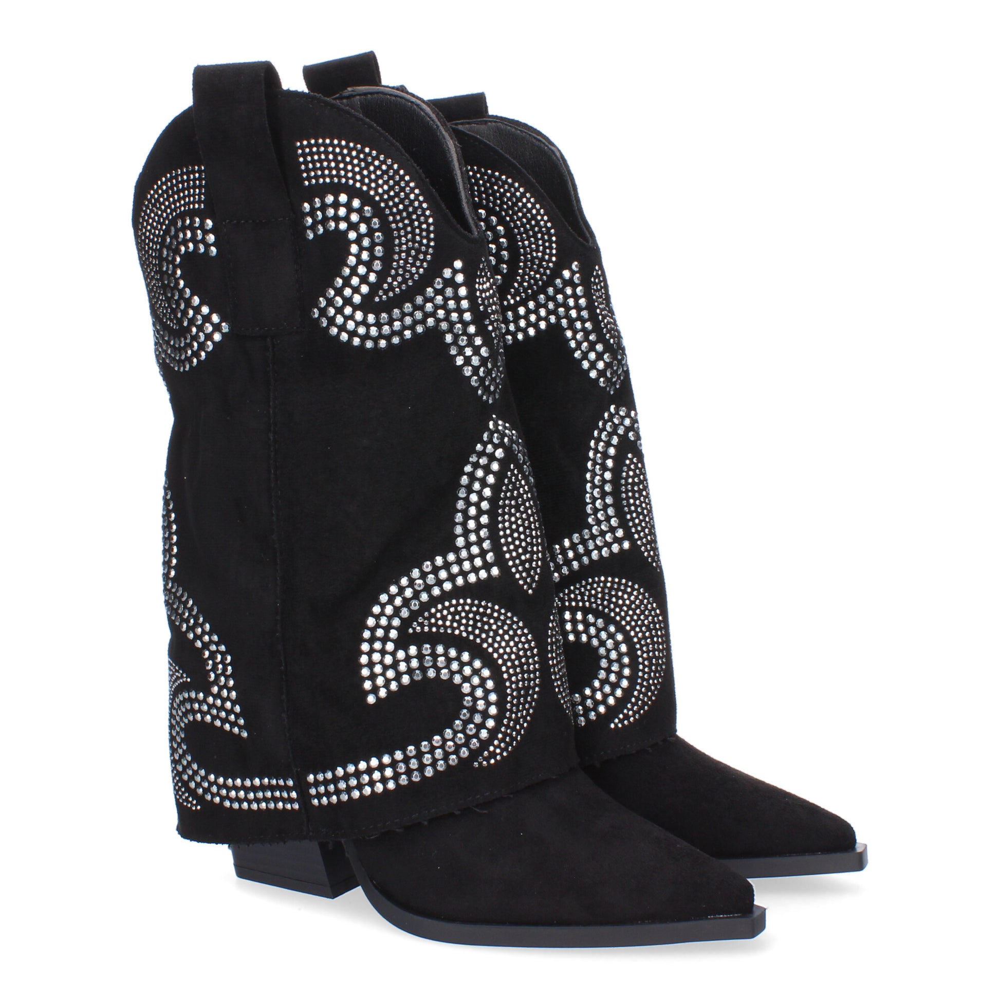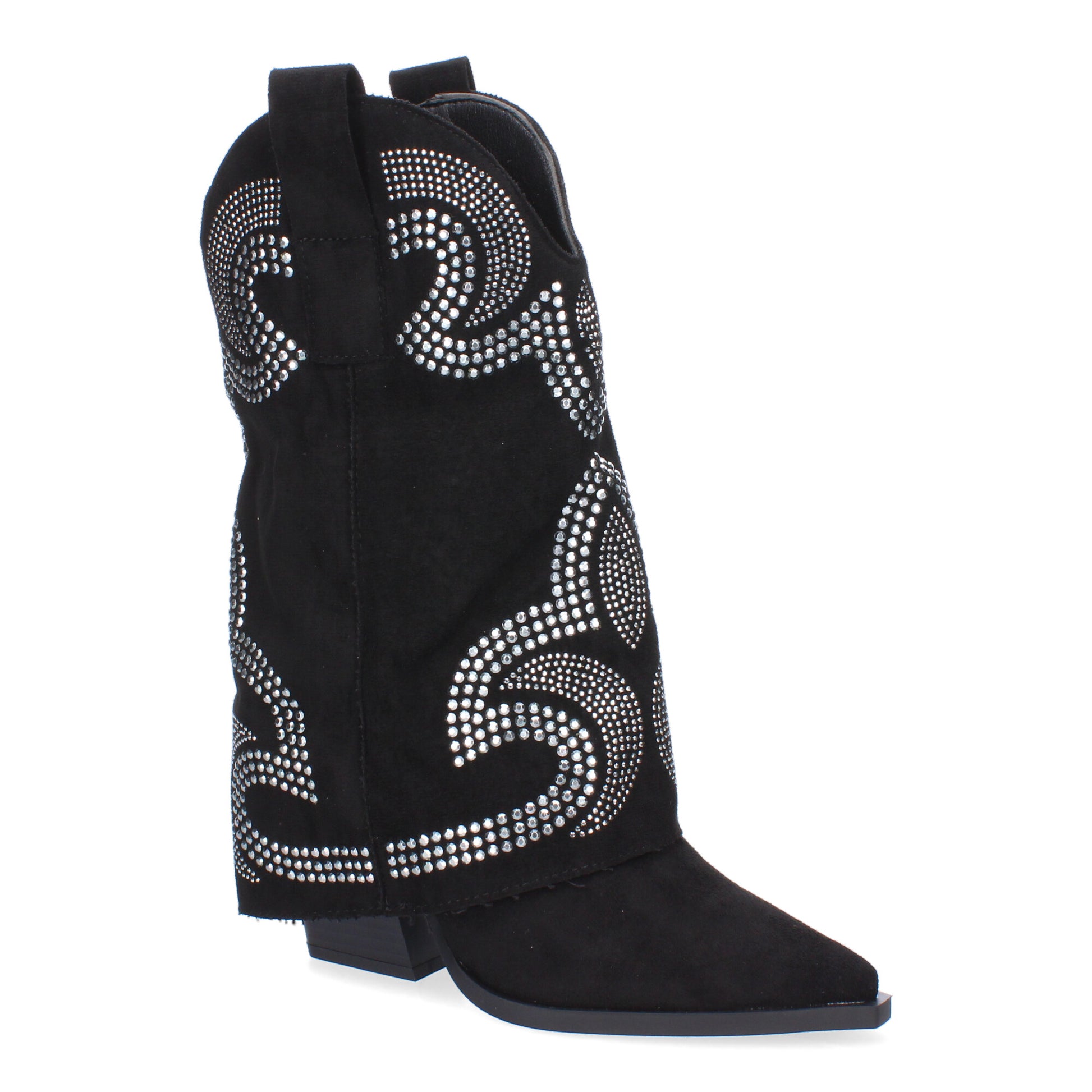 Botines de Tacón para Mujer Estilo Cowboy Polaina Comodas y Elegantes con Adorno de Tachuelas Sin Cierre.