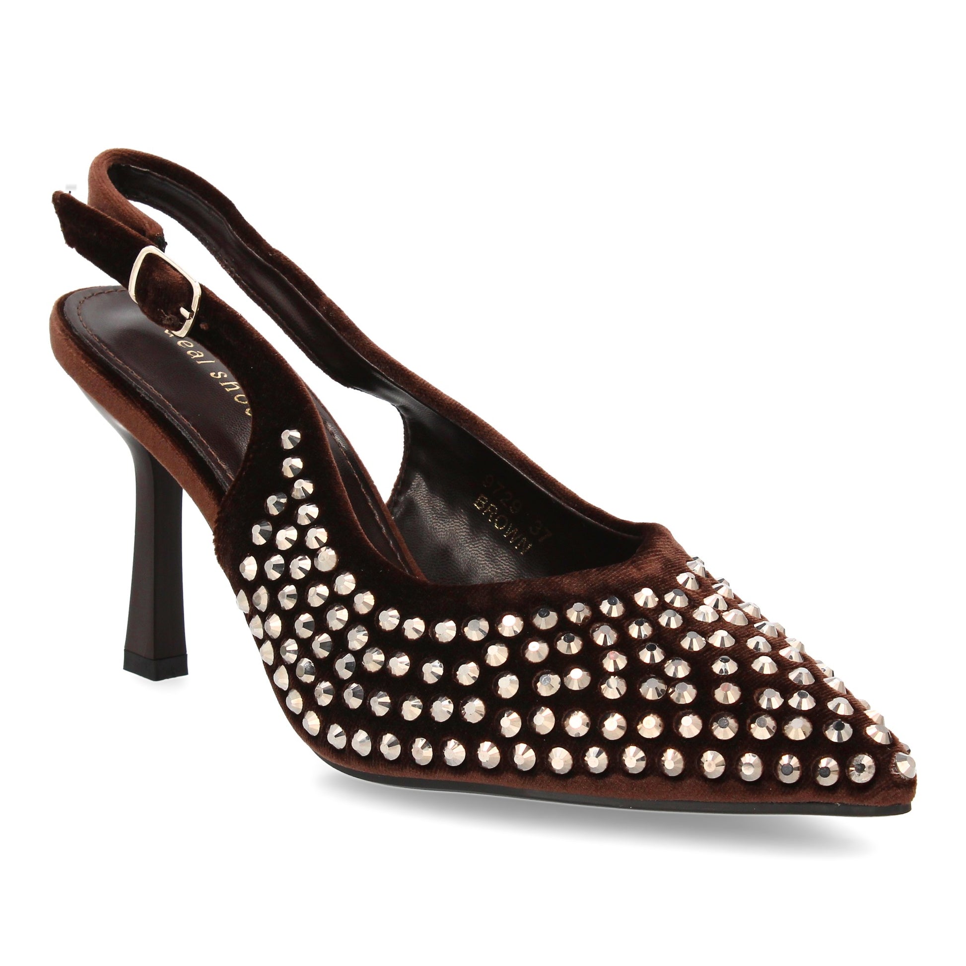 Zapatos de salón elegante con punta fina y pedreria tacon fino y cierre de hebilla. Ideales para mujer en eventos de la temporada Otoño invierno.