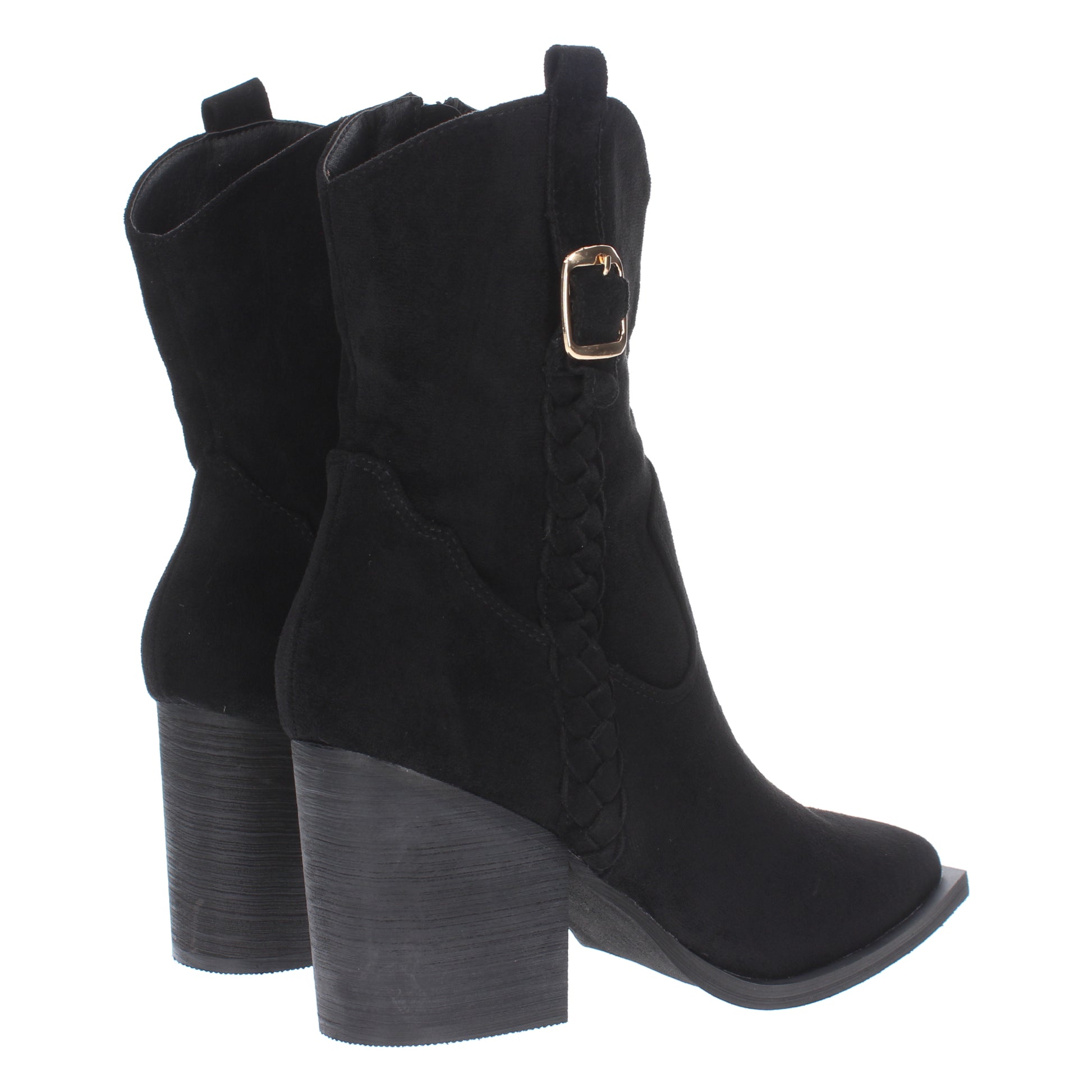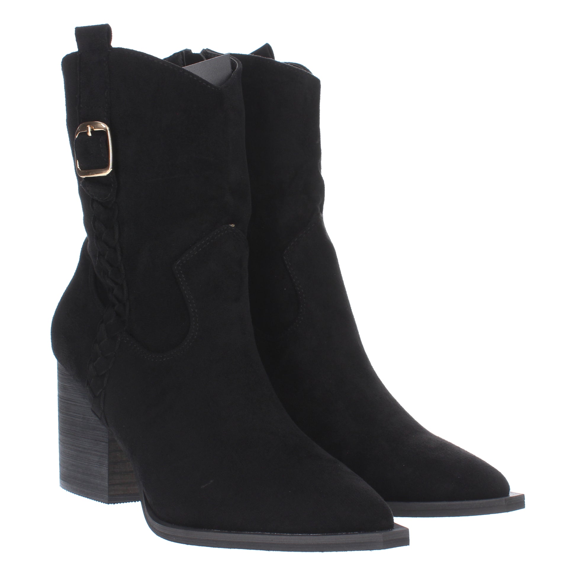 Botín campero con estampado liso cierre de cremallera trenza en la caña y hebilla decorativa. Colección Otoño invierno 2023
