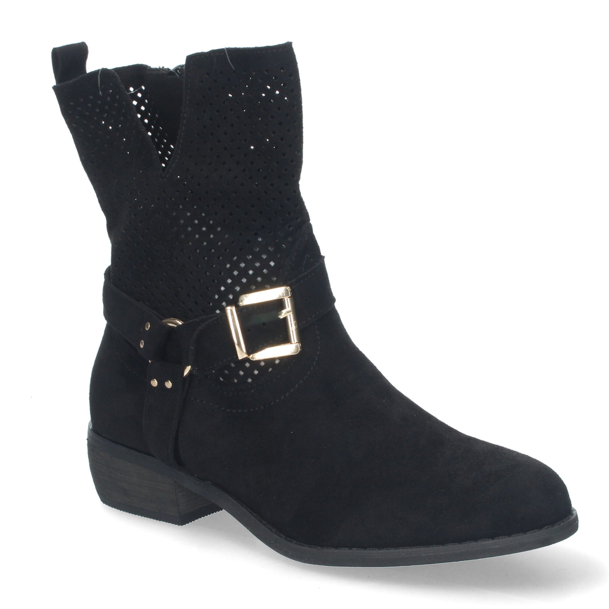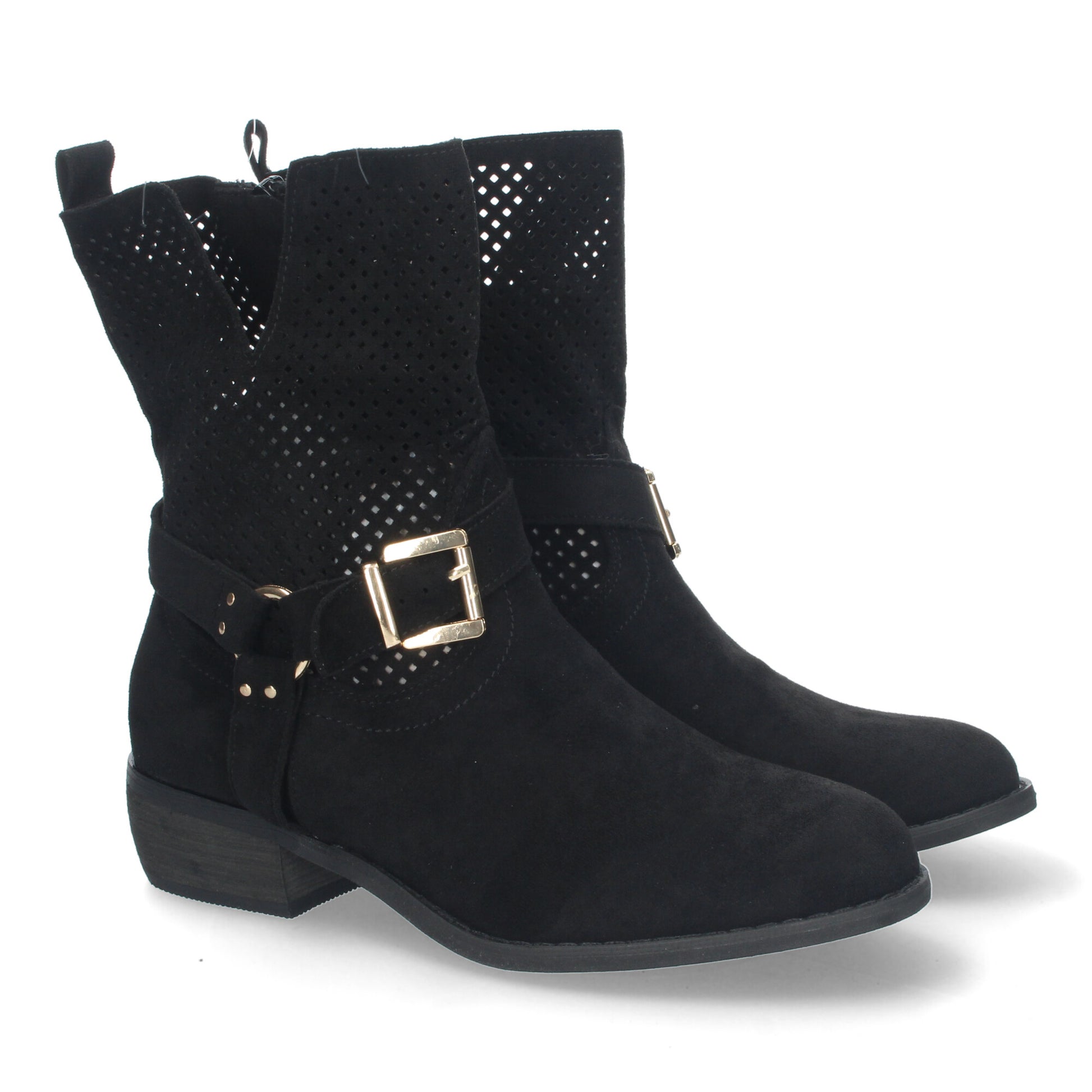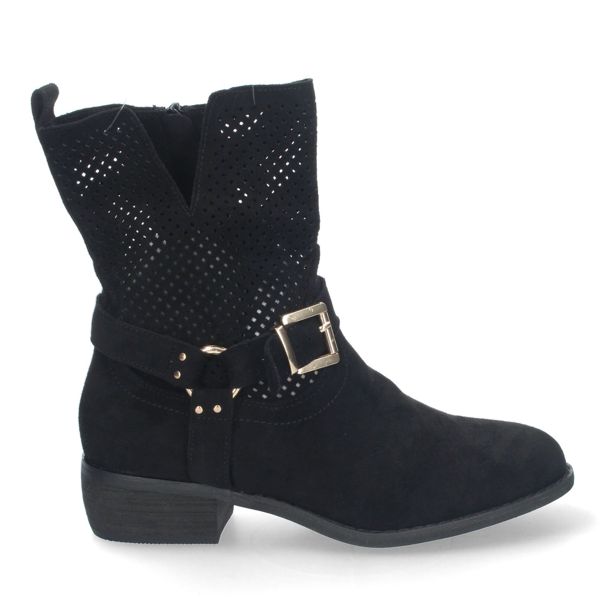 Botines de Mujer con Tacón Cómodos Diseño Calado Cierre de Cremallera Lateral y de Hebilla.