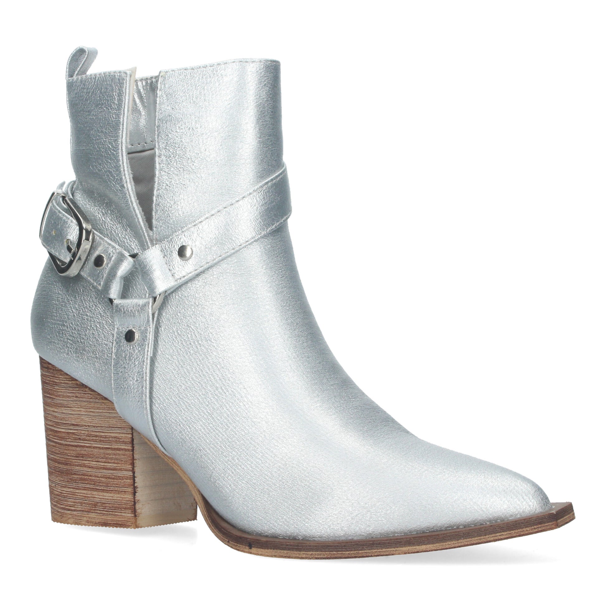 Botines de Mujer con Tacón Campero Elegantes con Hebilla Punta Fina y Cierre de Cremallera lateral.