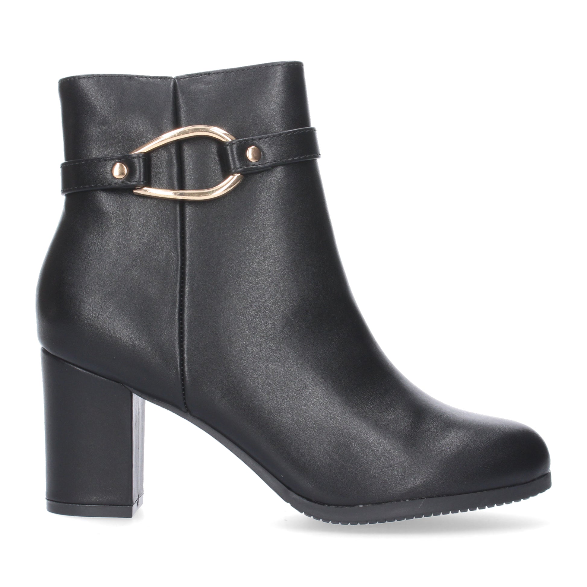 Botin de Tacon Ancho para Mujer punta redonda adorno de hebilla y Cierre de Cremallera