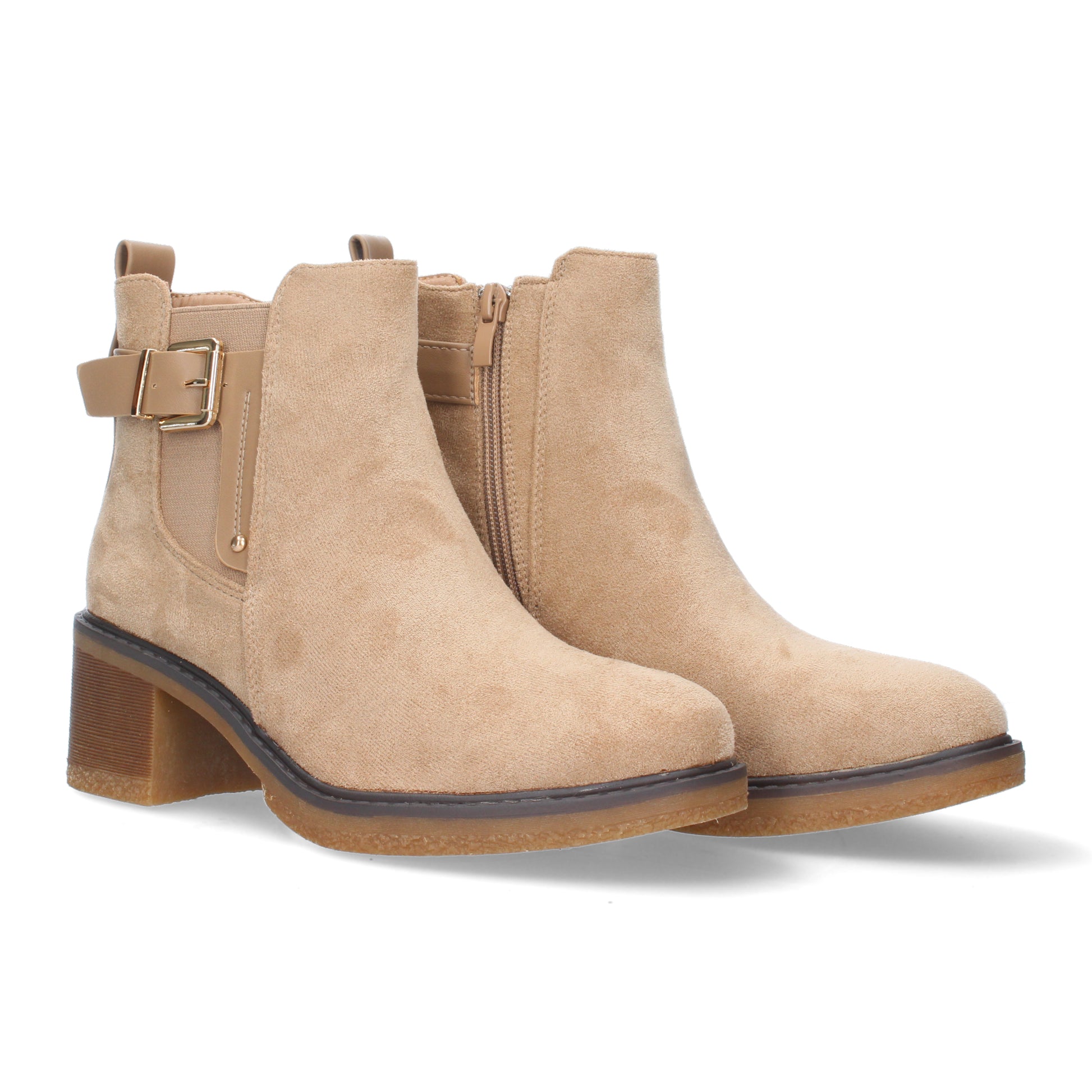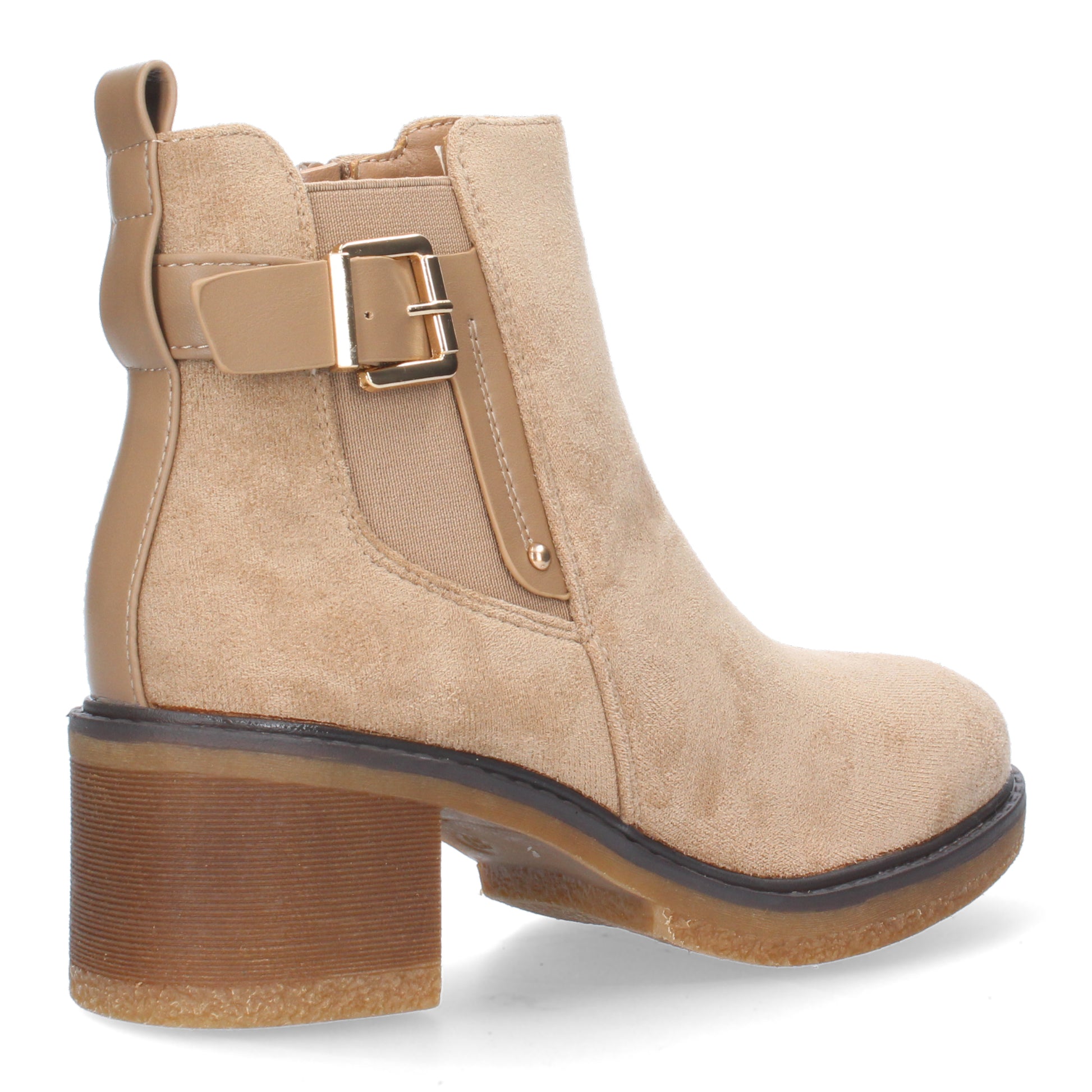 Botin de Tacon para Mujer con material aterciopelado cierre de cremallera y tachuela en la caña.