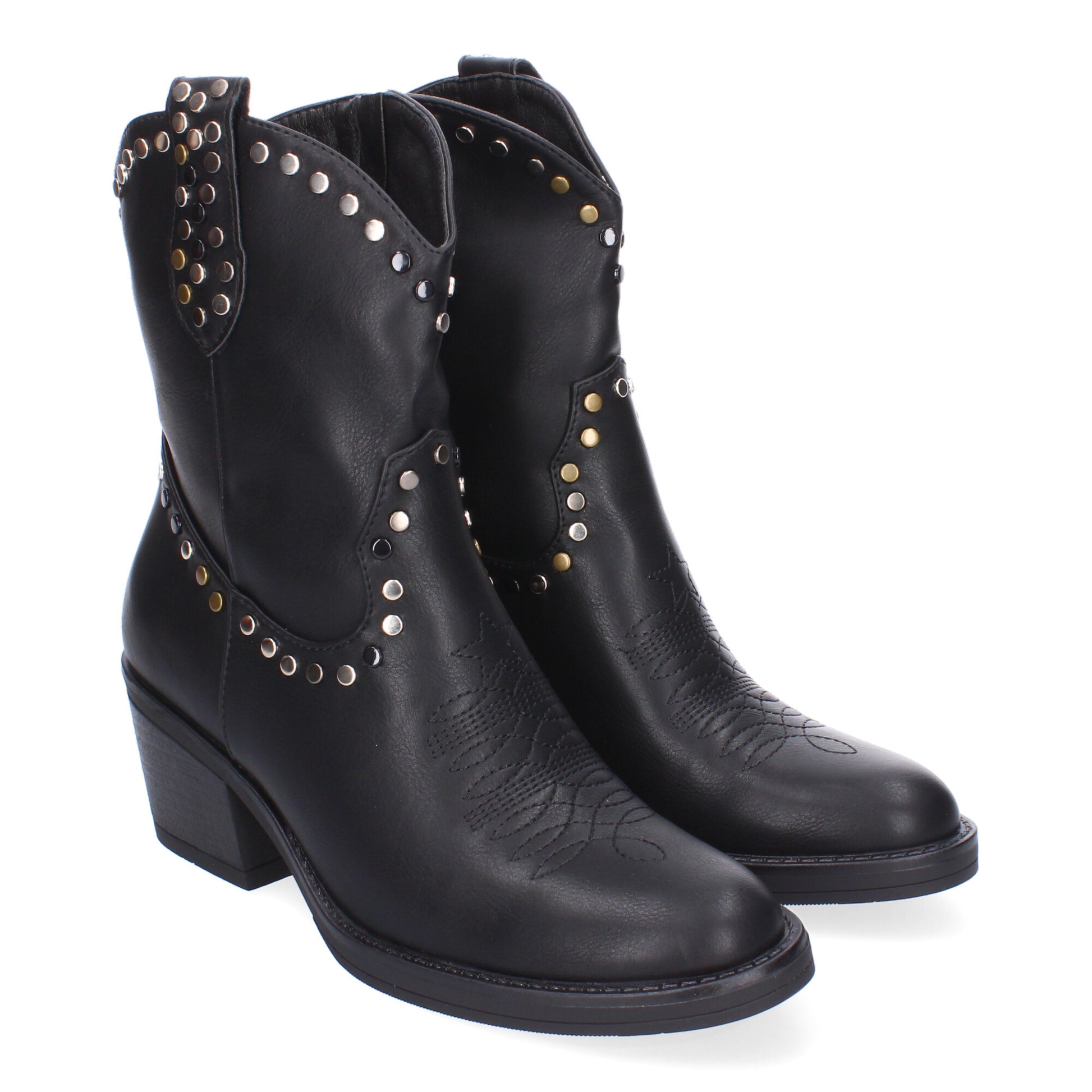 Botines de Tacón para Mujer Estilo Campero Comodas y Elegantes Adorno de Tachuelas Grabadas en el Empeine.