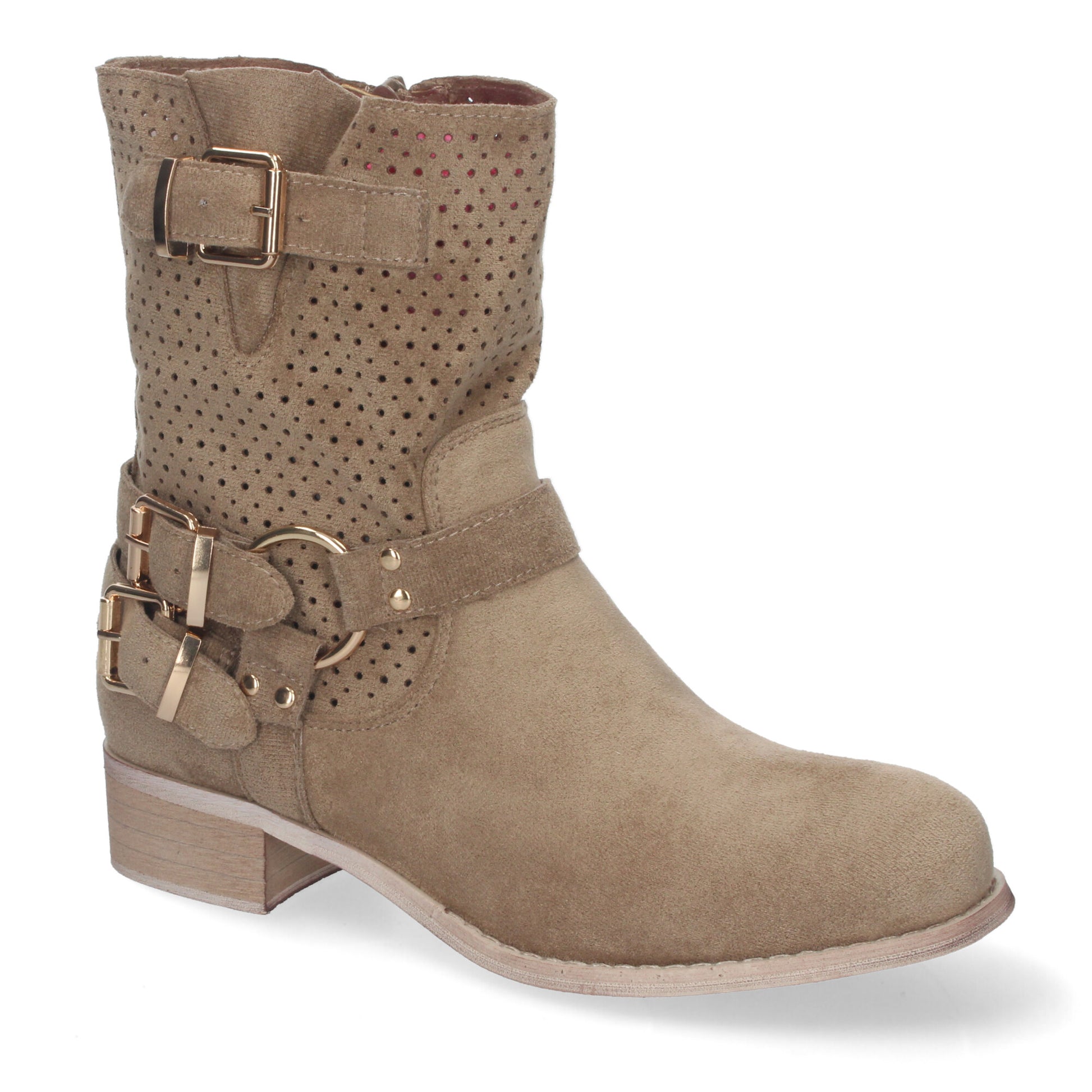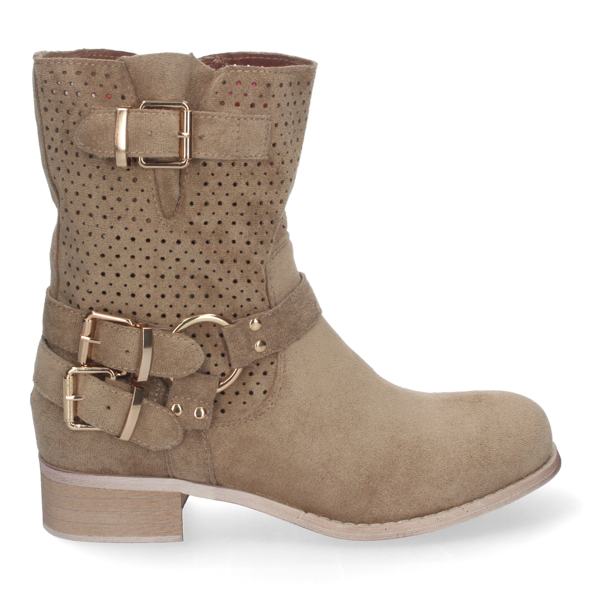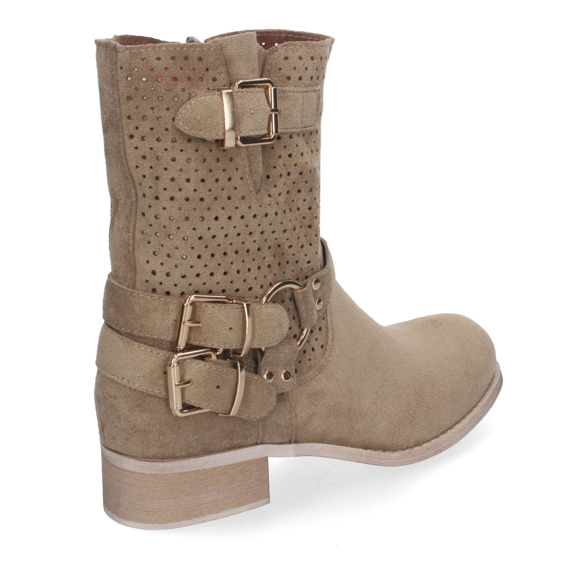 Botines de Mujer con Tacón Bajo y Adornos de Hebillas Estilo Casual Caña Calada Cremallera Lateral Punta Redonda Perfectos para Toda Ocasión