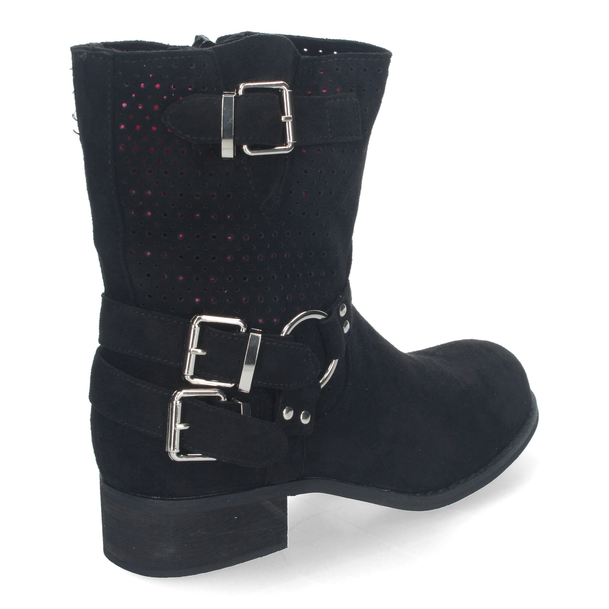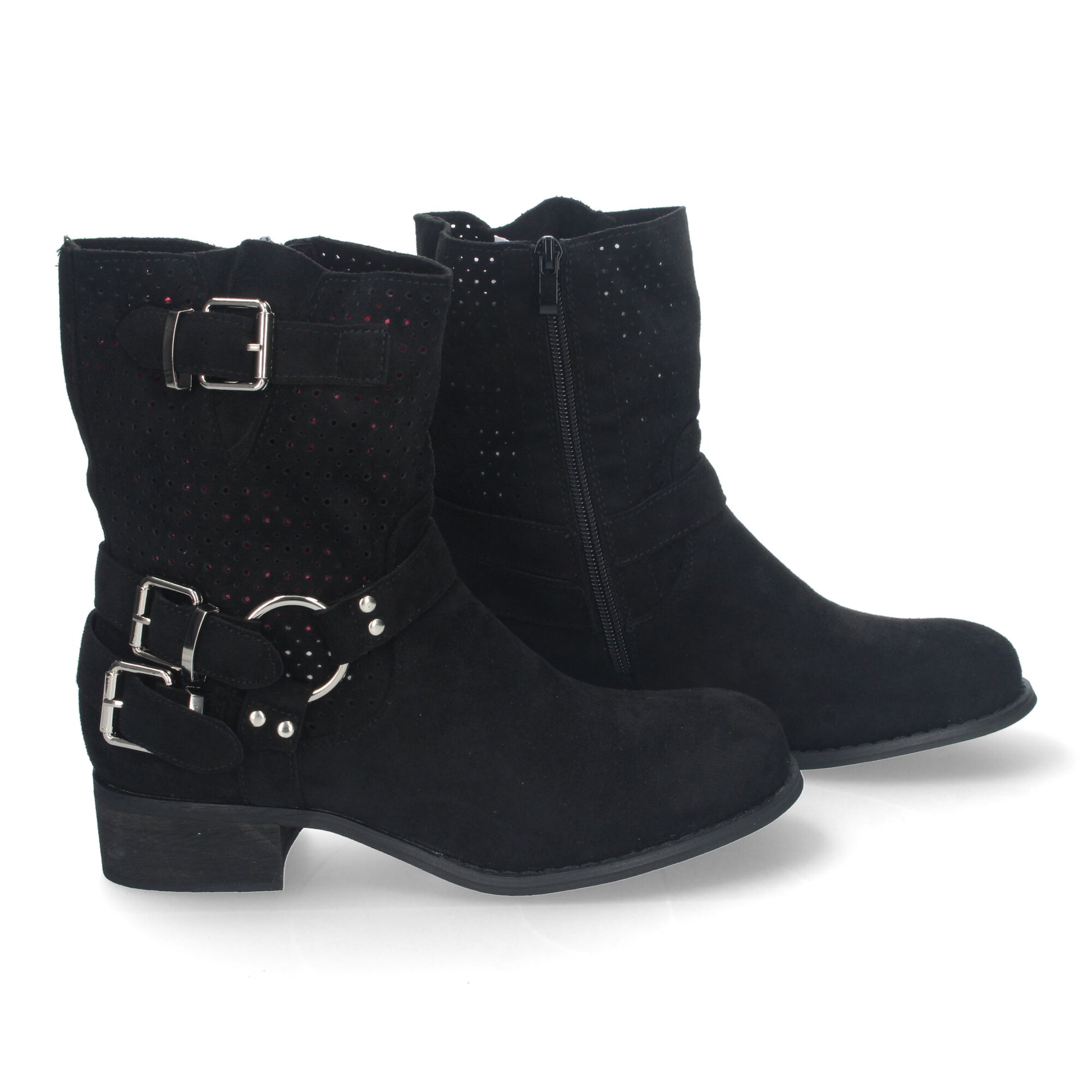 Botines de Mujer con Tacón Bajo y Adornos de Hebillas Estilo Casual Caña Calada Cremallera Lateral Punta Redonda Perfectos para Toda Ocasión