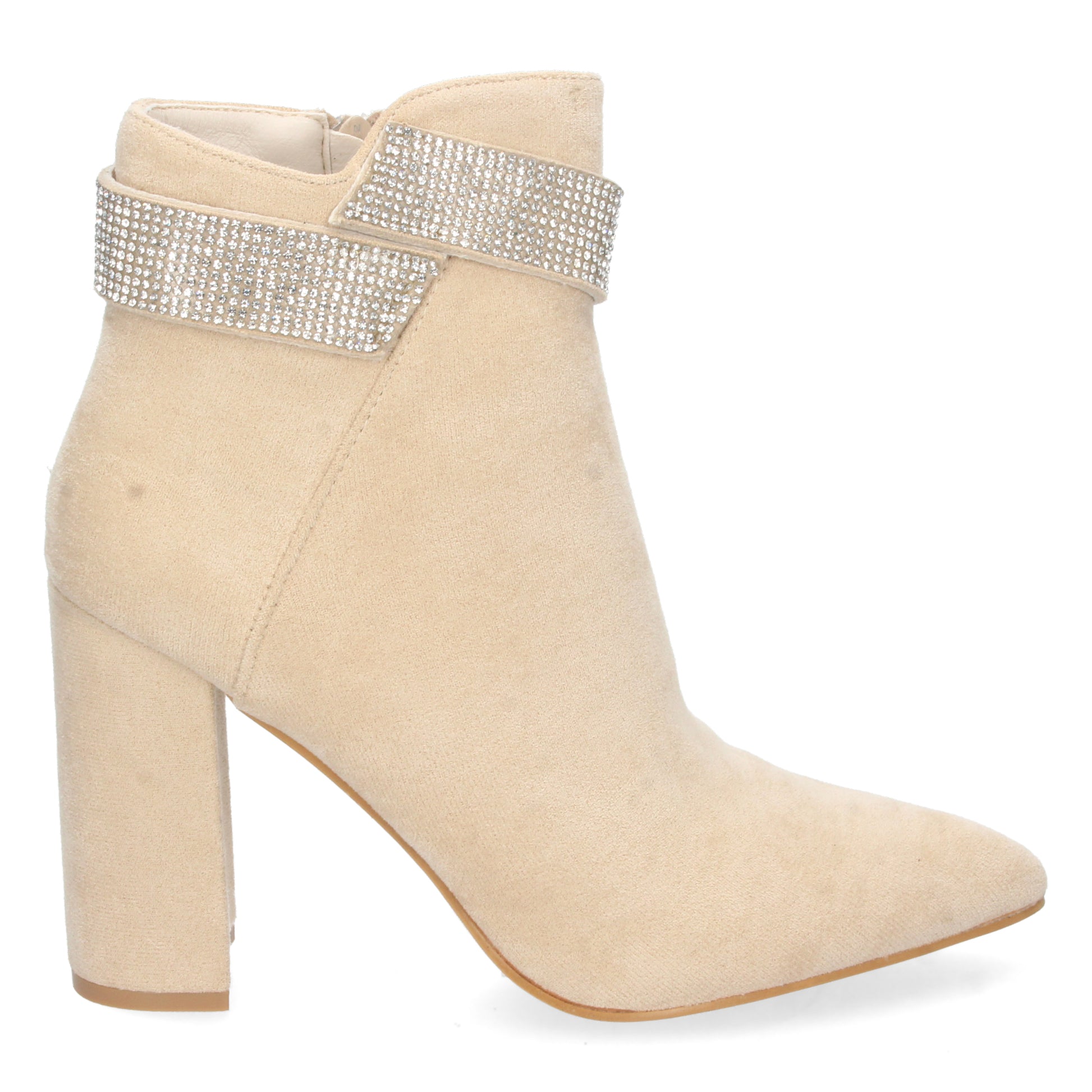 Botin de Tacon para Mujer Comodo de Punta Fina Correa en Caña con Strass y Cierre de Cremallera Otoño Invierno 2022