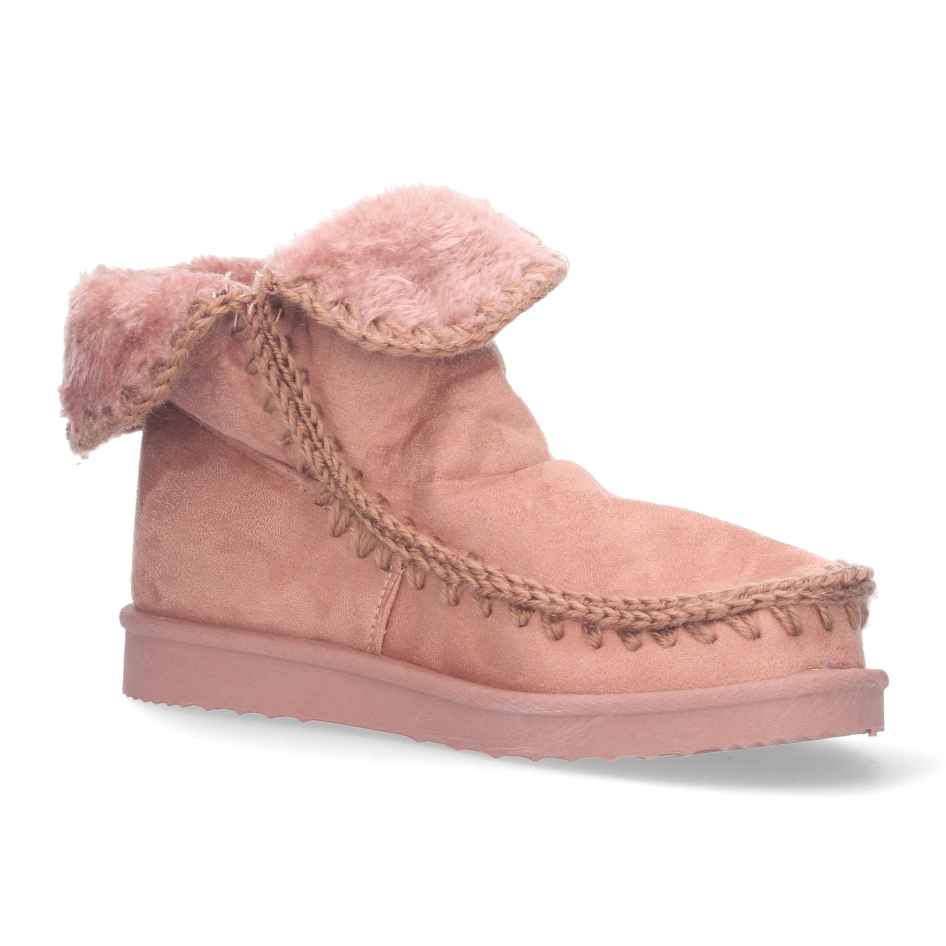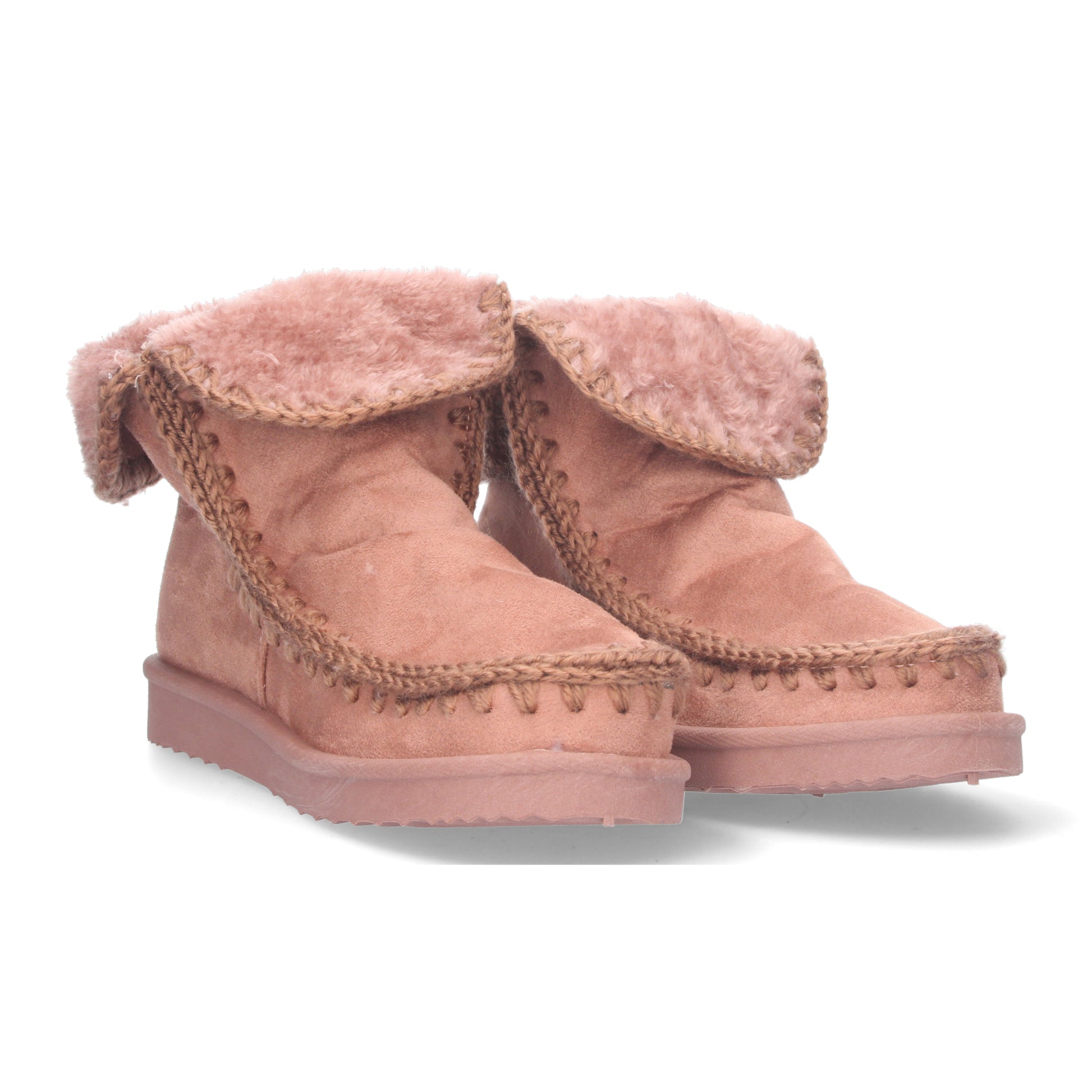 Botín Plano para Mujer Estilo Australiano Material Aterciopelado Forrado de Pelo de Punta Redonda.