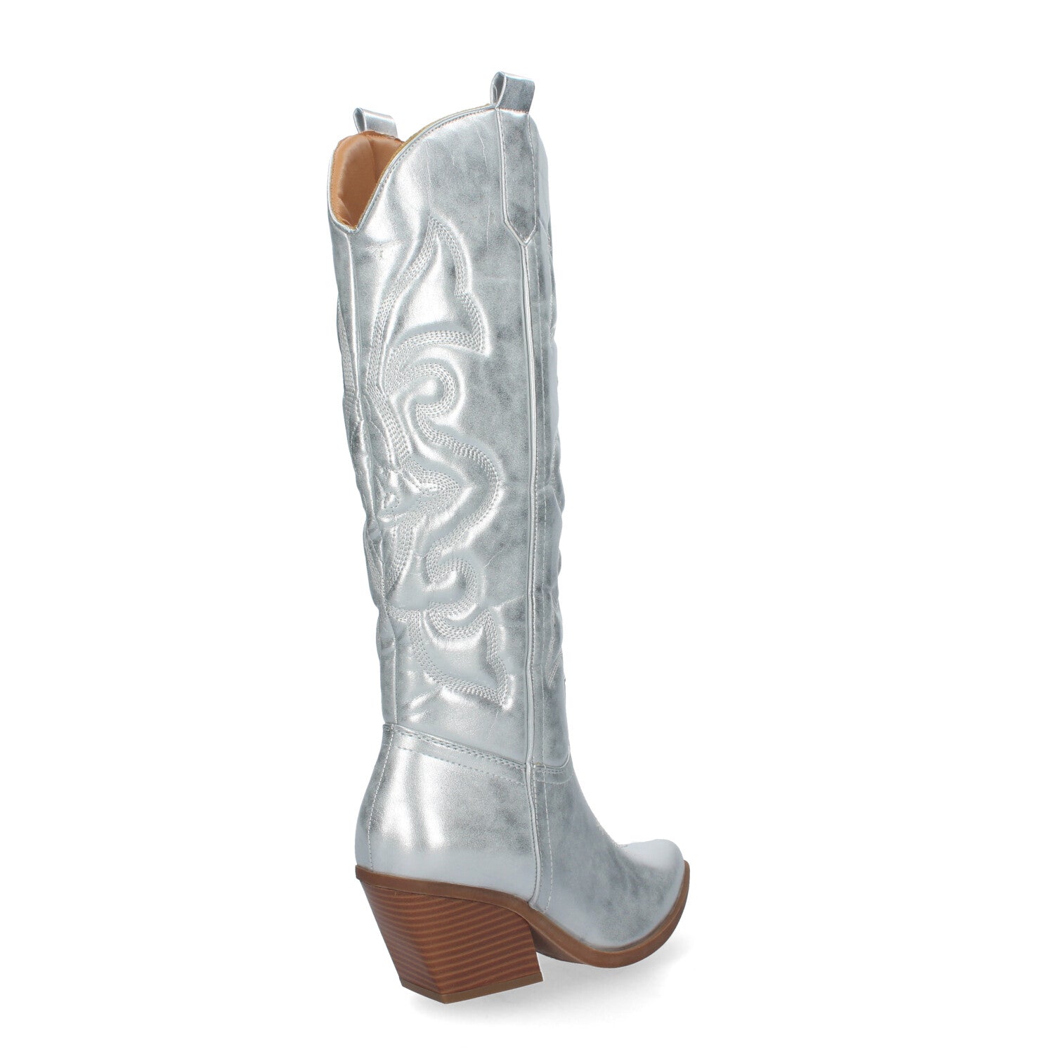 Bota para mujer con tacon cubano con grabado en caña y en la pala estilo cowboy