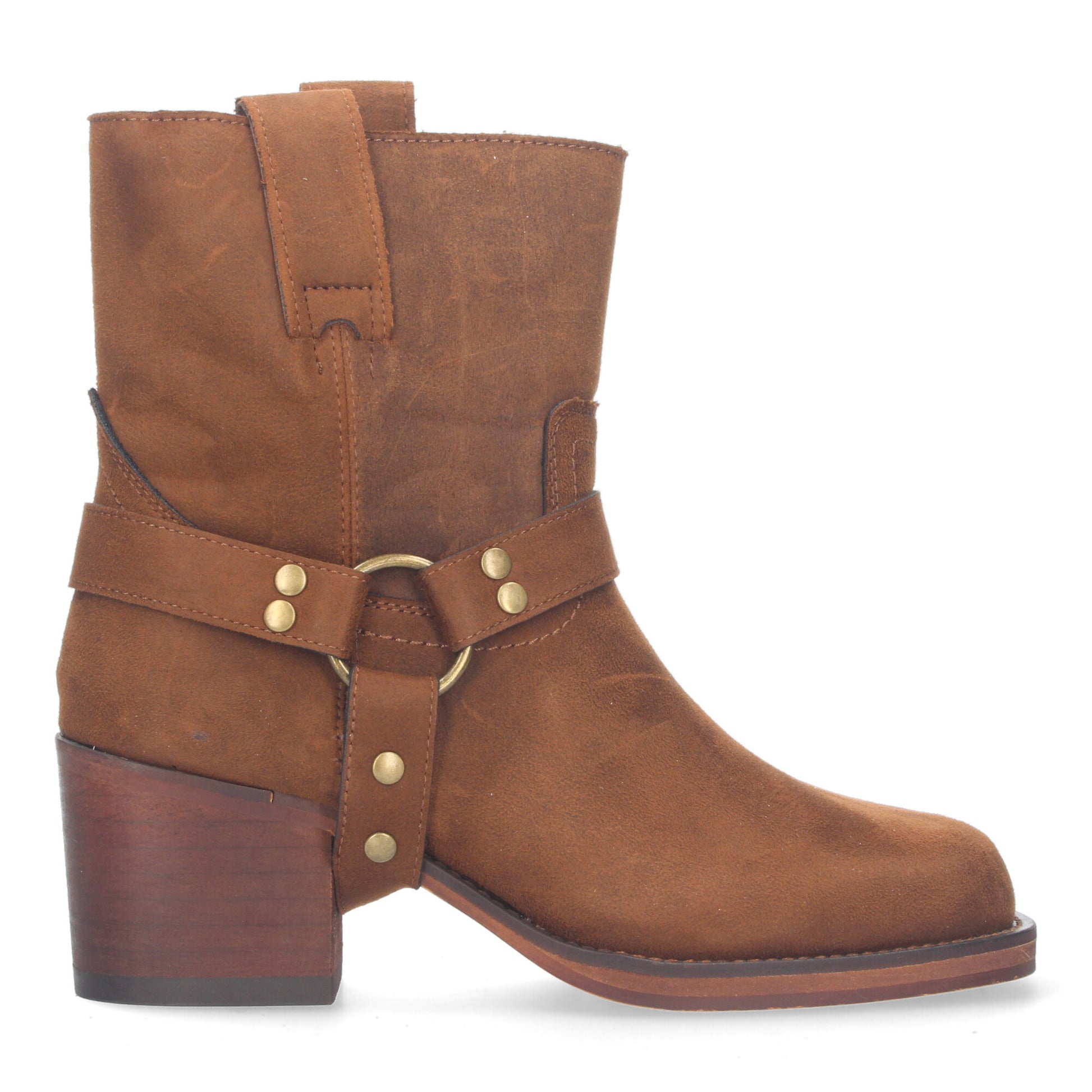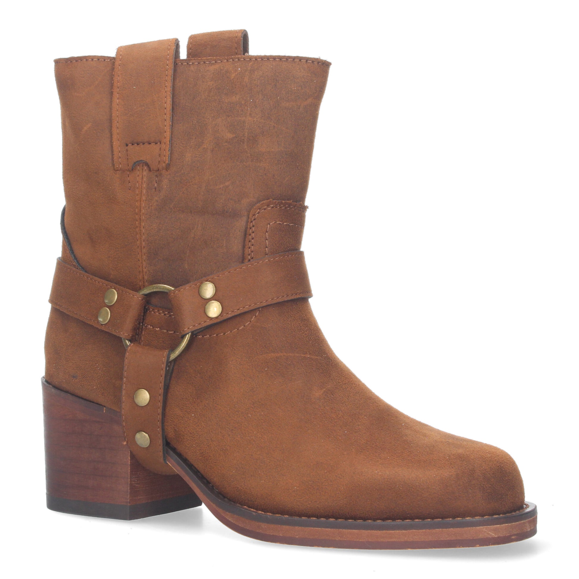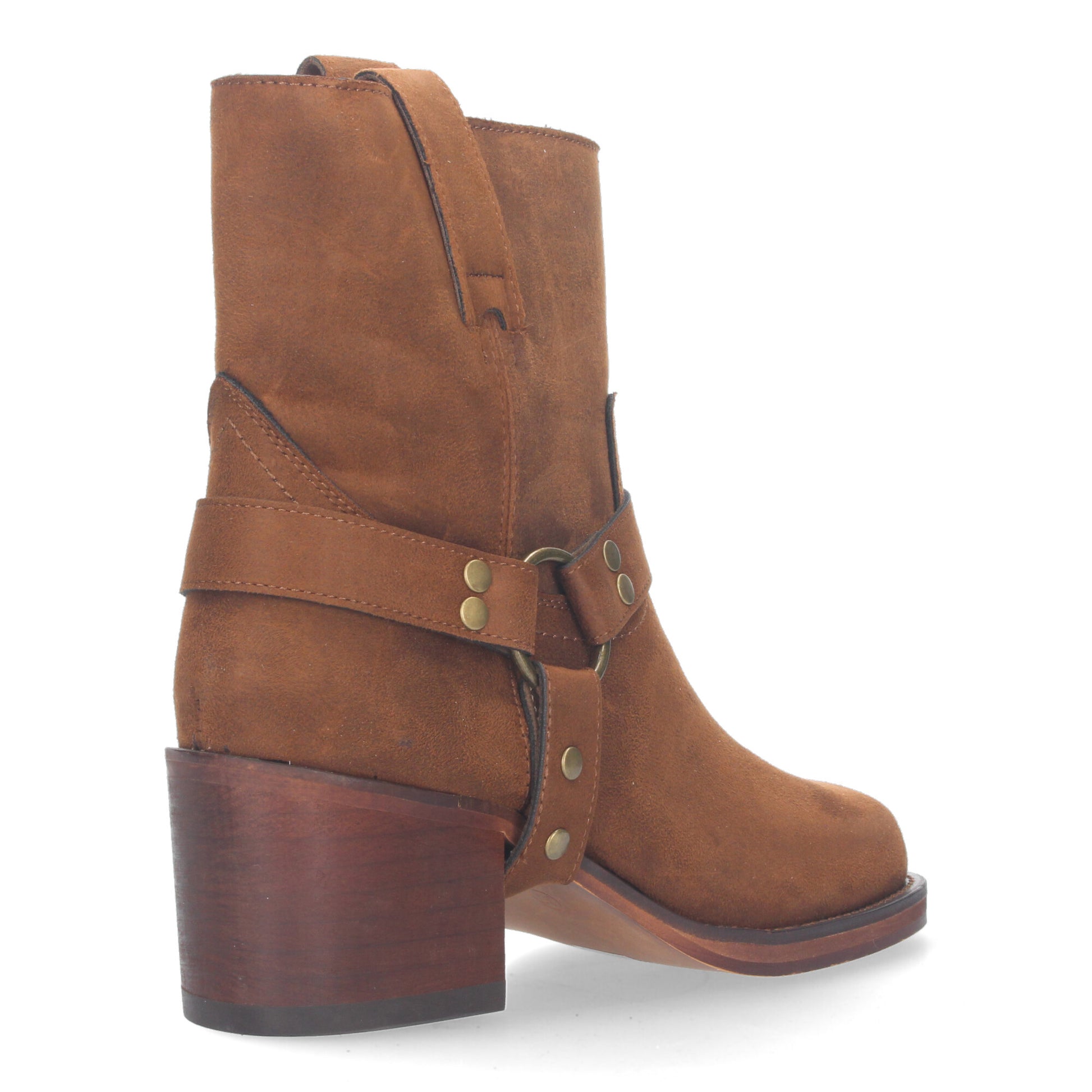 Botin de tacon para mujer material aterciopelado y con adorno en la caña y suela.