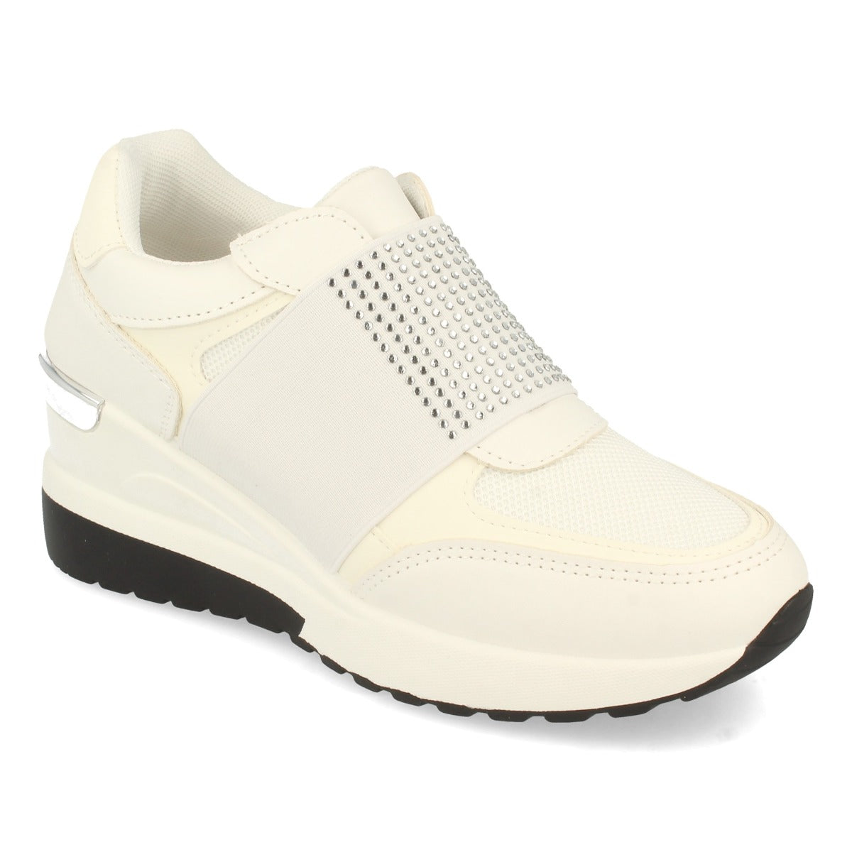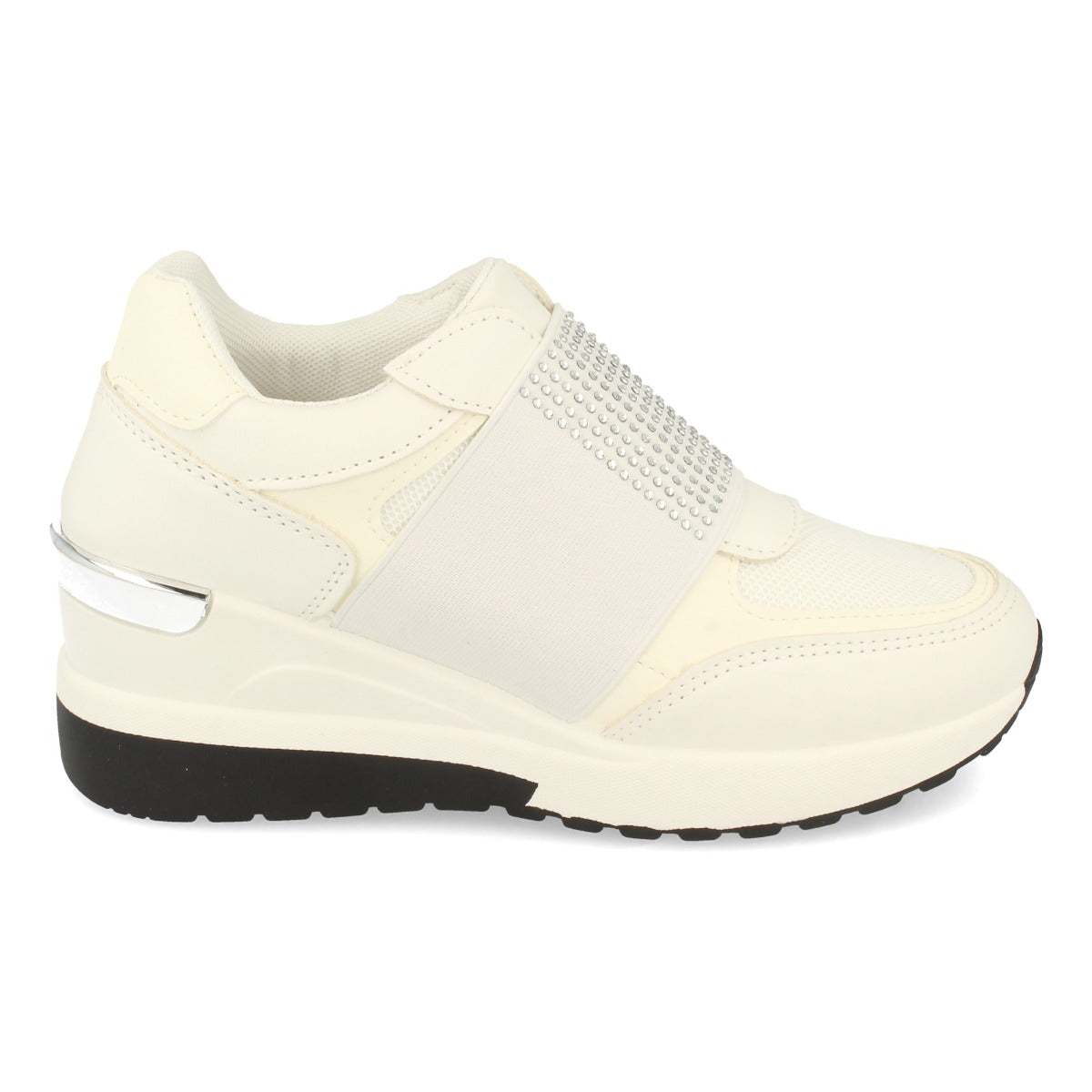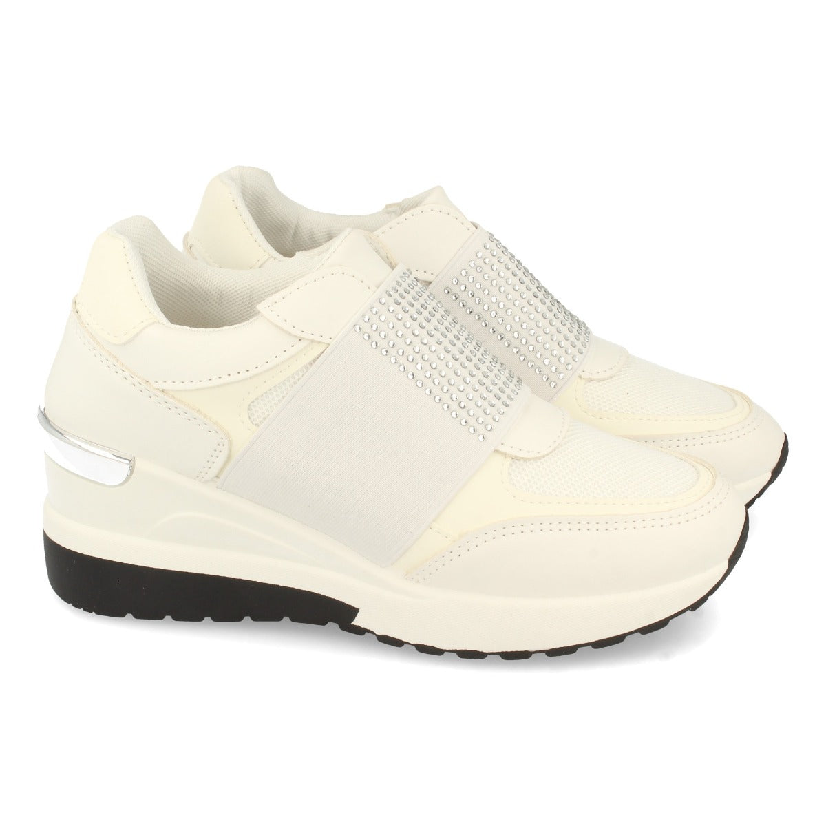 Zapatilla para Mujer con Cuña Tira Elástica con Strass en el Empeine y Cierre de Cordones Otoño Invierno 2020