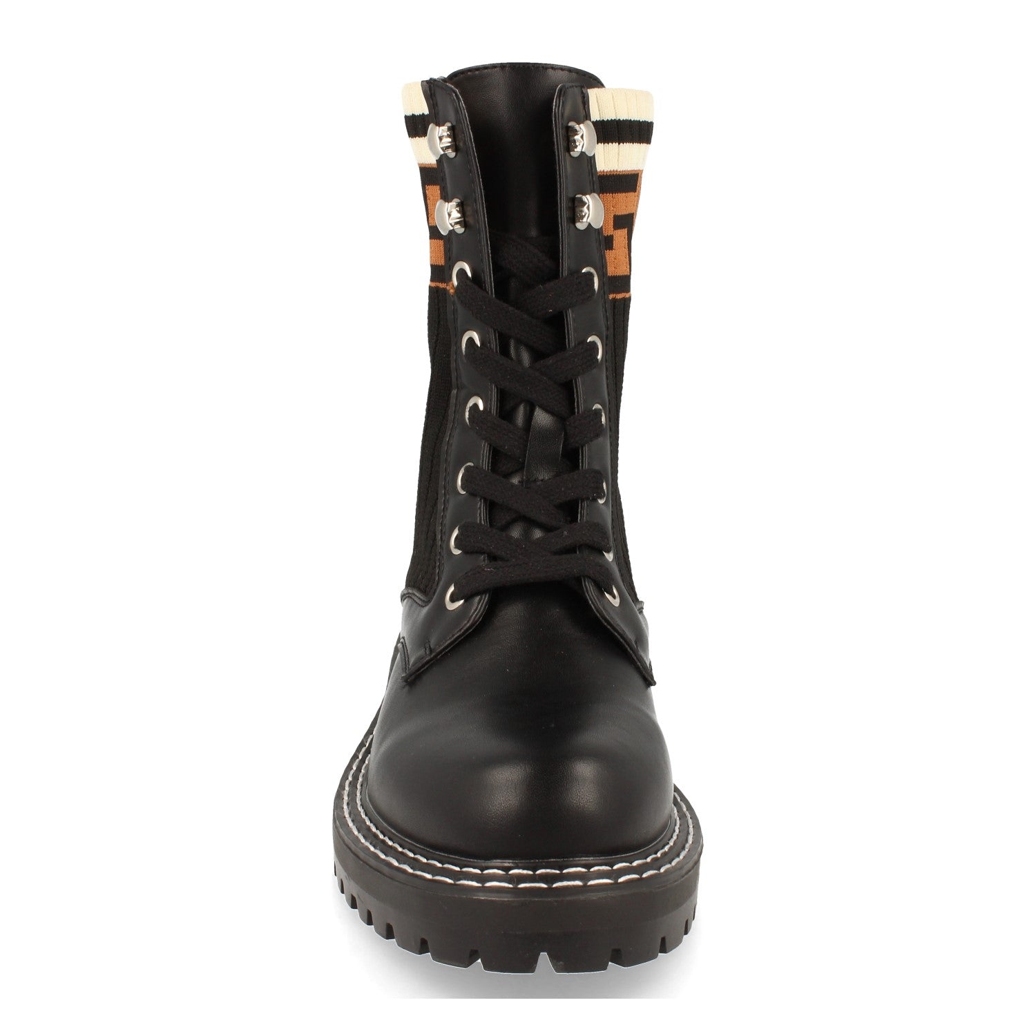 Bota militar estilo Rockoko puntera redonda suela dentada diseño grabado en elástico y cierre de cordones Otoño Invierno 2020
