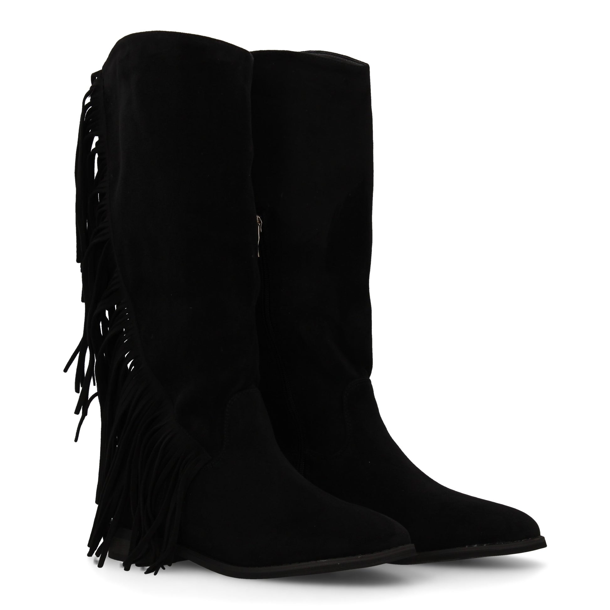 Bota plana mujer con flecos y estampado liso diseño moderno. Estilo cowboy. Tacon plano. Cierre de cremallera. Ideales otoño invierno.