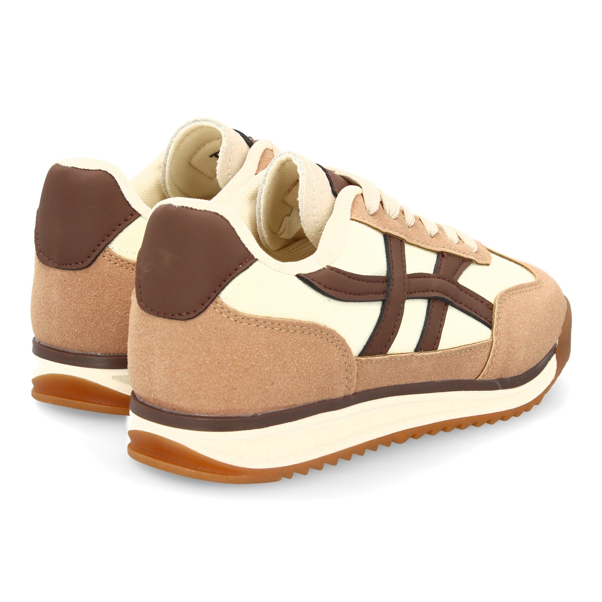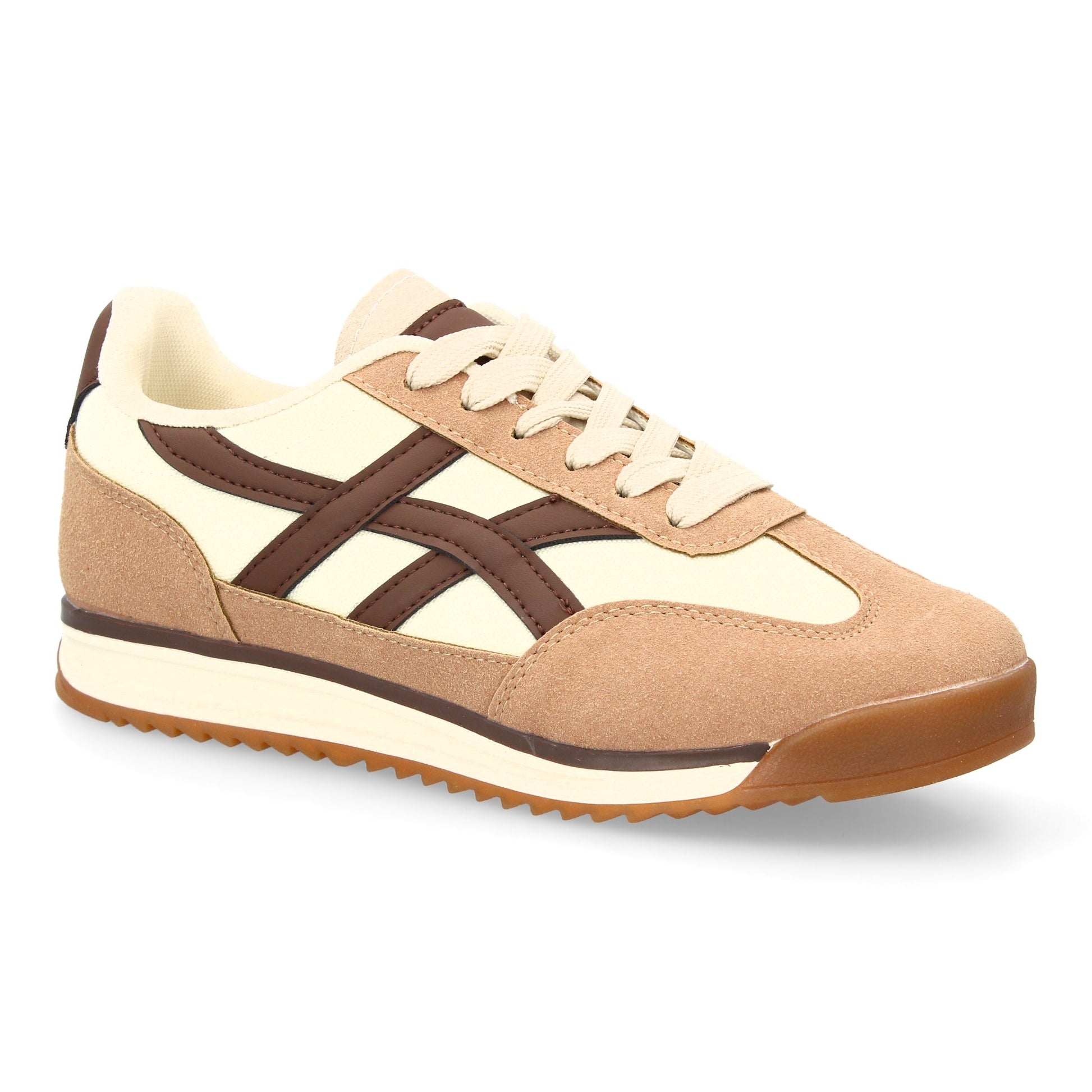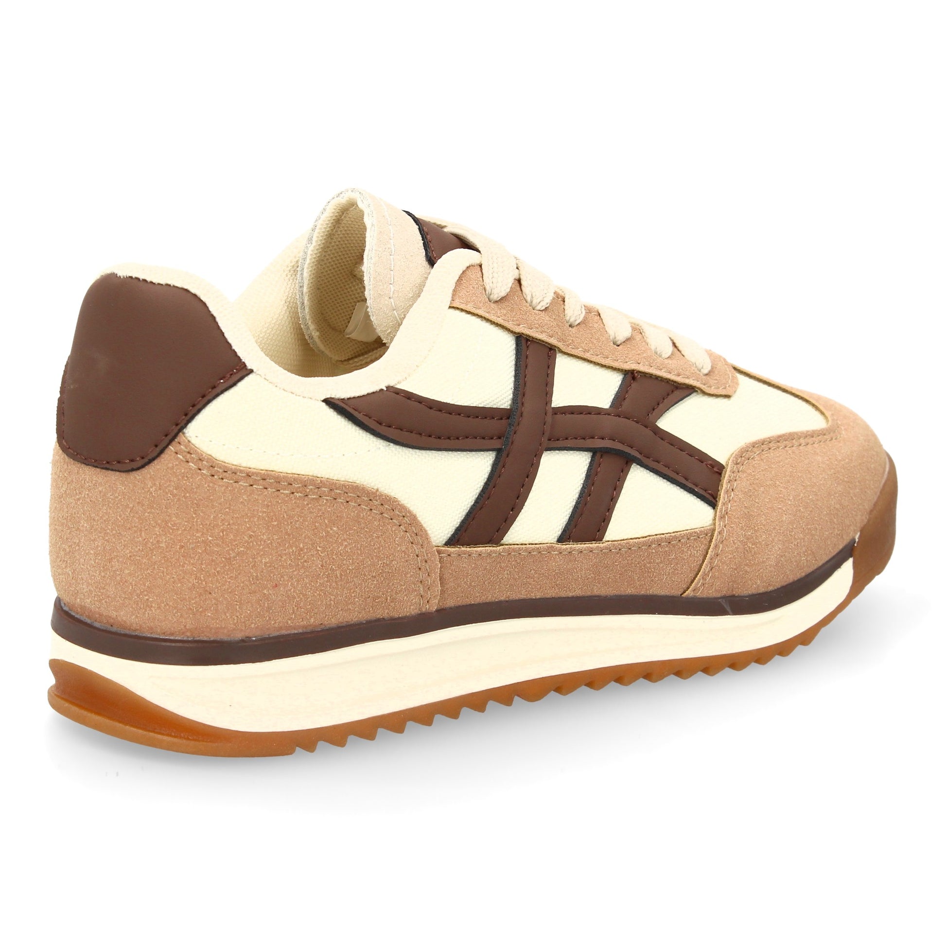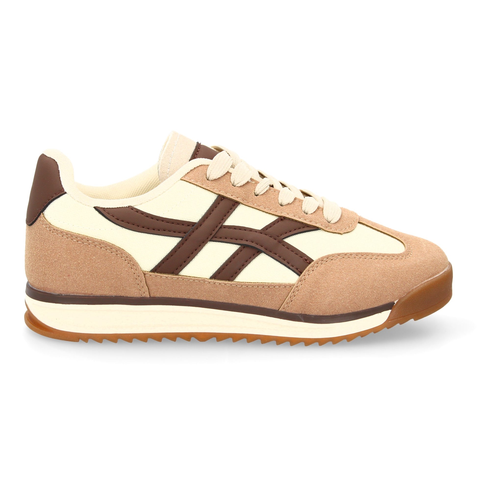 Zapatilla plana para mujer con cierre de cordones. Diseño moderno con contraste lateral. Estilo retro ideal para la temporada de otoño invierno.