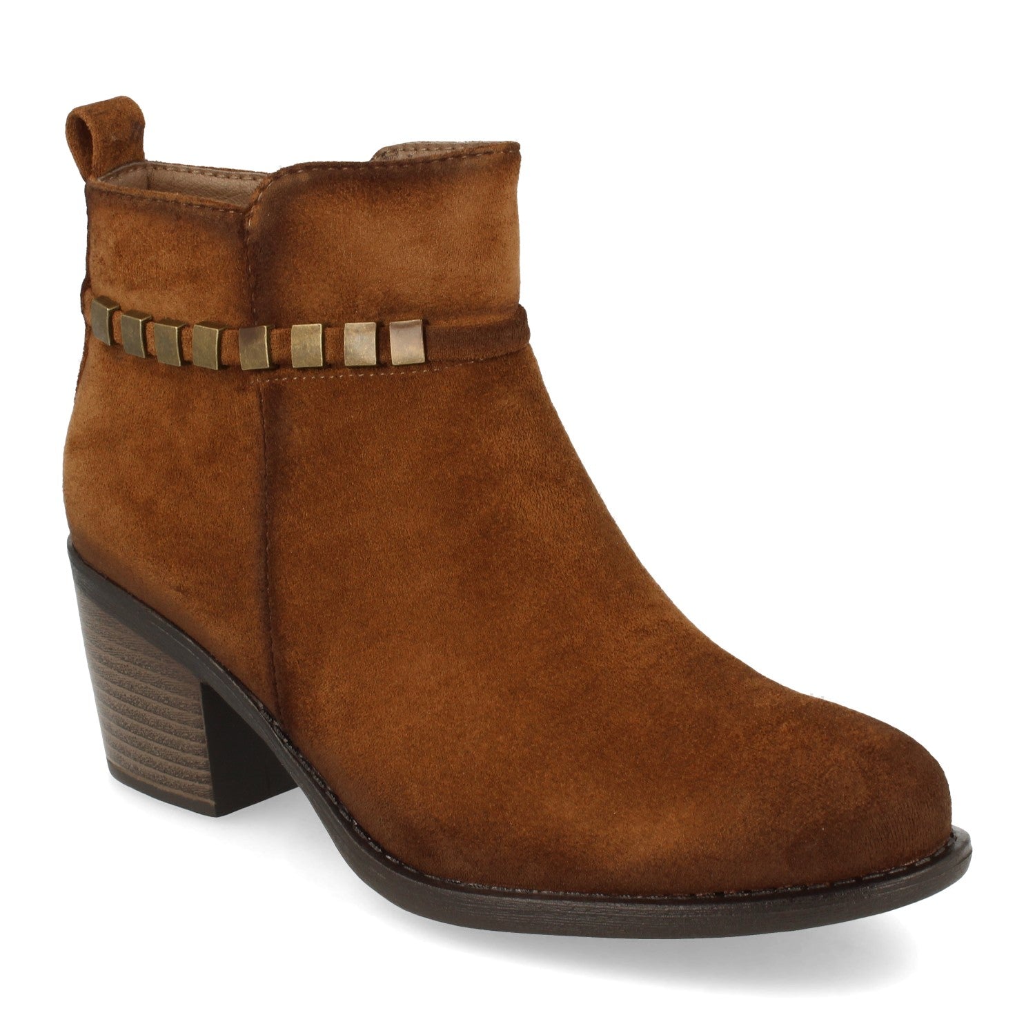 Botín de Tacón para Mujer con Estampado Liso Detalle de Correa con Tachuelas Cierre de Cremallera Otoño Invierno 2020