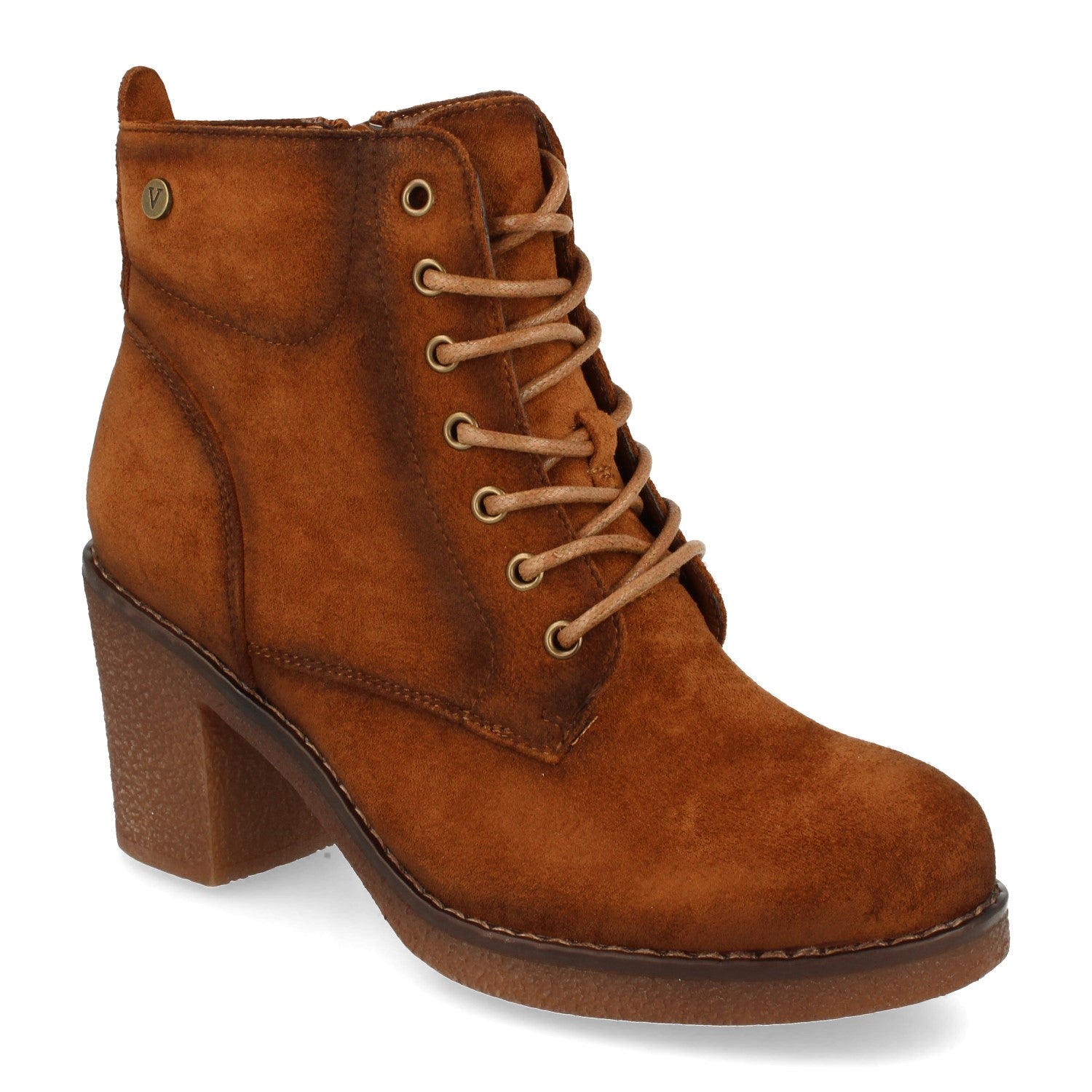 Botín de Tacón para Mujer con Estampado Liso Tachuela y Cierre de Cordones Otoño Invierno 2020
