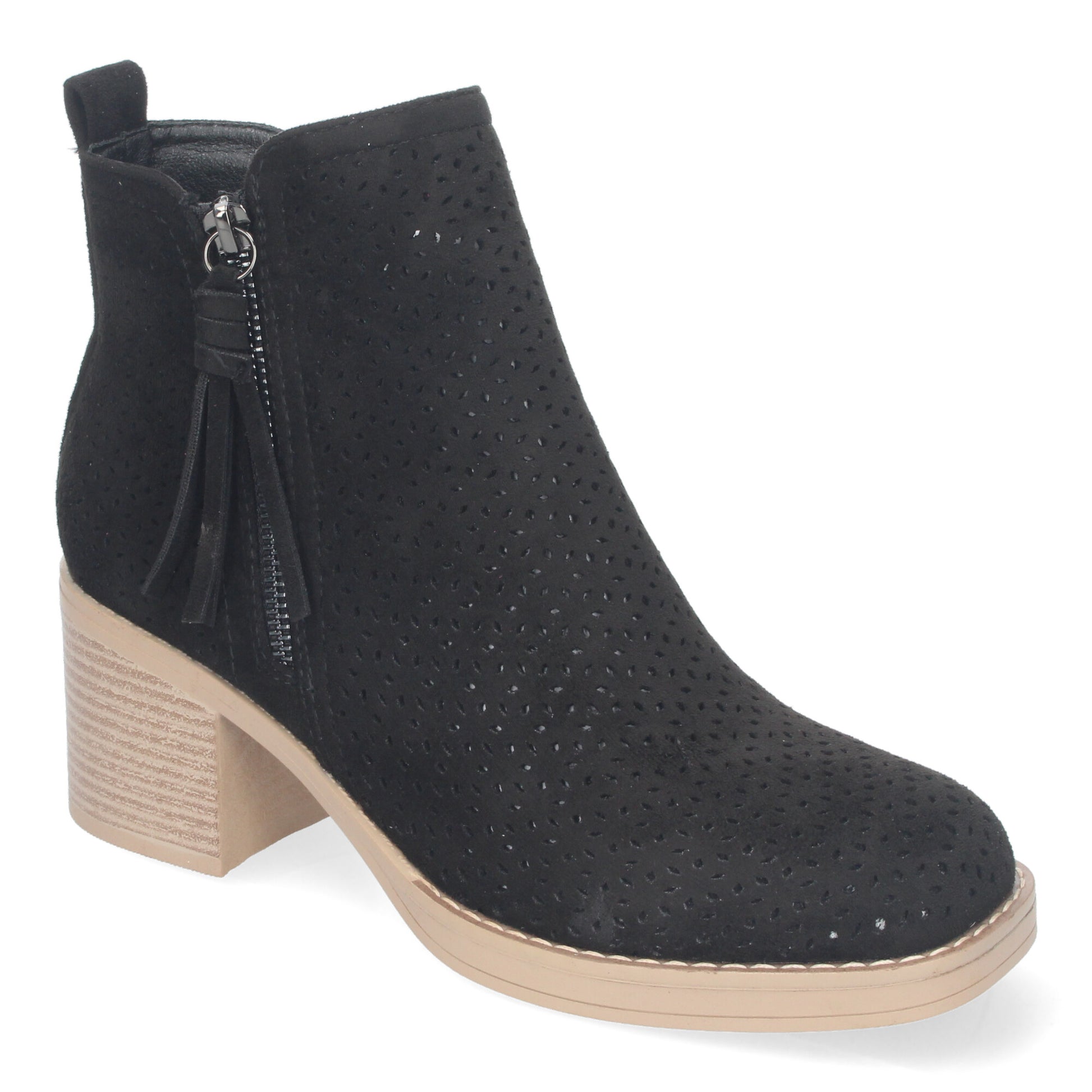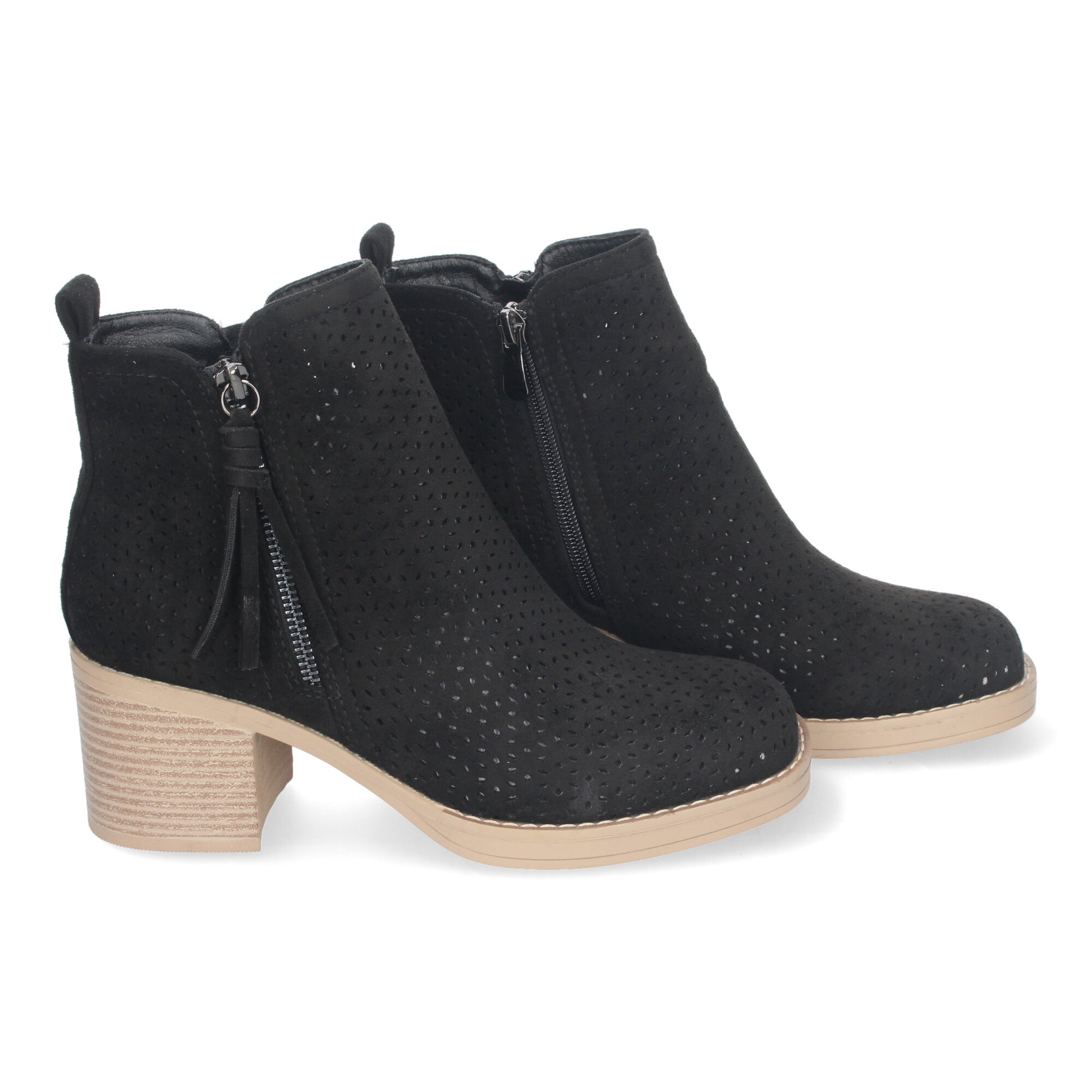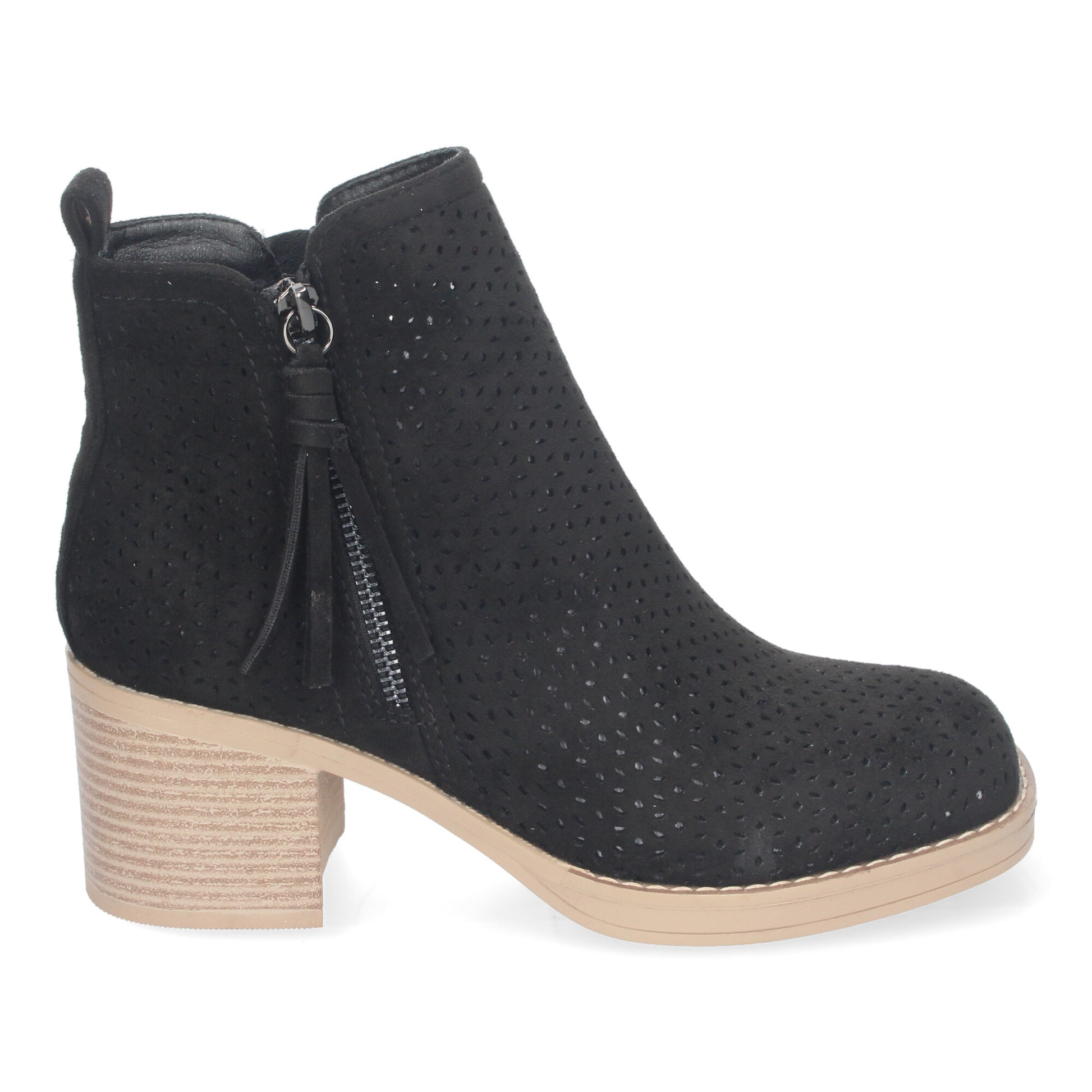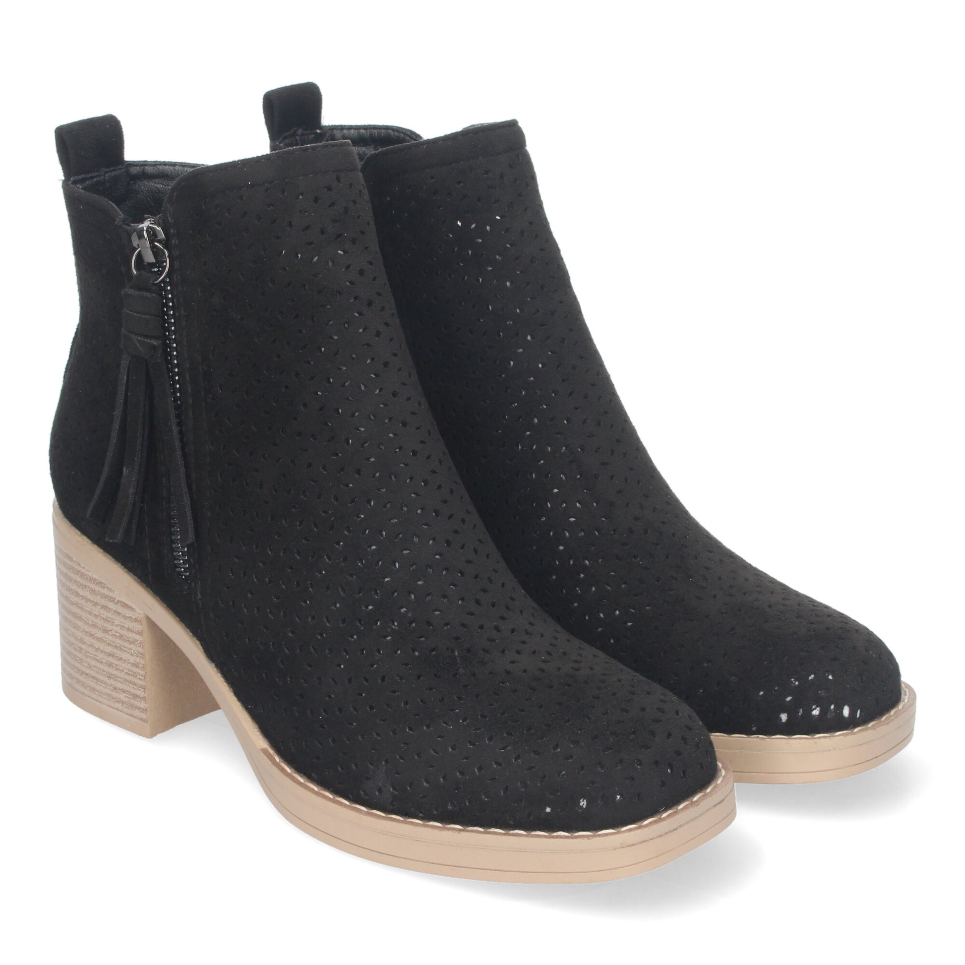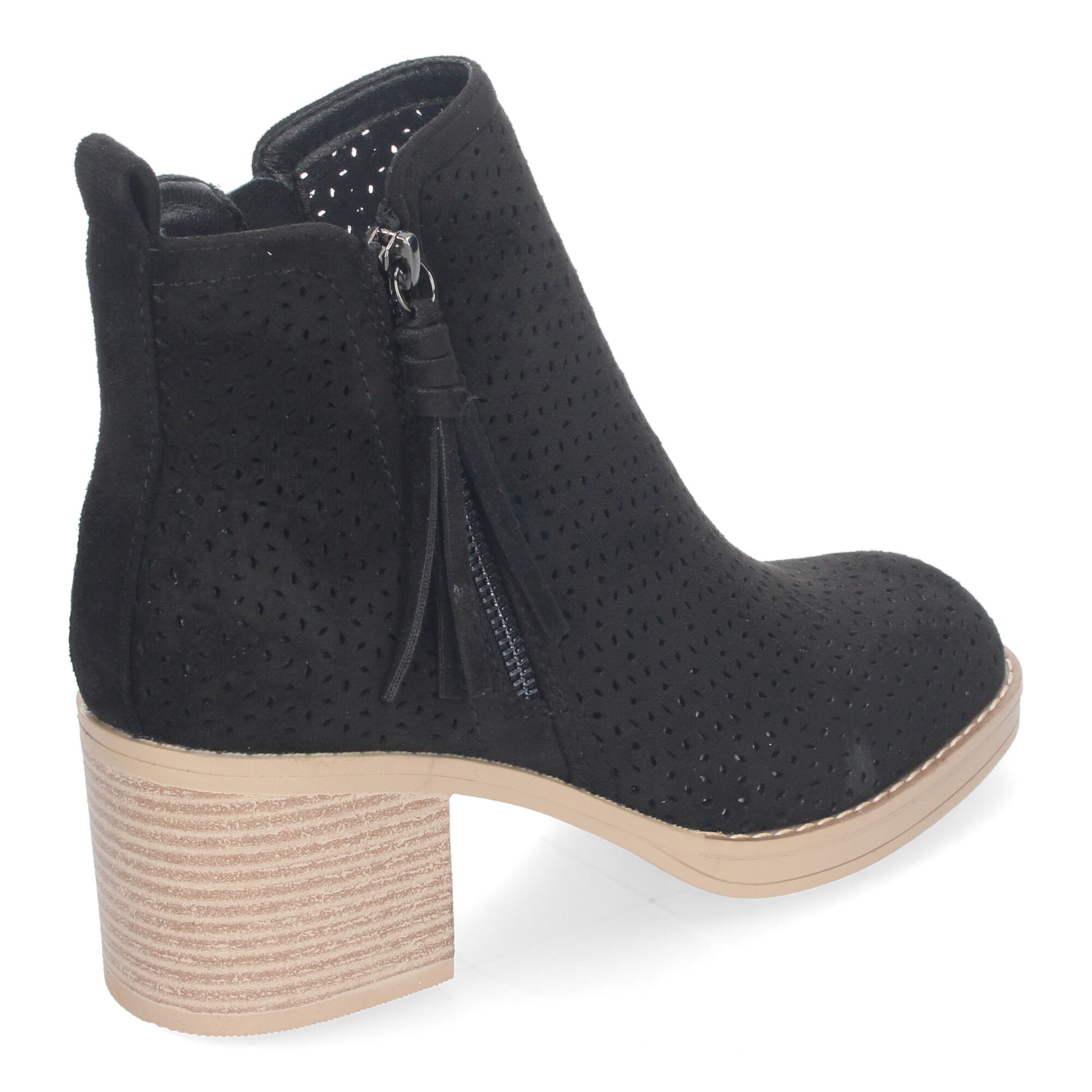 Botines de Mujer Primavera Verano Elegantes y Comodos con Tacón Ancho Diseño Perforado con Doble Cremallera Lateral con Fleco Ideal para Cualquier Ocasión.