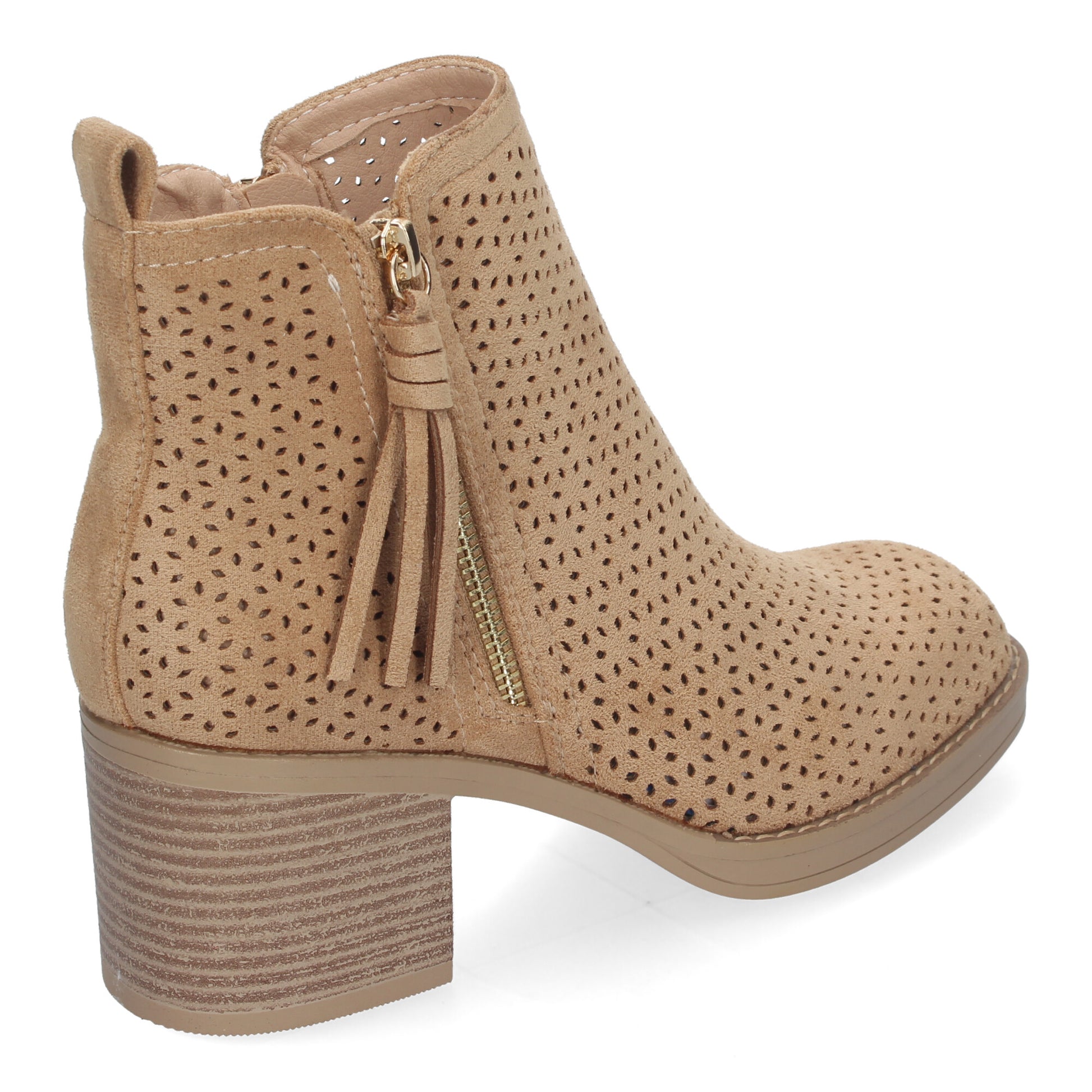 Botines de Mujer Primavera Verano Elegantes y Comodos con Tacón Ancho Diseño Perforado con Doble Cremallera Lateral con Fleco Ideal para Cualquier Ocasión.