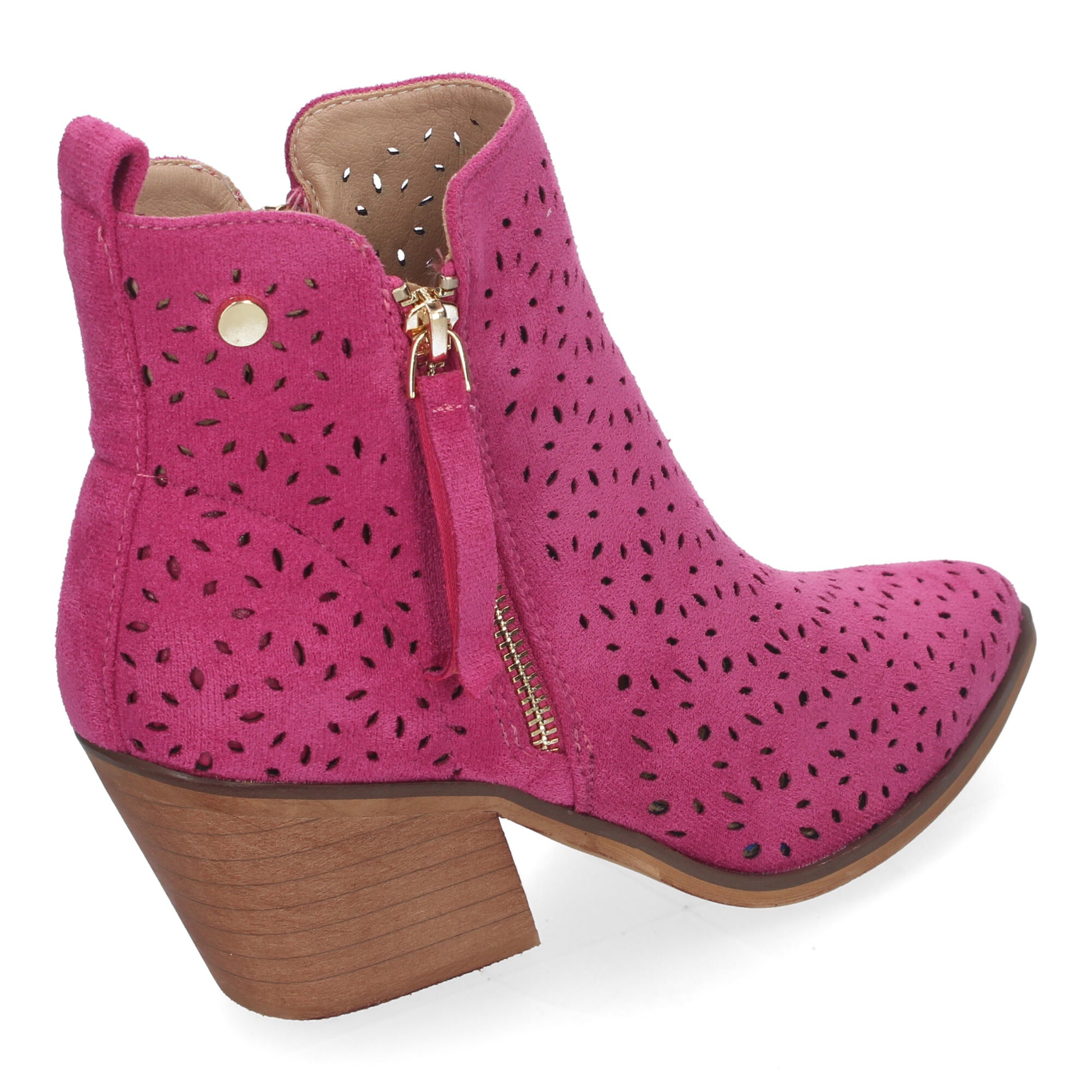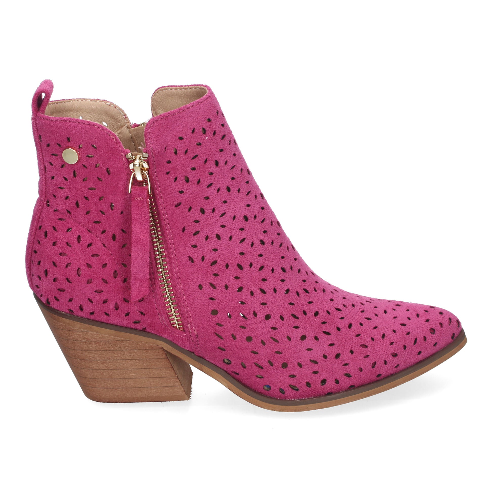 Botines de Tacón Campero para Mujer Primavera Verano Elegantes y Comodos Diseño Perforado con Doble Cremallera Lateral con Fleco Ideal para Cualquier Ocasión.