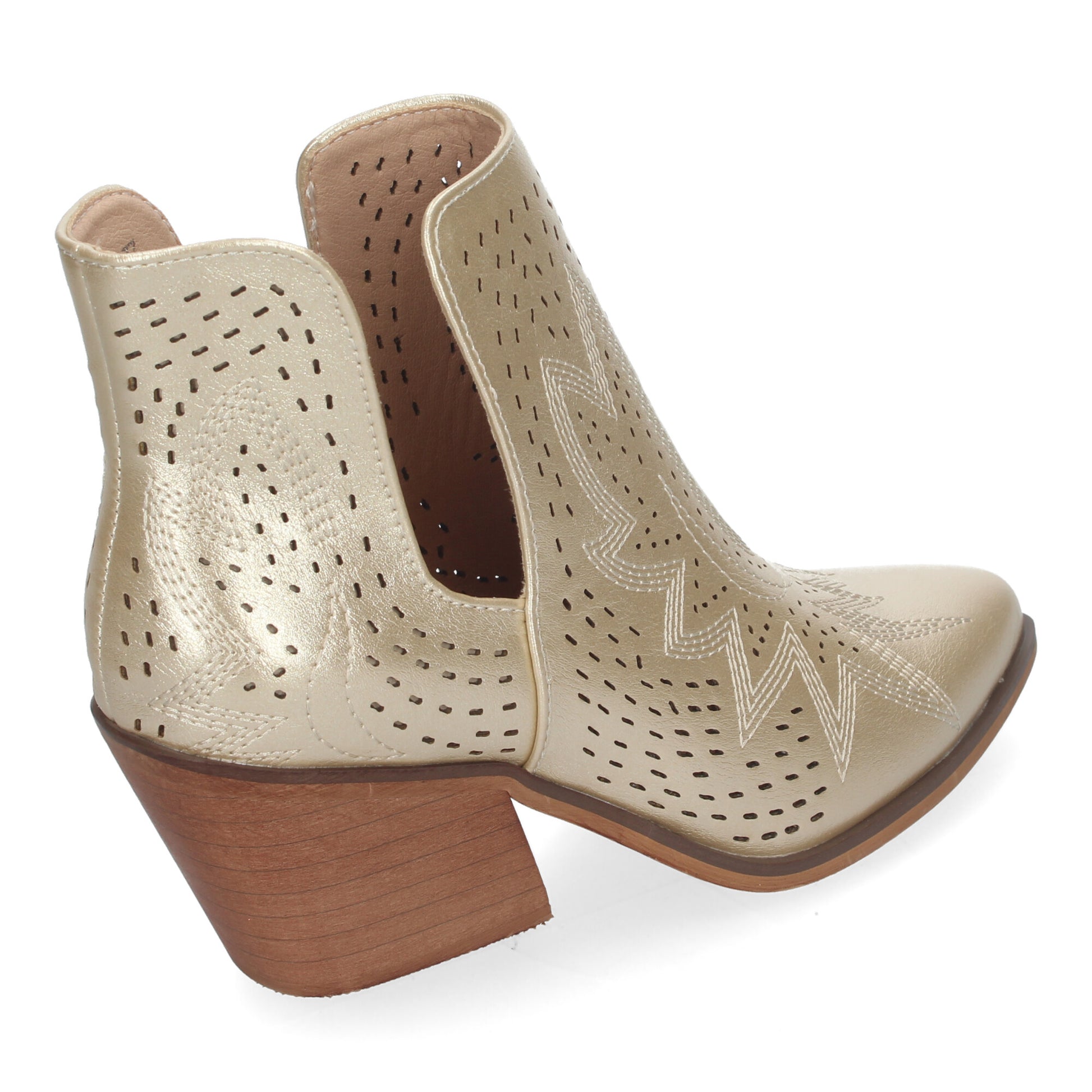 Botines de Tacón Campero para Mujer Primavera Verano Elegantes y Comodos Diseño Perforado con Estampado en la pala perfectos para cualquier ocasión.