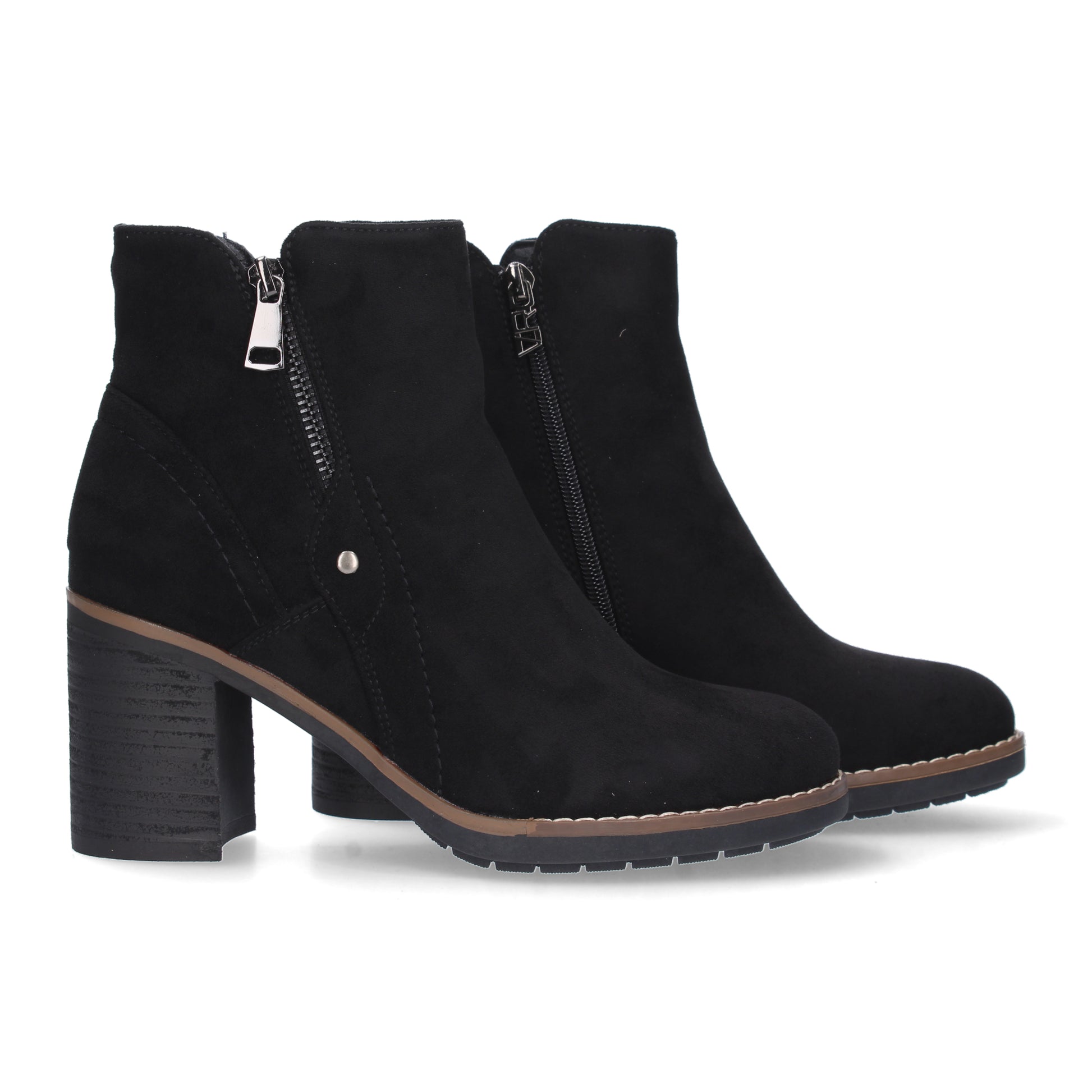 Botín mujer estampado liso con tirador y tachuela cierre de cremallera. Tacón recto temporada otoño invierno 2023