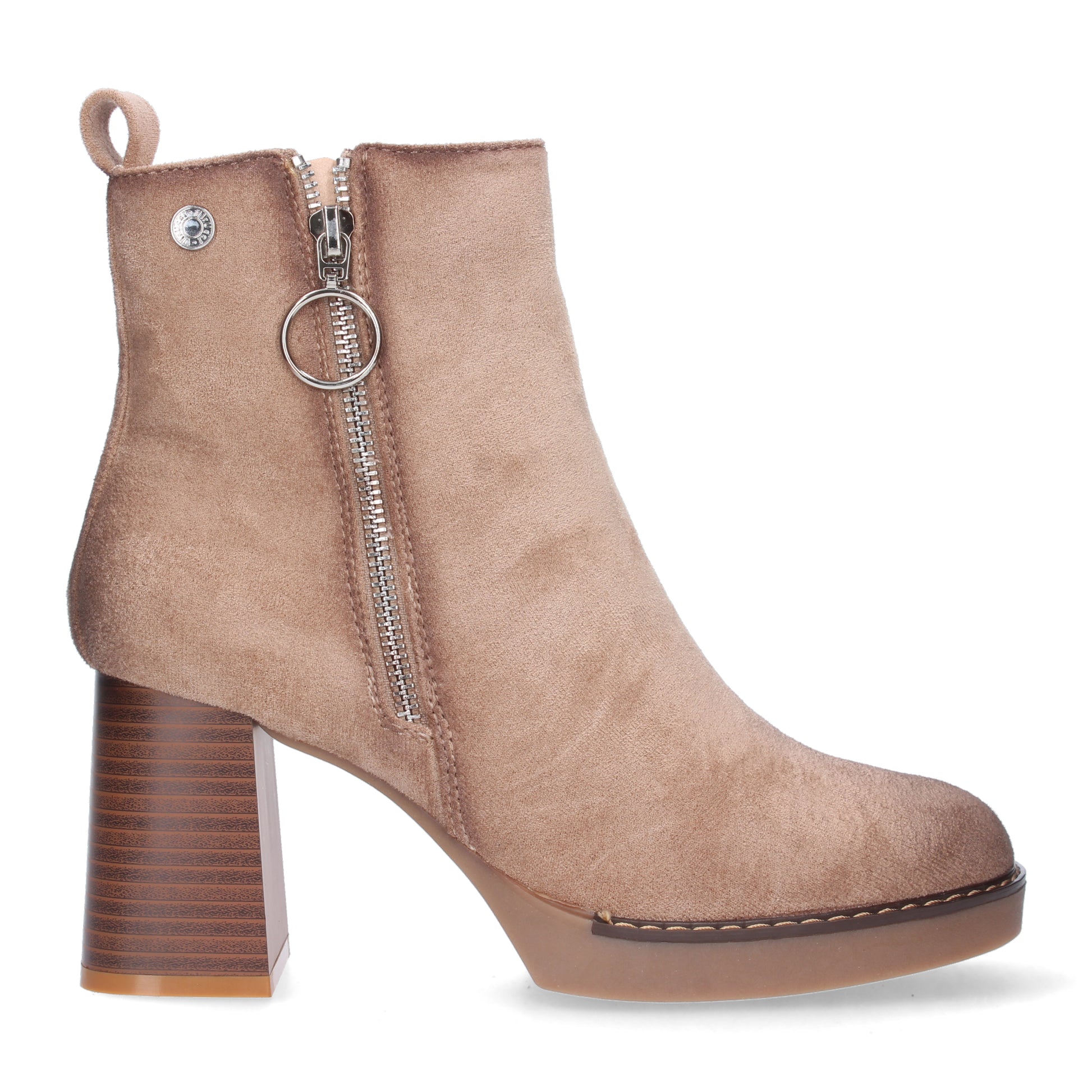 Botín mujer estampado liso con tirador y tachuela cierre de cremallera. Tacón recto temporada otoño invierno 2023