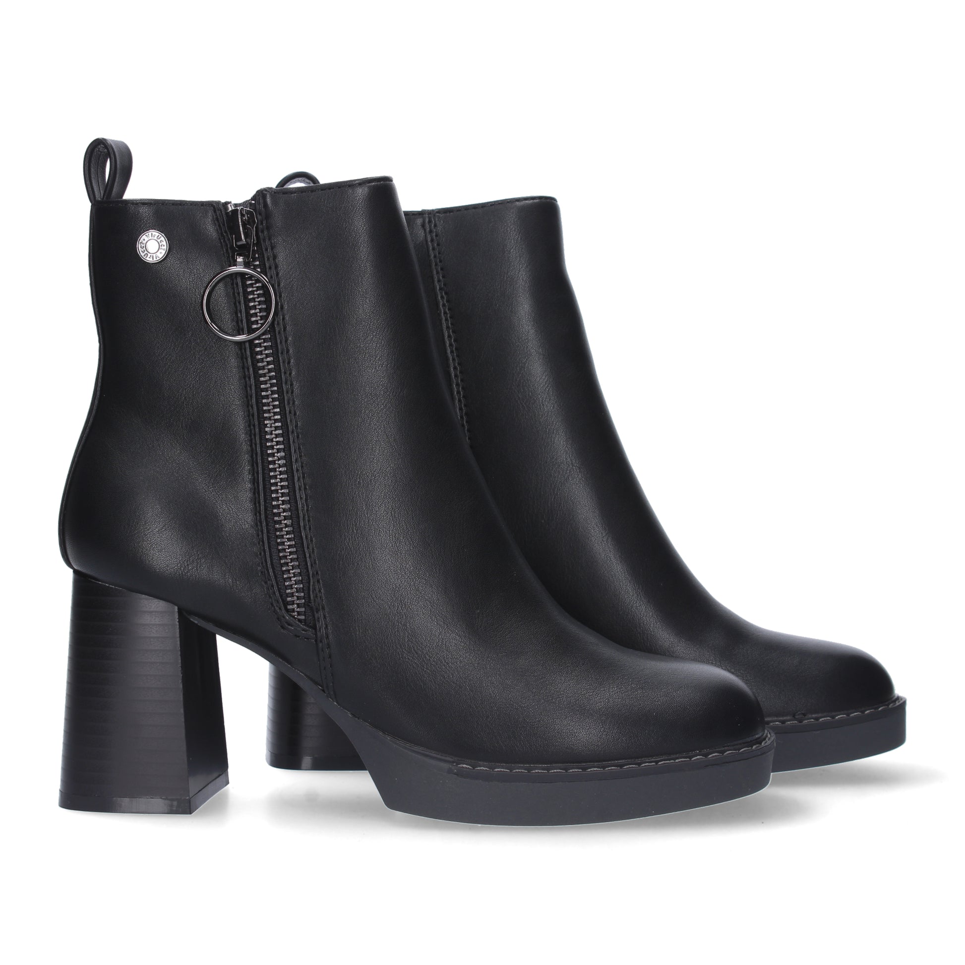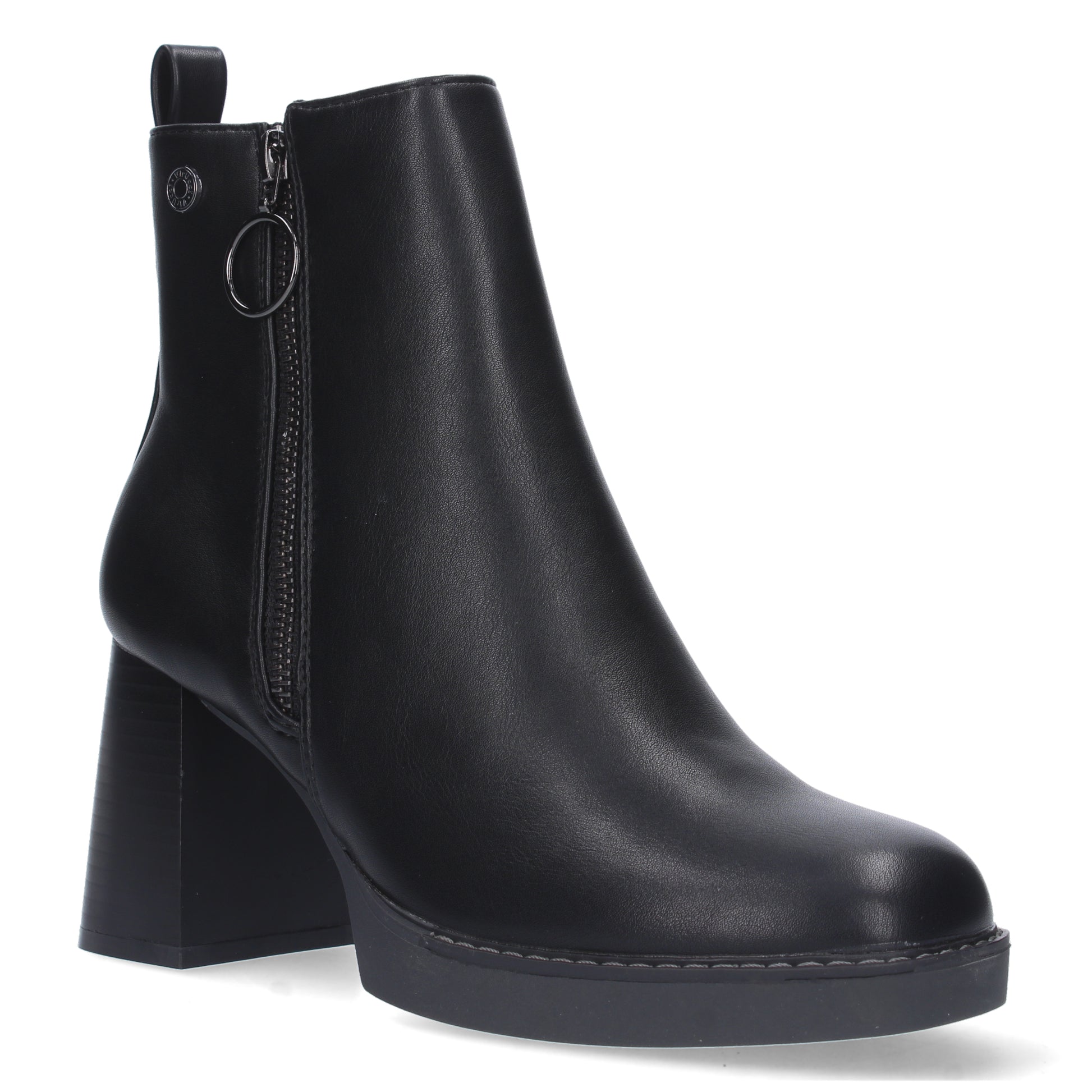 Botín mujer estampado liso con tirador y tachuela cierre de cremallera. Tacón recto temporada otoño invierno 2023