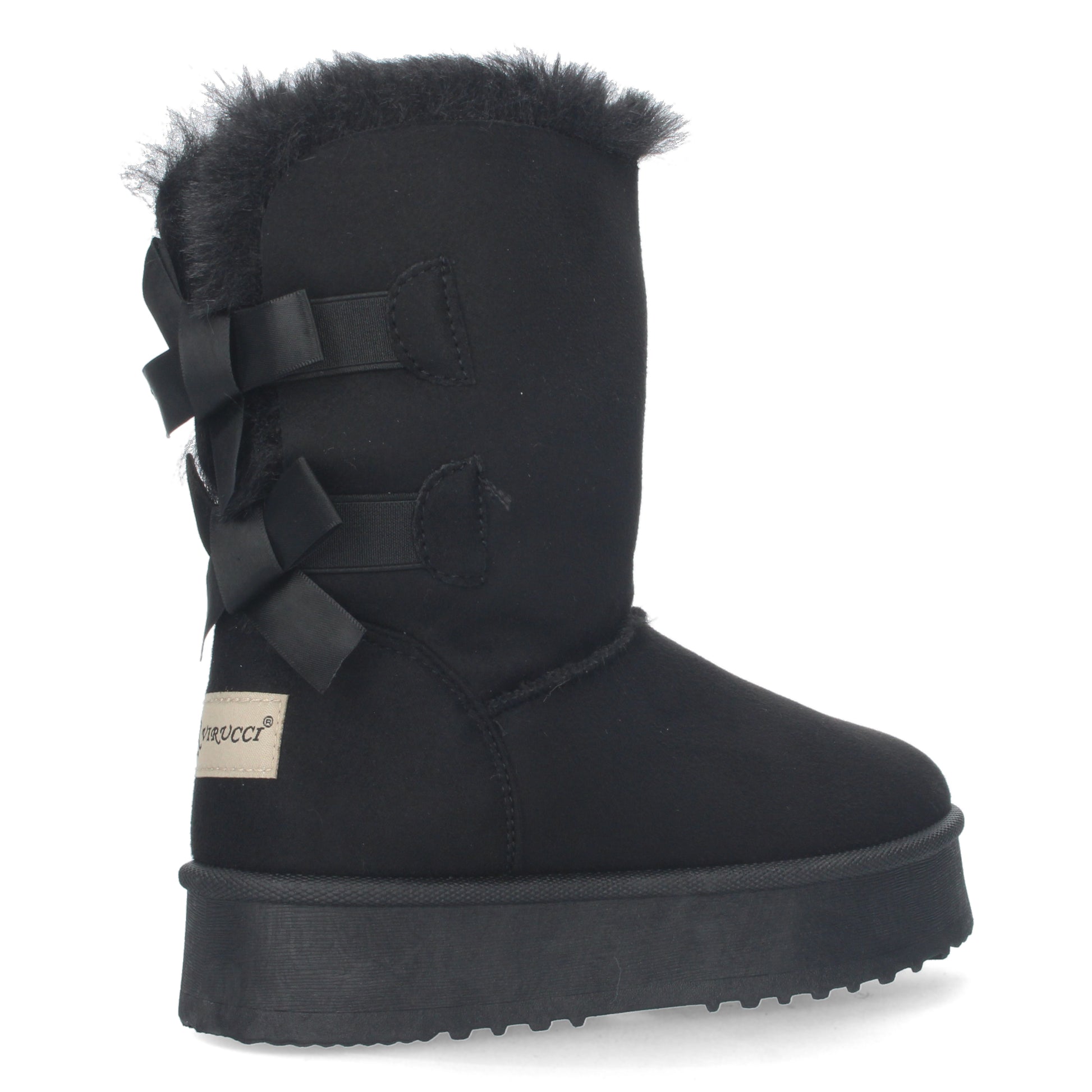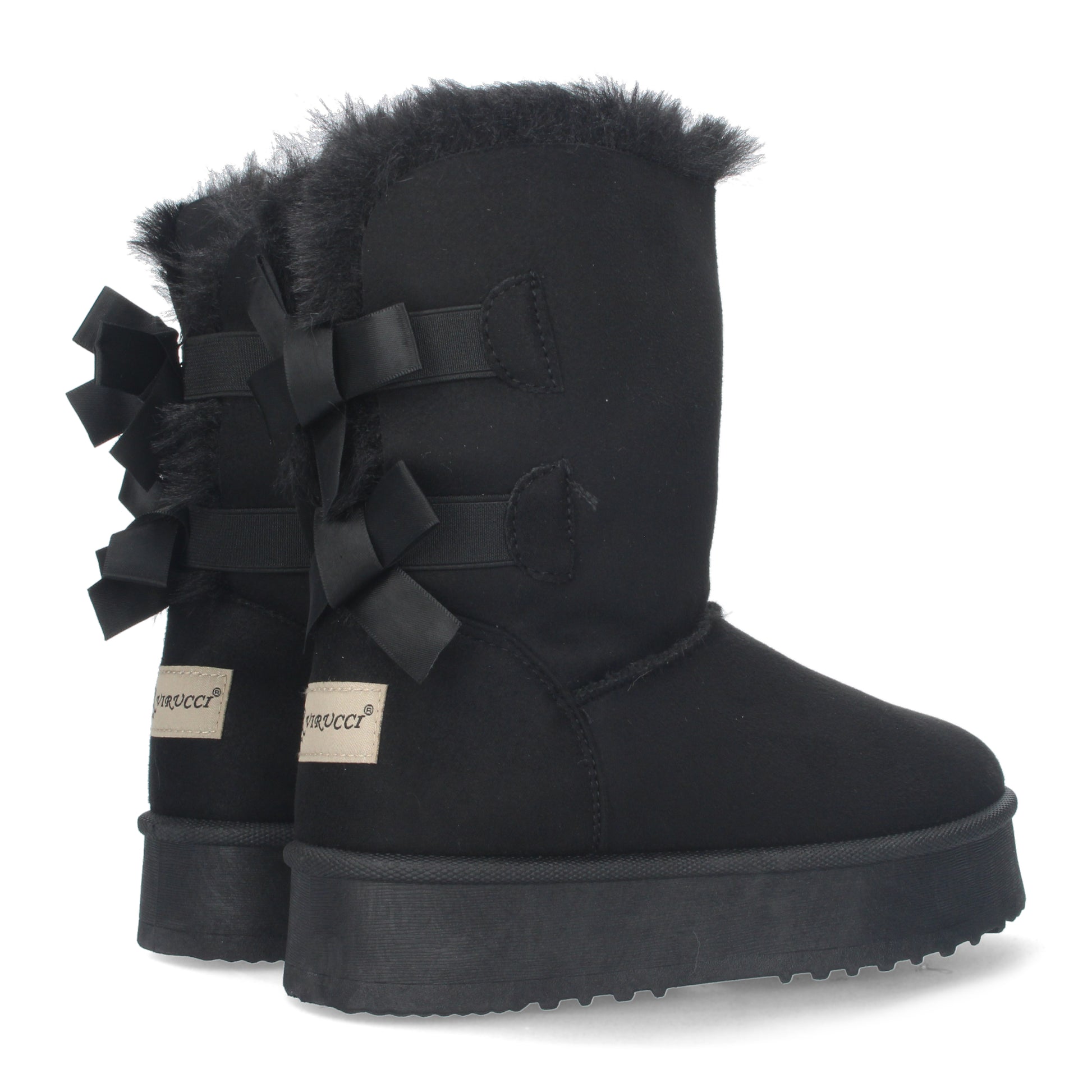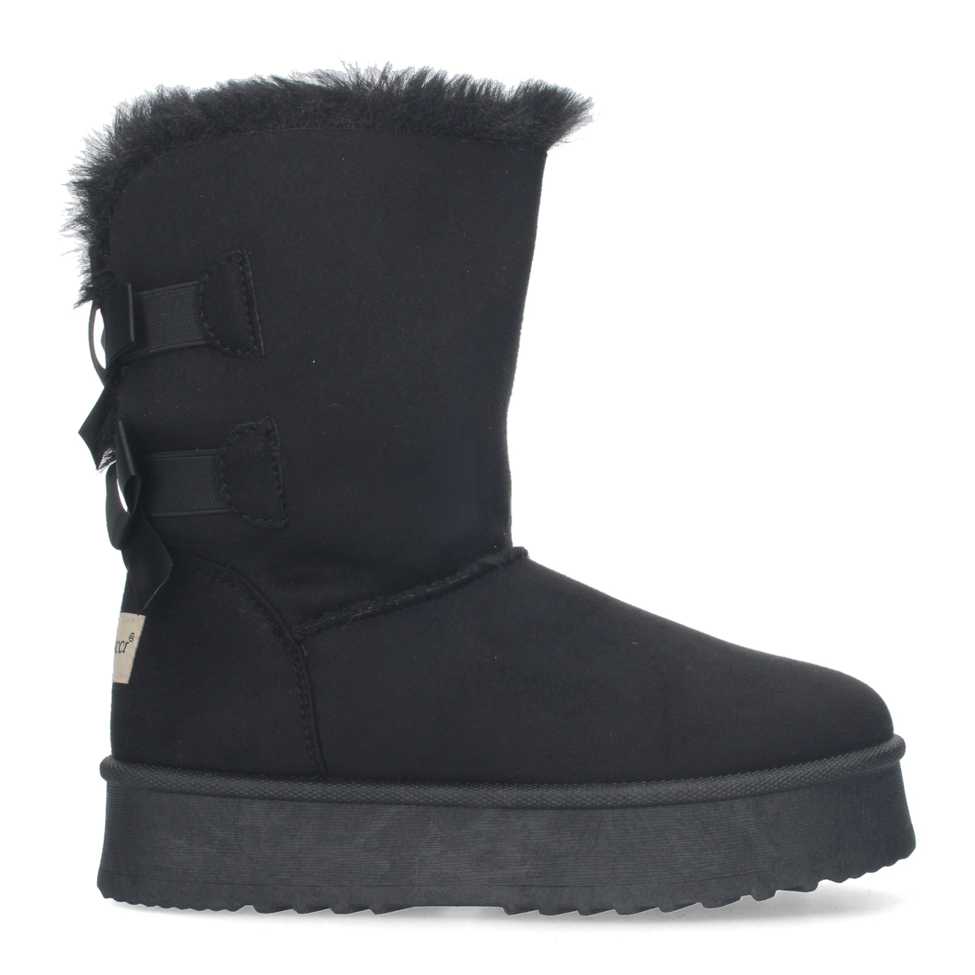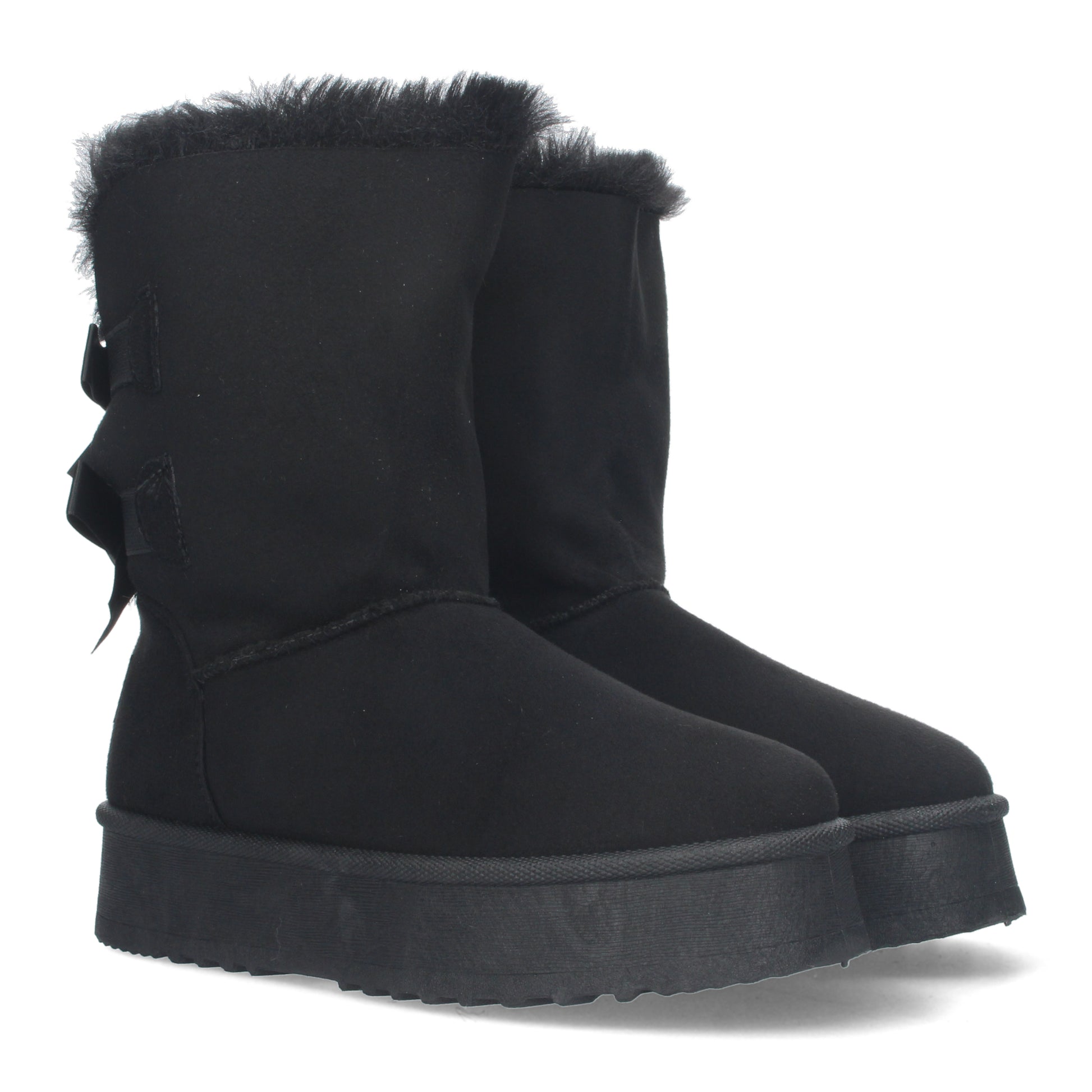Botínes lisos de plataforma con interior forrado en pelo y lazos como adornos en la parte posterior.
