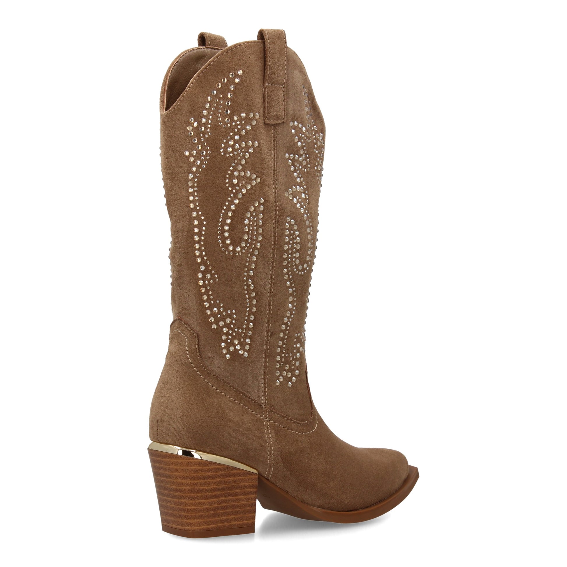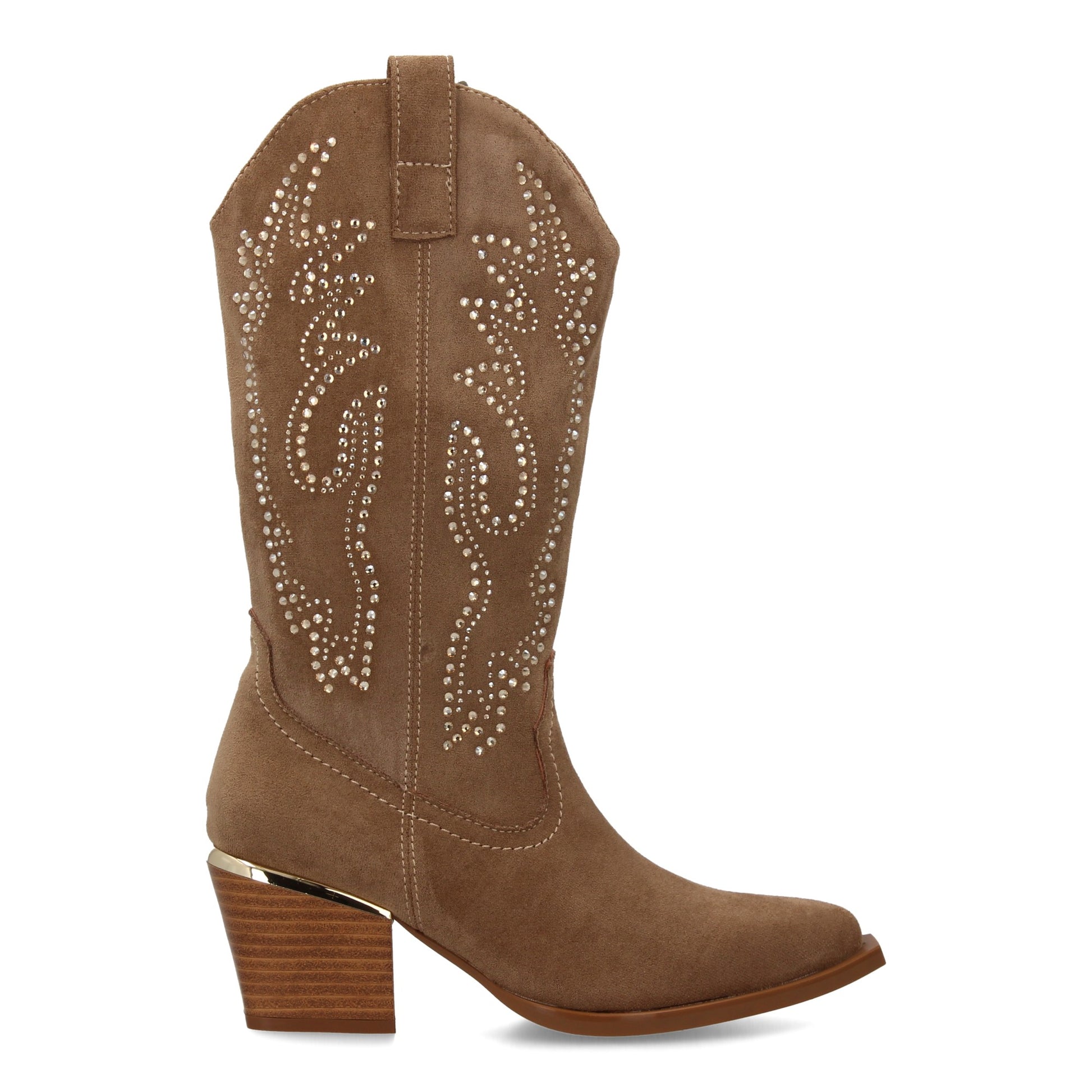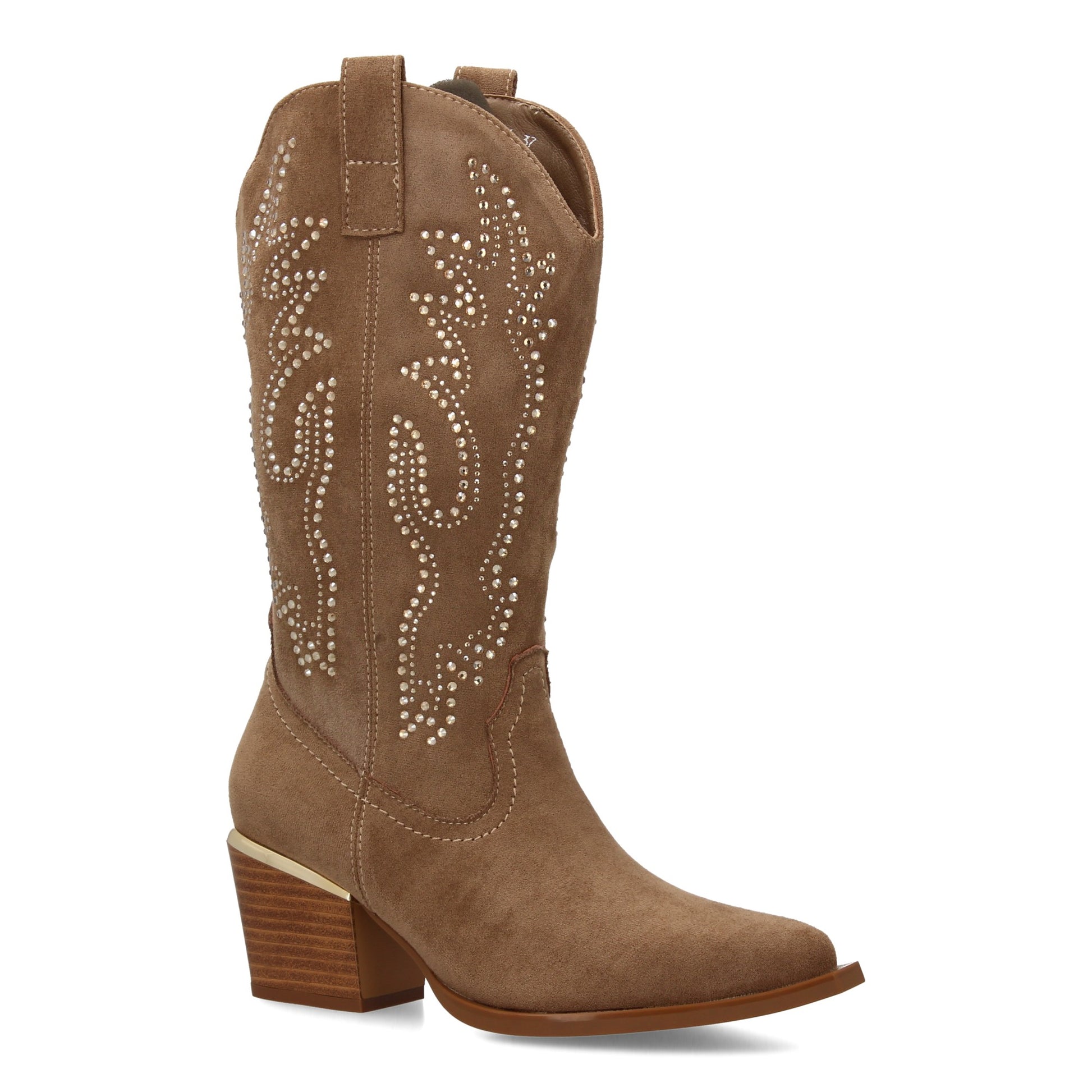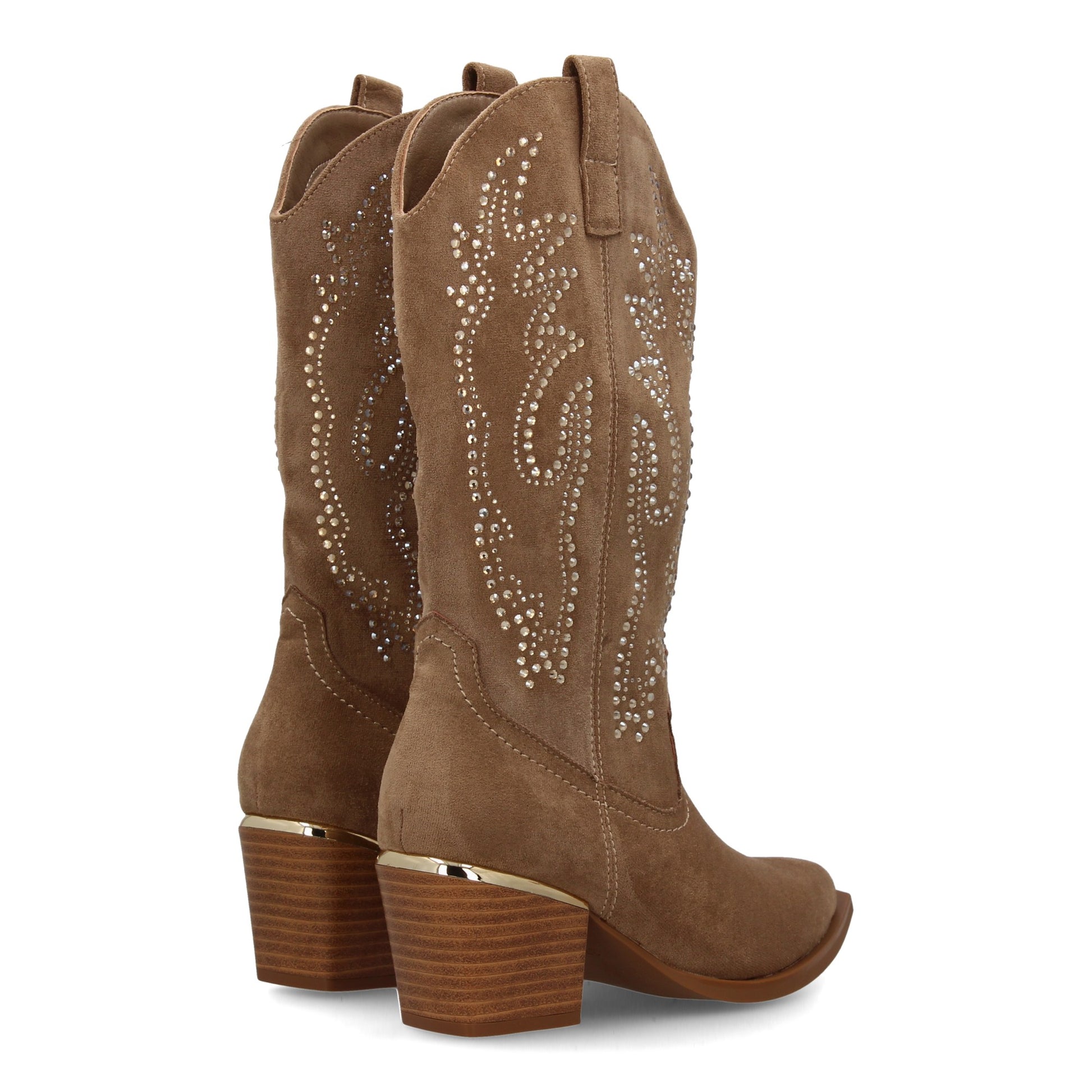 Bota de Mujer con Detalles brillantes elegantes en la caña y Tacón comodo para Estilo Casual o Formal Ideal para otoño invierno cierre de cremallera lateral y adorno metálico en el tacon.