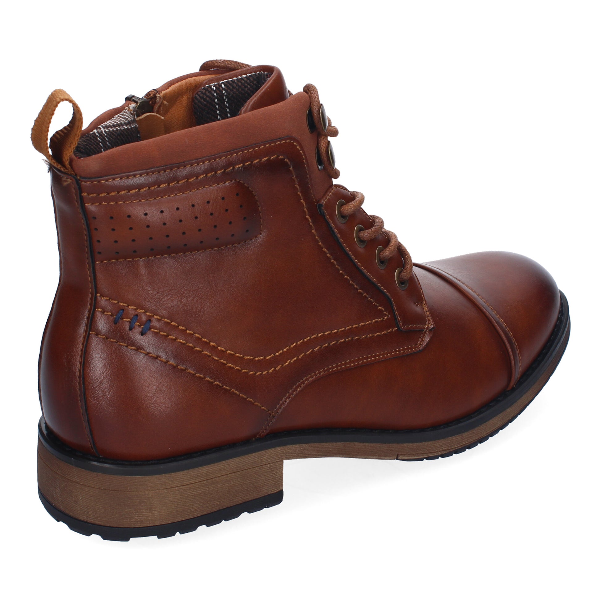 Botines de Hombre Comodos y Elegantes Diseño Clasico con Punta Redonda Adornos de Costuras Cierre de Cordones y Cremallera Lateral.