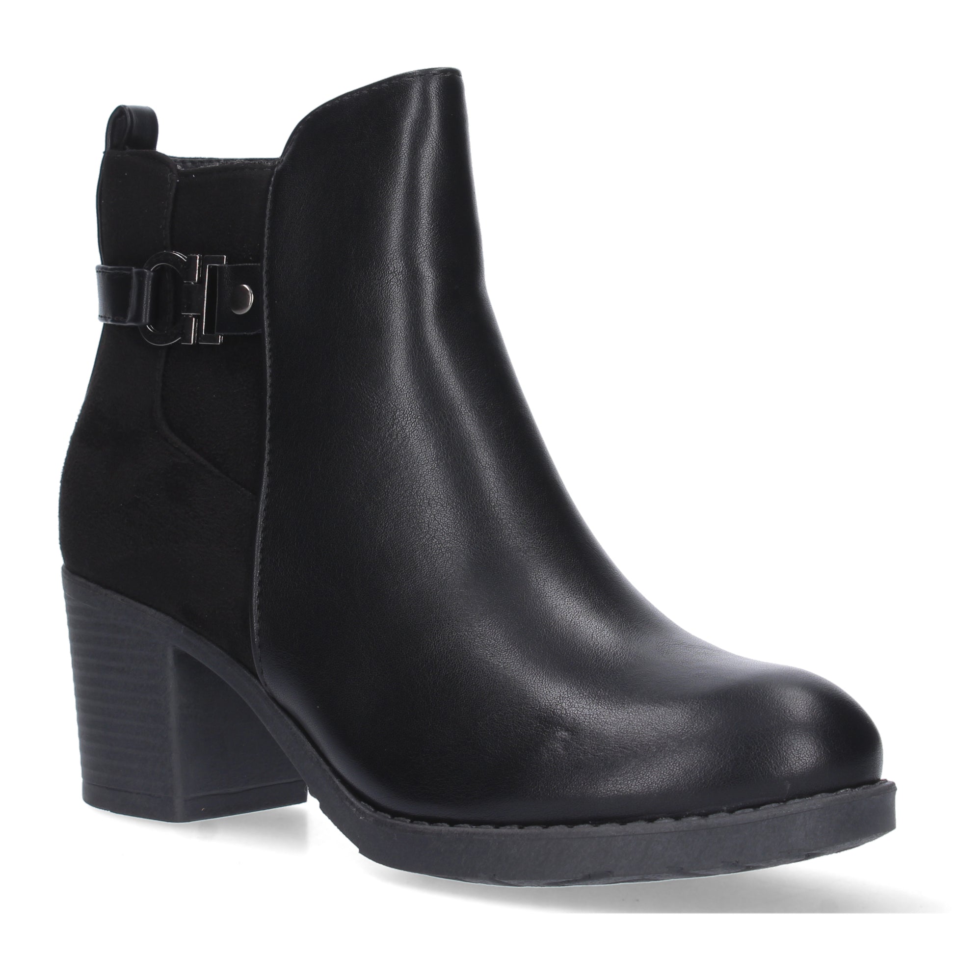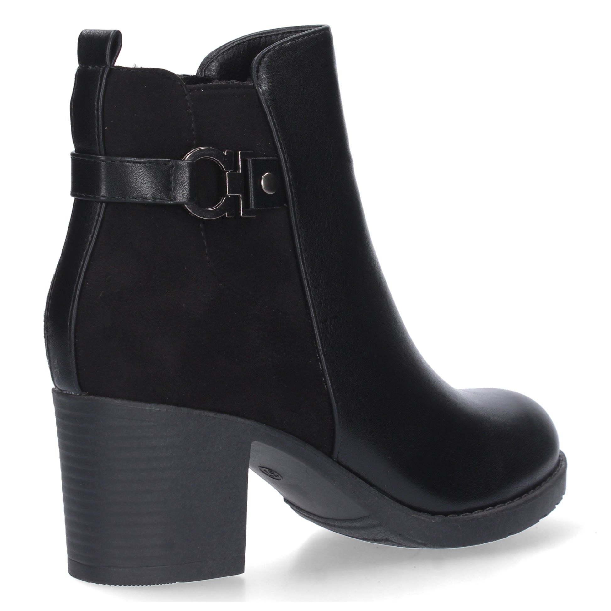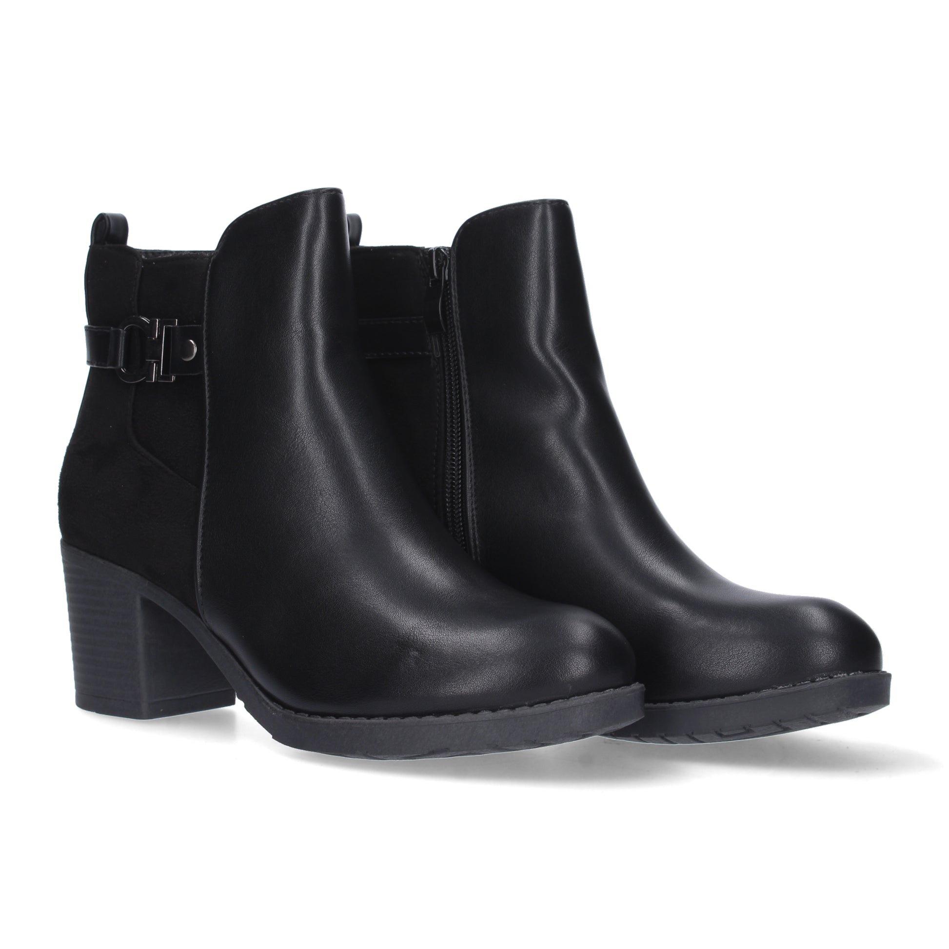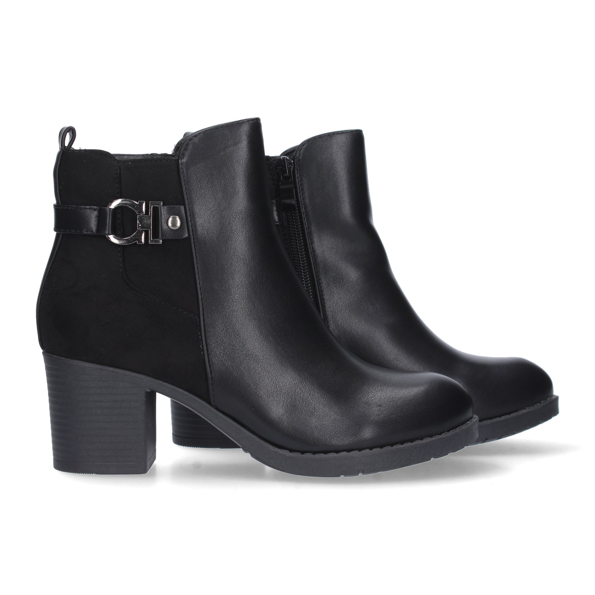 Botín para mujer con estampado liso adorno en la caña. Doble tejido liso y aterciopelado. Cierre de cremallera. Otoño invierno 2023